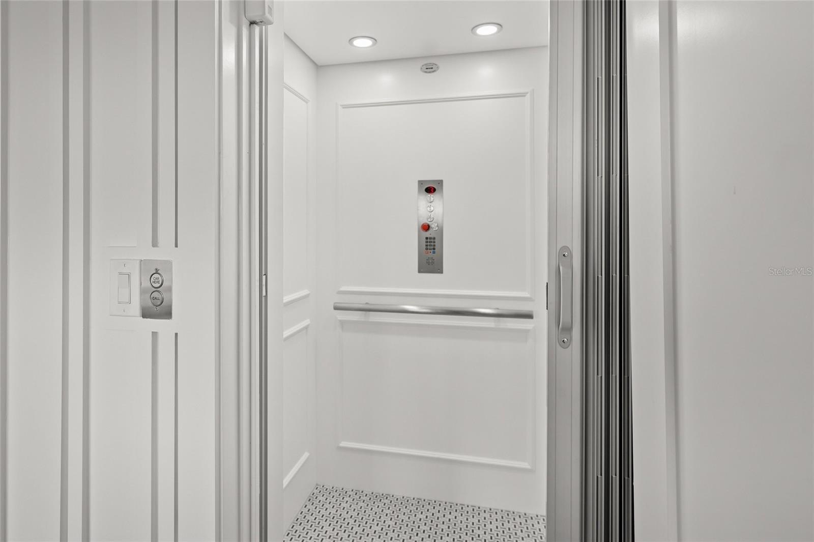 The open-concept chef’s kitchen is designed for entertaining, featuring premium appliances, custom cabinetry, and designer finishes. An elevator connects all levels, leading to expansive porches and a stunning rooftop deck with panoramic views of Tampa Bay and the Gulf of Mexico—ideal for sunset gatherings or morning coffee.