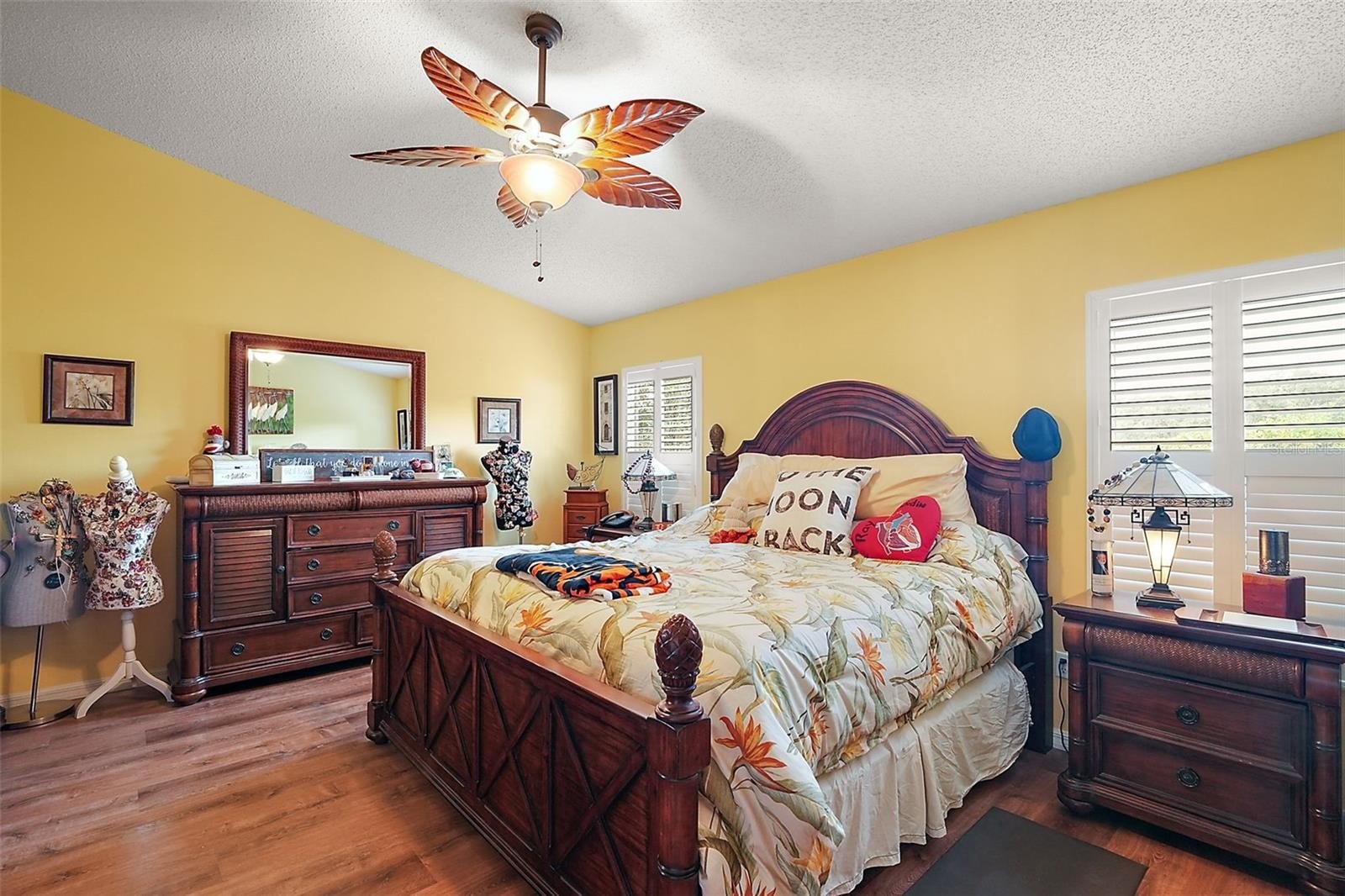 Welcome to Your Dream Home in a Premier Gated Active Adult Golf Community! Step into comfort and style with this beautifully updated 2-bedroom, 2-bath home, nestled in one of the area's most sought-after 55+ golf communities. From the moment you arrive, you'll be greeted by charming curb appeal with a brick paver driveway, a welcoming front patio, and elegant double-door entry. Inside, you'll find upgraded wood laminate flooring flowing throughout, setting the tone for a fresh and modern interior. The spacious floor plan includes an oversized bonus room—perfect for entertaining, hobbies, or relaxing with guests. Plantation shutters add a timeless touch and let in just the right amount of natural light. Heart of the home is the warm welcoming kitchen open to dining and ideal for gatherings. Stunning primary bathroom, thoughtfully remodeled with a large walk-in tiled shower, dual shower heads, and an updated vanity that offers both style and function. Enjoy Florida living year-round in the large enclosed lanai with ceramic tile flooring, or step out back to your expansive rear brick paver patio with sweeping views of the golf course—a perfect setting for morning coffee or evening sunsets. Additional highlights include a screened garage, updated roof (2022), and a quiet, neighborly location close to all the community’s resort-style amenities. Don’t miss your chance to live the lifestyle you deserve—golf, friends, and sunshine await!