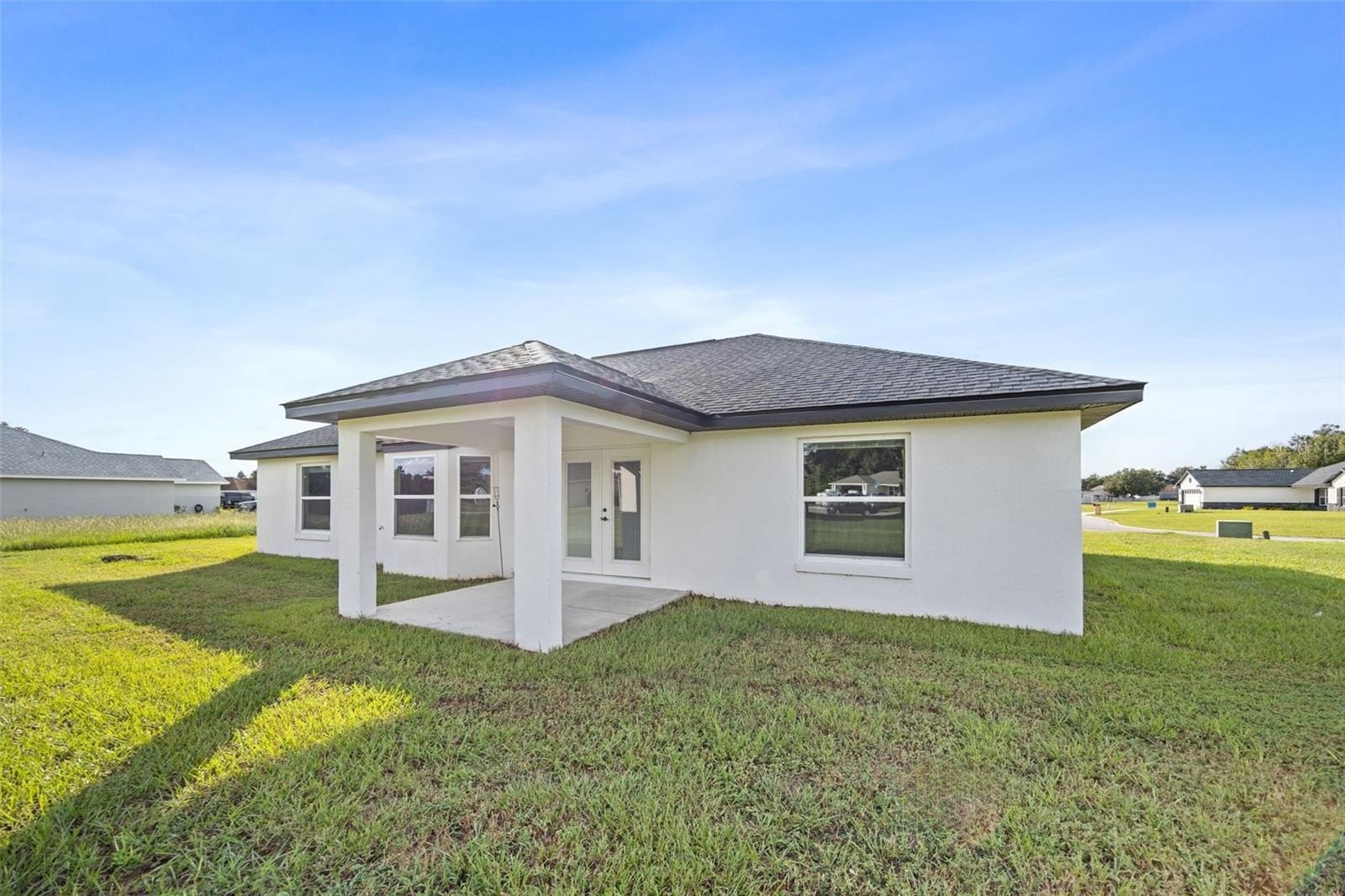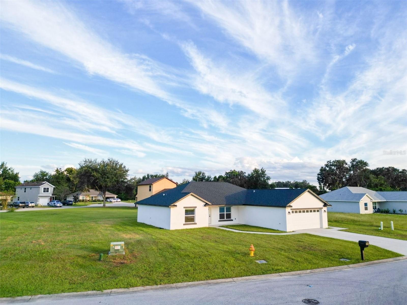 Chase model Black Marlin Capital home in Jumper Creek Manor. Practically brand new, completed in 2024, and completely MOVE-IN ready. This is about as low maintenance, yet high quality as you can get for the price you would pay to rent. Why pay someone else’s mortgage when you can pay your own? First-time homebuyer programs available. FHA and VA loans accepted. USDA qualified. The Jumper Creek Manor Community is an established HOA with low fees, only $400 per year, and you can see how well-maintained this community is. Sitting at 1745 living square feet, and a total of 2427 under roof, this 3-bedroom, 2-bathroom, 2-car garage, block and stucco home checks all your neighborhood living boxes. Inside, the floor plan is perfect. A huge living, dining, kitchen, and breakfast nook area. Dallas White granite throughout with Shaker-style white cabinets and black hardware and fixtures. All stainless steel appliances. Stylish light fixtures and ceiling fans. Tile to the ceilings in both baths. Two walk-in closets in the primary bedroom. A walk-in shower in the primary bathroom. We even have granite in the laundry room with yes… even space to fold your clothes. The garage is HUGE, and the builder was thoughtful enough to tuck the water heater and HVAC system out of the way for maximum use. An automatic garage door is INCLUDED. Covered back patio with a great view. Brownwood, Owens Corning, architectural shingle roof with white drip edge and soft blue Sherwin Williams exterior paint are the perfect combination. This is a great-looking house inside and out, and the best part… did we say it’s almost brand new?? High-speed internet and cable are available. No need for satellite here unless you want it. Access to the City of Bushnell refuse collection if you want it. Public water and sewer, no need to worry about wells and septics. We love this home and think you will too. Call today.