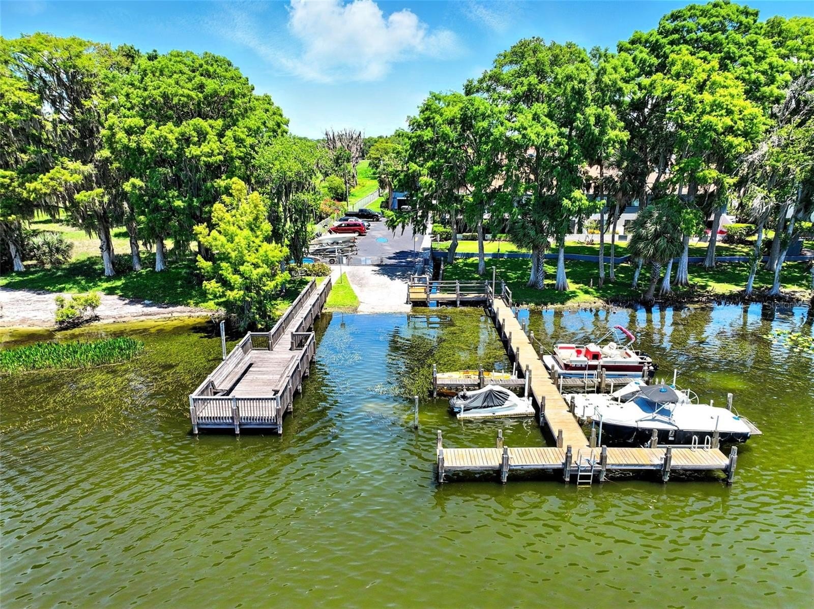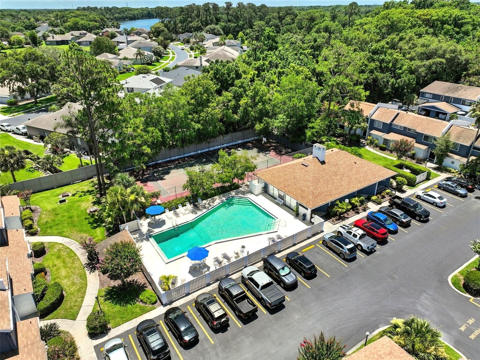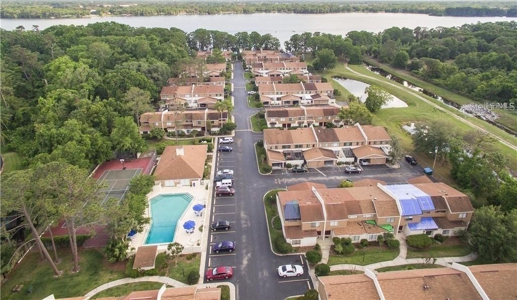 Reduced! A cozy, large two-bedroom, 1.5-bath Townhouse with very close deeded access to Private 400-acre Fish & Ski Lake Howell. 2 large bedrooms. Volume Ceiling in the living room. Ceiling fans throughout. Laundry/Pantry room with by side Washer and Dryer. Large enclosed screened-in patio. Carport with storage. Large storage closet under the stairs. Tile floors are in the kitchen, dining hall, and Living rooms. Carpet upstairs. Recent New Roof 2019, New Hot water Heater 2025 New Double pane energy efficient windows 2023. Bring your boat, jet ski, Kayak, fishing poles, or Paddle Boards, and enjoy our Private 400-acre Fish & Ski Lake Howell. Private Boat ramp. Docks with slip space. Community Fishing/Observation dock. Sparkling swimming pool. Tennis Court. Clubhouse with full kitchen. Planet Fitness & Crunch .10 mi down the street. Well-run Homeowners Association that funds its reserves. Great Starter or Investment property
