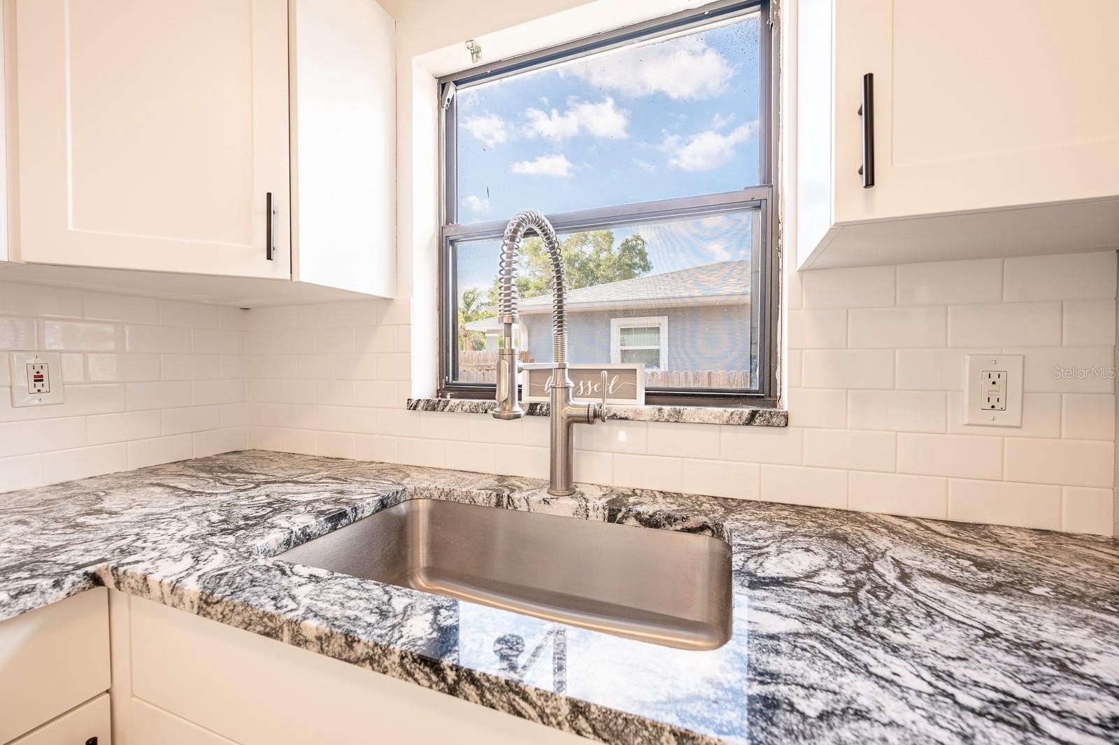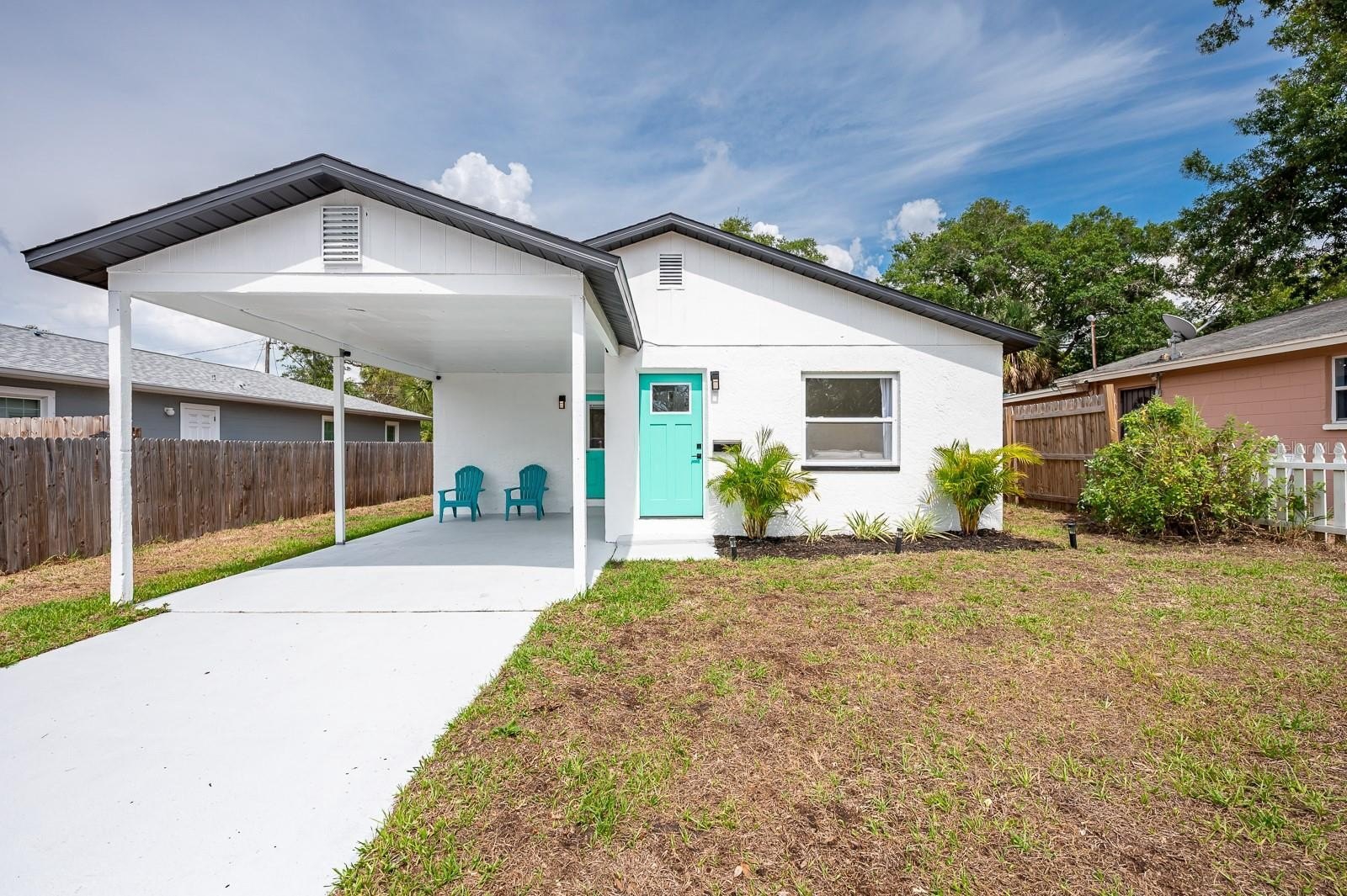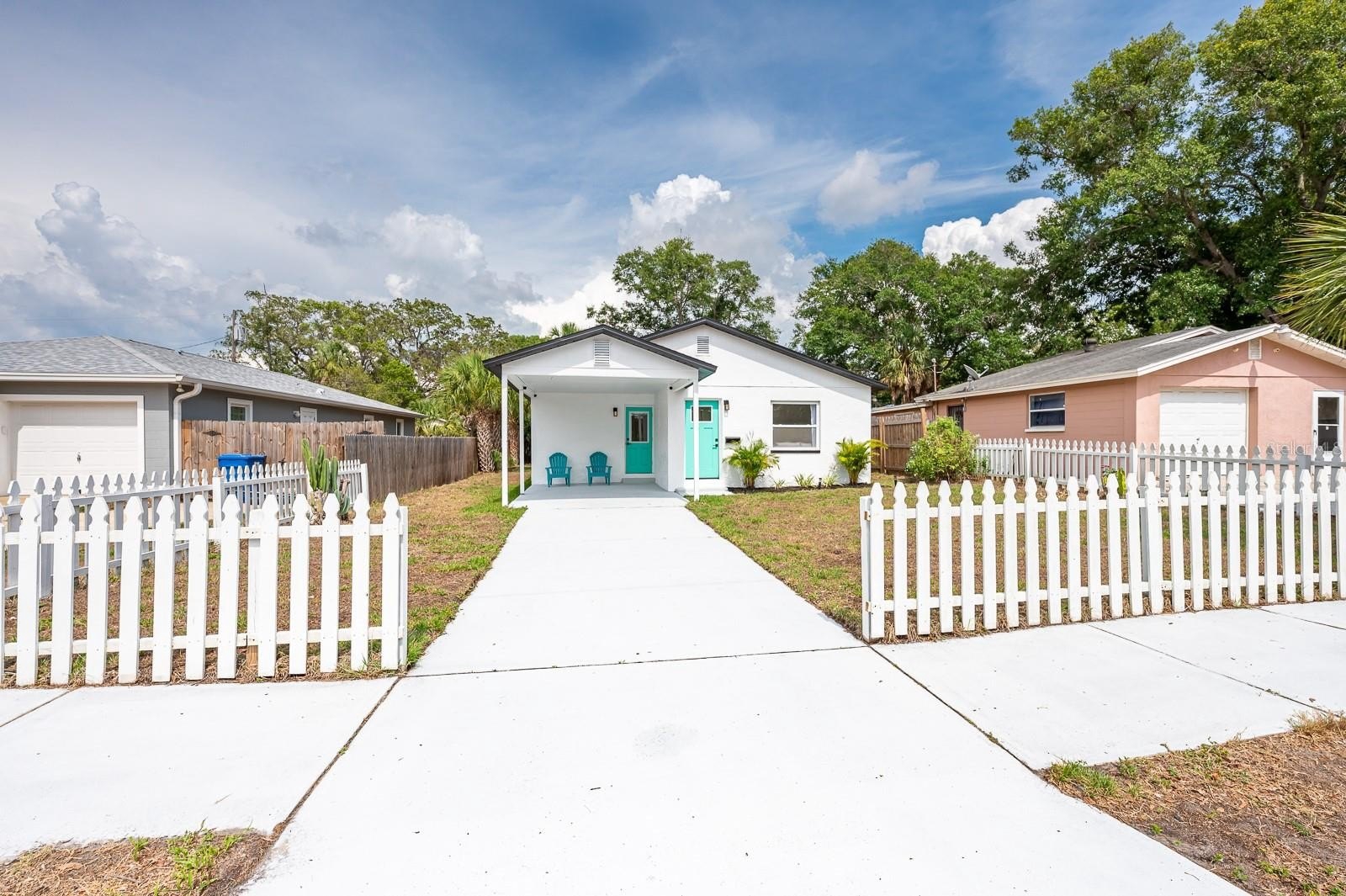 Welcome home to this completely renovated 3 bedroom 2 bath block construction property with a carport, ideally located in St. Pete! Upon entry you will notice the waterproof luxury vinyl flooring installed throughout the home, giving it a continuous feel. Your new kitchen boasts solid wood cabinetry with granite countertops, a subway backsplash, and stainless steel appliances. All plumbing and electrical fixtures throughout have been upgraded in 2021, along with a new water heater in 2021. New Vanities with Granite Countertops & vessel sinks were updated in 2021. Other major components that have been recently upgraded include HVAC Condenser-2021,HVAC Air Handler-2023,HVAC Duct Work-2023, Washer/Dryer-2023 & Roof-2017. Both the interior/exterior of the home have been repainted to exude a modern feel, along with the driveway epoxy paint coating in 2025. The fenced in, sodded yard provides plenty of space for outdoor activities/leisure. This property experienced NO issues during the last major storms (X-Flood Zone, Flood Insurance not required). Location is key here being conveniently situated close to downtown Gulfport, St. Pete Beaches, I-275, Clam Bayou, Twin Brooks Golf Course, The Pinellas Trail, & Downtown St. Pete.