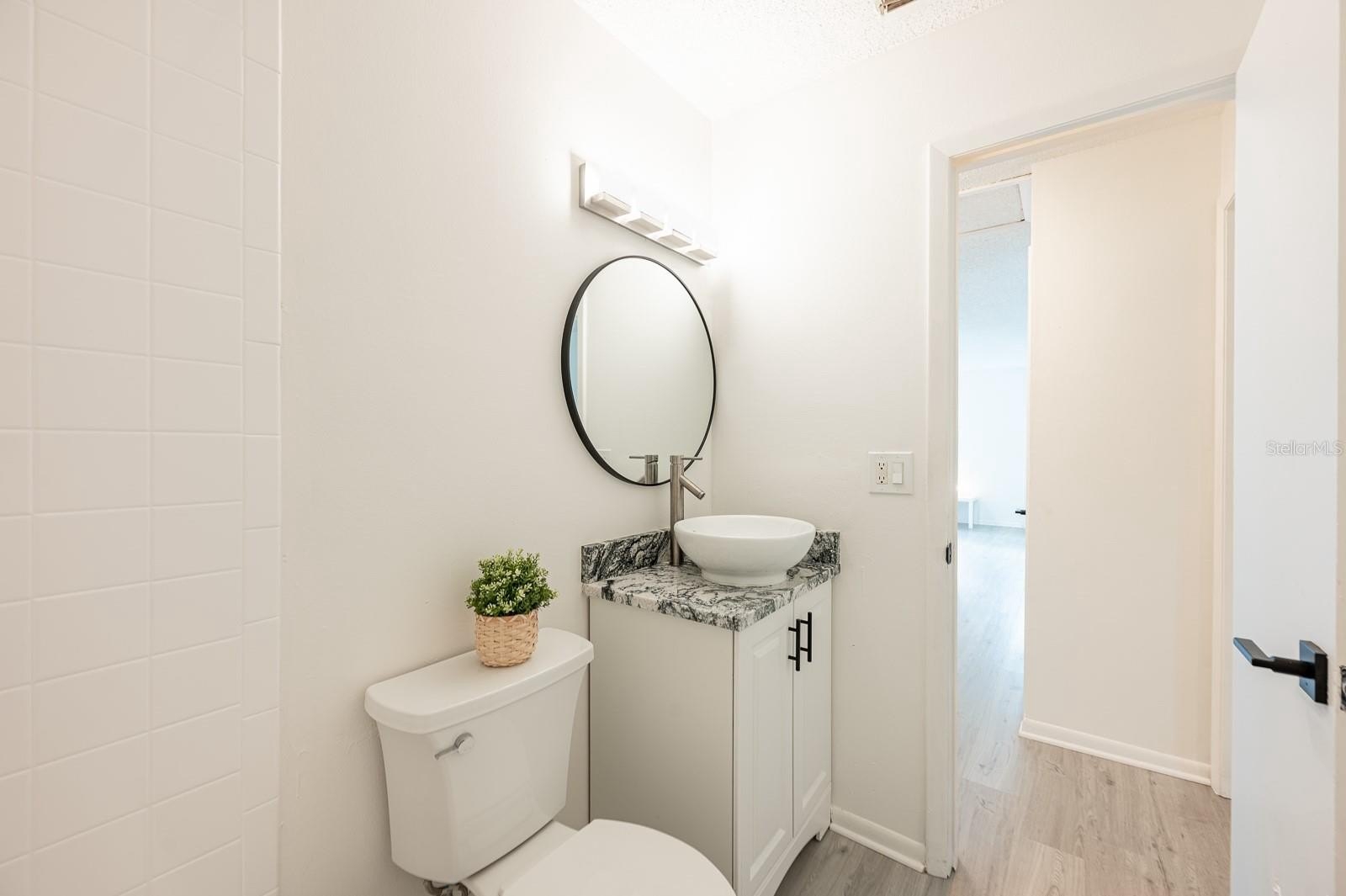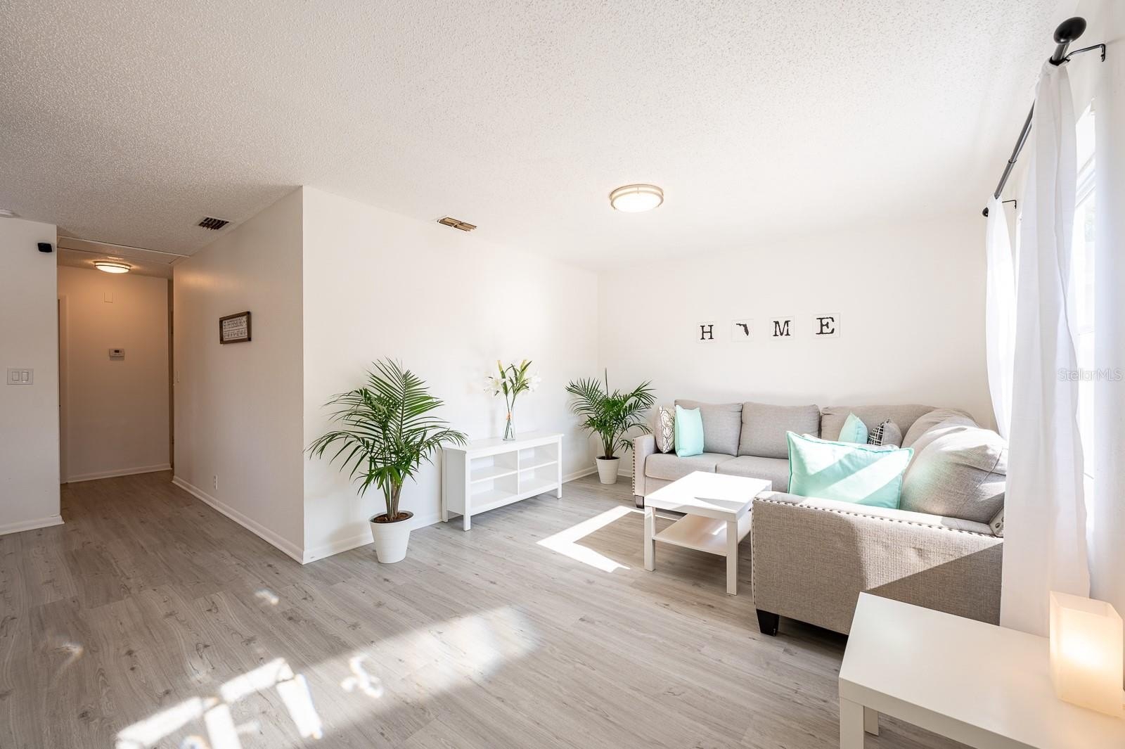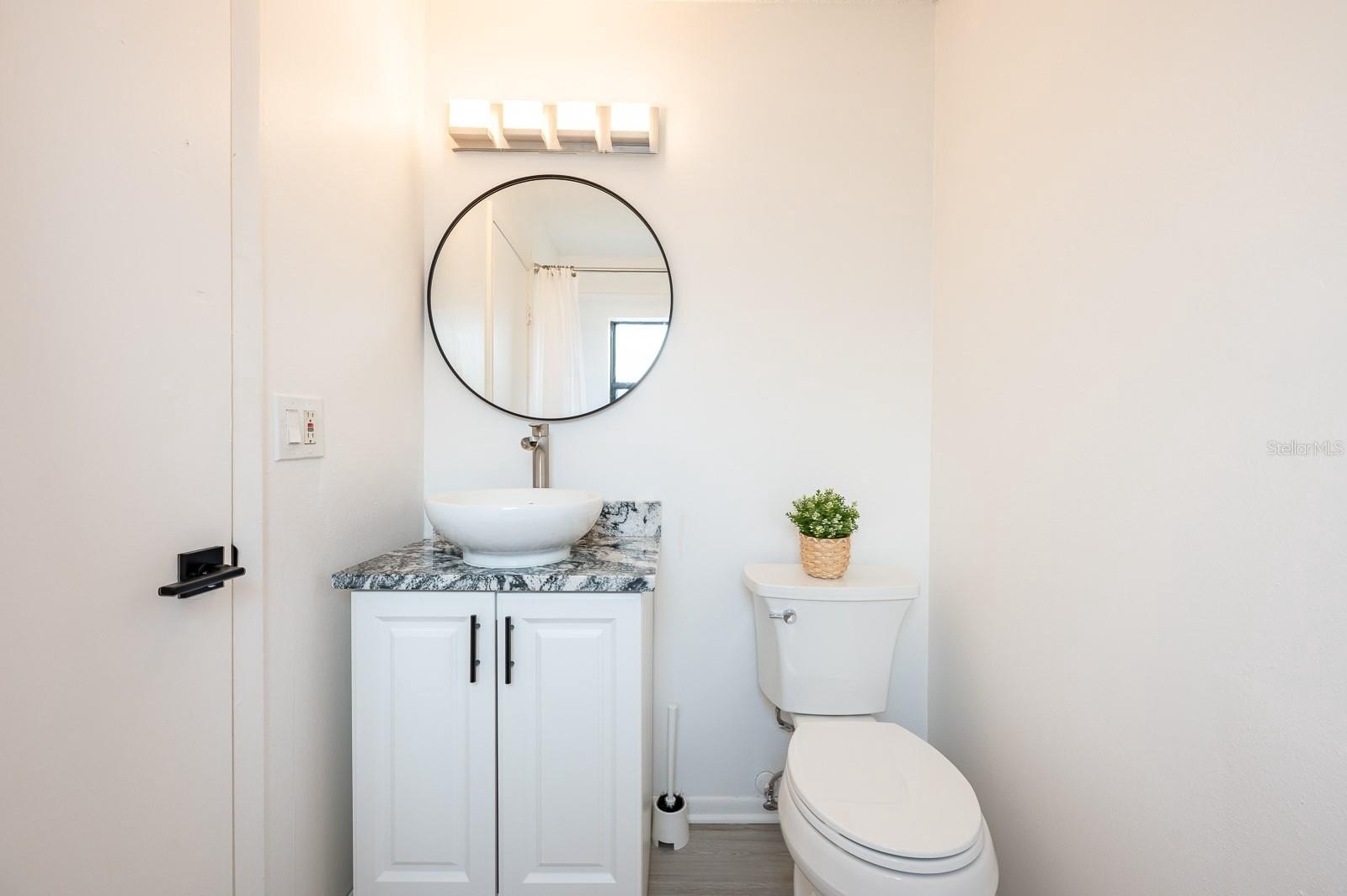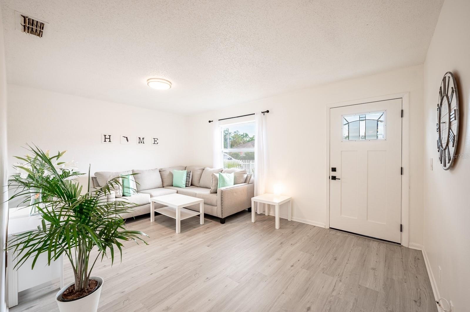 Welcome home to this completely renovated 3 bedroom 2 bath block construction property with a carport, ideally located in St. Pete! Upon entry you will notice the waterproof luxury vinyl flooring installed throughout the home, giving it a continuous feel. Your new kitchen boasts solid wood cabinetry with granite countertops, a subway backsplash, and stainless steel appliances. All plumbing and electrical fixtures throughout have been upgraded in 2021, along with a new water heater in 2021. New Vanities with Granite Countertops & vessel sinks were updated in 2021. Other major components that have been recently upgraded include HVAC Condenser-2021,HVAC Air Handler-2023,HVAC Duct Work-2023, Washer/Dryer-2023 & Roof-2017. Both the interior/exterior of the home have been repainted to exude a modern feel, along with the driveway epoxy paint coating in 2025. The fenced in, sodded yard provides plenty of space for outdoor activities/leisure. This property experienced NO issues during the last major storms (X-Flood Zone, Flood Insurance not required). Location is key here being conveniently situated close to downtown Gulfport, St. Pete Beaches, I-275, Clam Bayou, Twin Brooks Golf Course, The Pinellas Trail, & Downtown St. Pete.