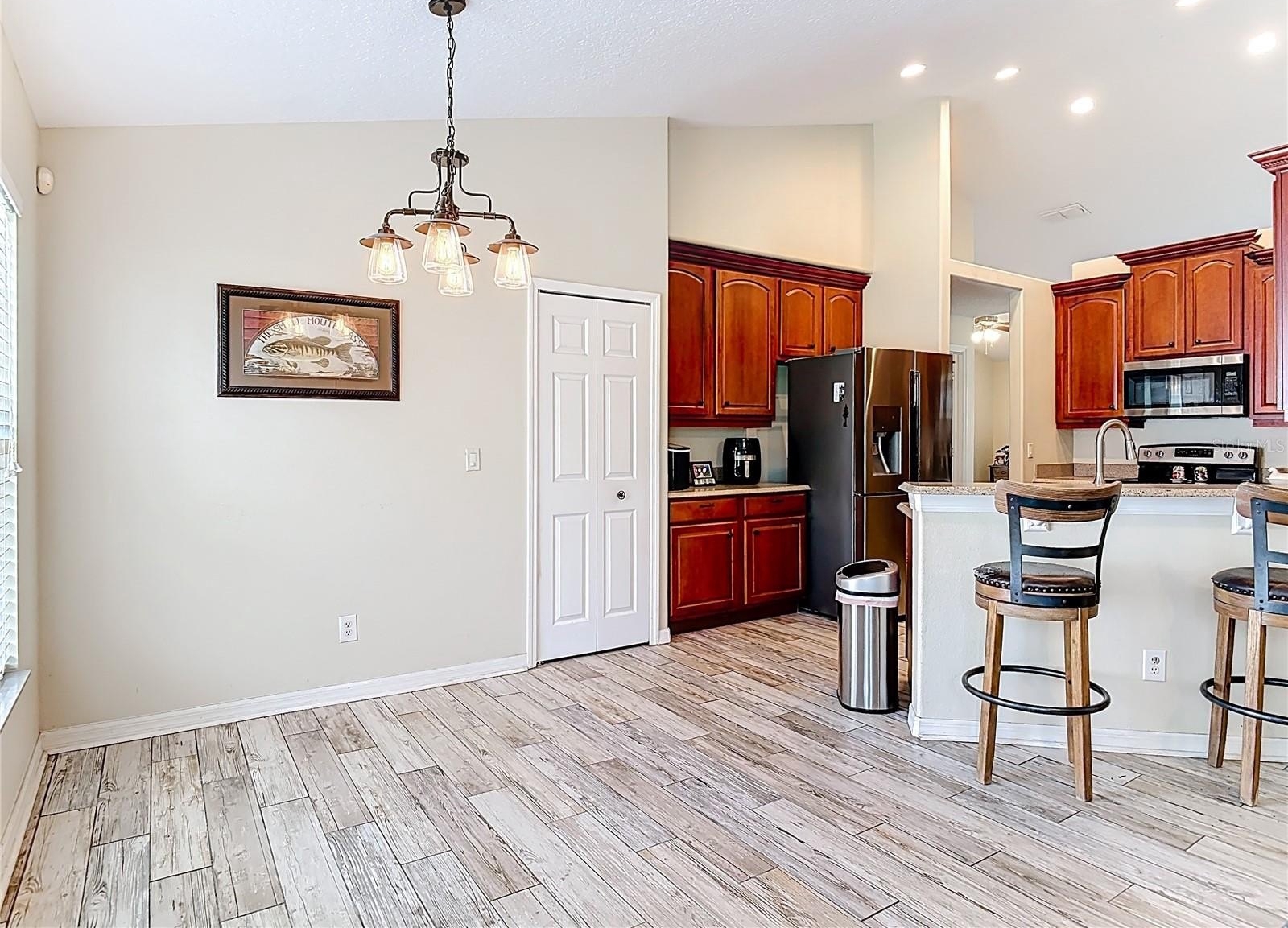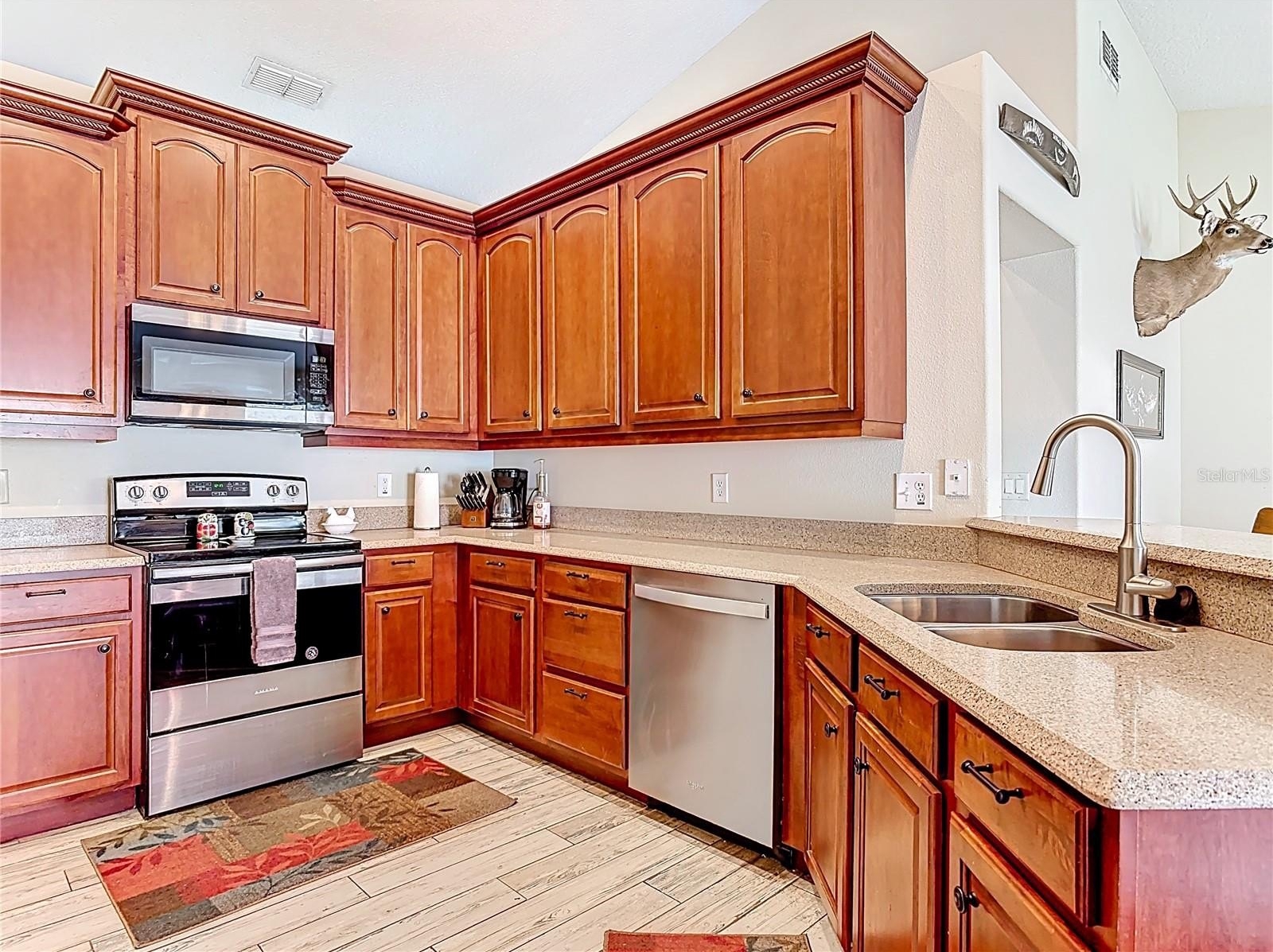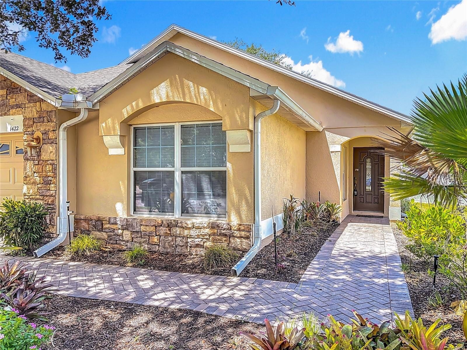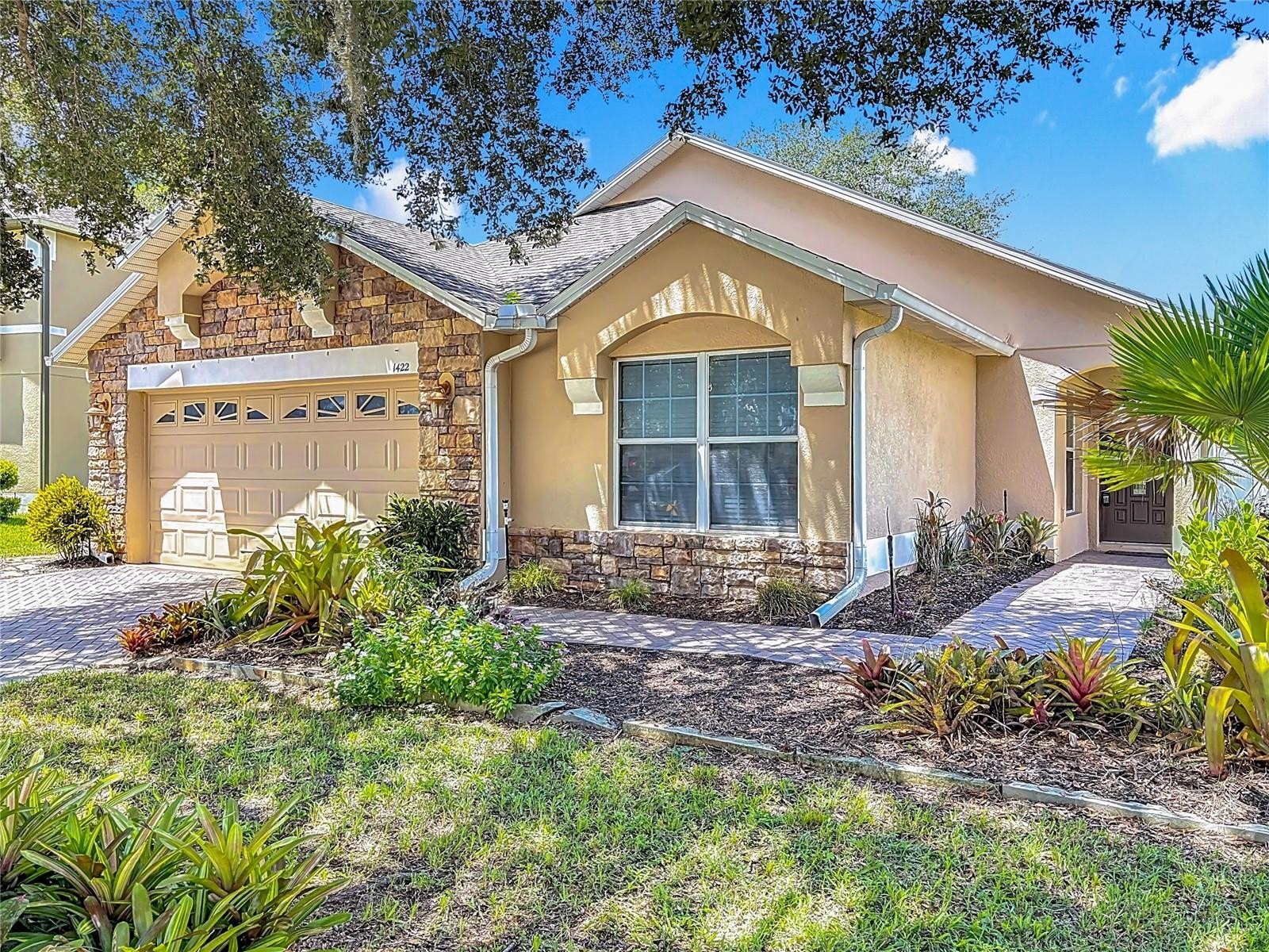Welcome to 1422 Osprey Hunt Lane, where an elegant fusion of space and design awaits within its 1,737 square feet of living area. This single-family home in the gated Spring Ridge Estates offers three bedrooms and two bathrooms, crafted for comfort and style. The seamless flow from the sophisticated kitchen, with its rich wooden cabinetry, to the spacious living area, highlights the open floor plan that's ideal for gatherings and tranquil evenings. Bathed in natural light, the wood-style flooring underfoot adds warmth and charm to every corner of this inviting space. The master bedroom serves as a serene escape, with gentle light filtering through the windows, setting a calm tone for the start of each day. The ensuite bathroom is a personal spa sanctuary featuring dual vanities and a sublime blend of shower and soaking tub, all embraced by elegant tiling. Each room, whether it’s the sun-kissed bedrooms or the welcoming common areas, offers a unique backdrop for creating cherished memories. Step through the doors to discover a screened-in pool area, where the solar-heated waters invite you to enjoy the sun-kissed Florida lifestyle in the privacy of your backyard oasis, accented by vibrant landscaping and the quietude afforded by having no rear neighbors. The home’s stone accented facade and inviting pathway echo the warmth and welcome that define this property. At 1422 Osprey Hunt Lane, you’ll find not just a living space but a canvas for living well, in a community that’s both safe and serene. Contact us today to see your new home!