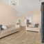 Designed for family living and entertaining, this residence features neutral paint and tile flooring throughout the main living areas, creating a fresh, low-maintenance space that suits any décor style. Vaulted ceilings, sliding doors, and large windows fill the home with an abundance of natural light, enhancing the open and airy feel.