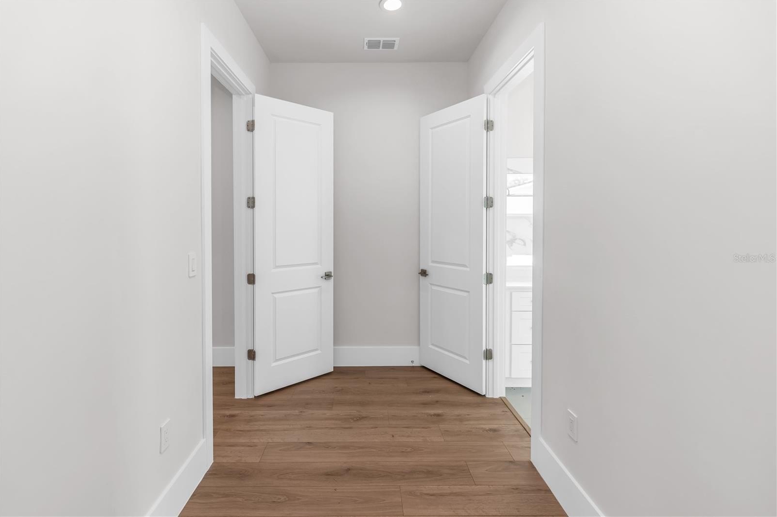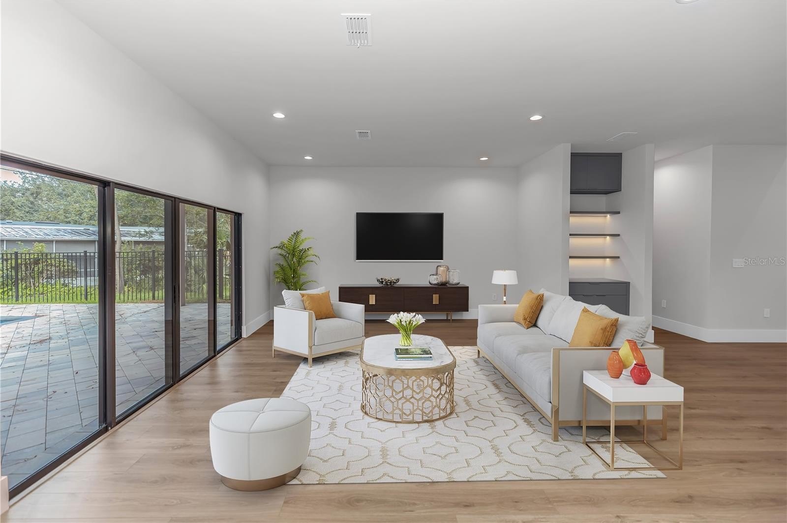 Step through the double-door entry into a world of elegance, featuring high-end LVP flooring, 8-foot interior doors, and 10-foot ceilings throughout. The open-concept floor plan is flooded with natural light, enhanced by recessed lighting and clean, contemporary lines.