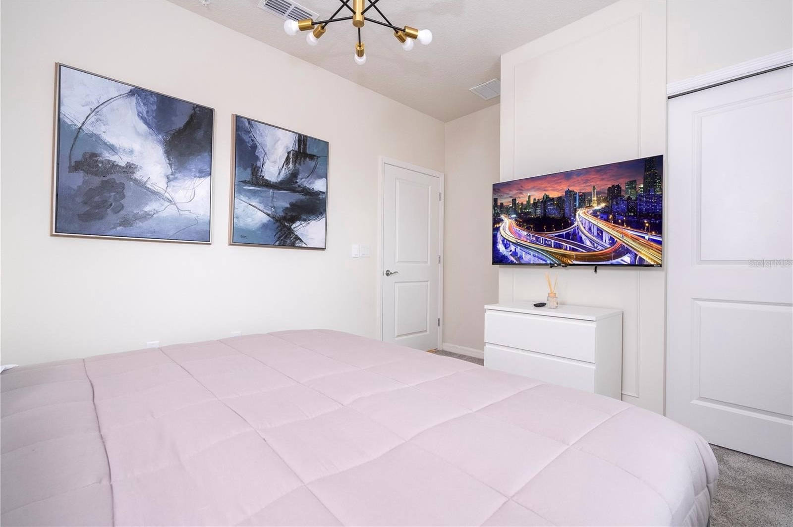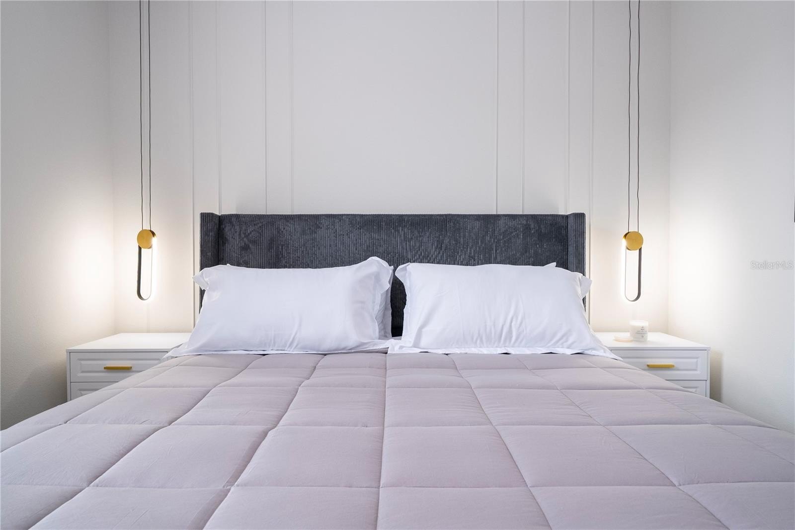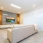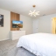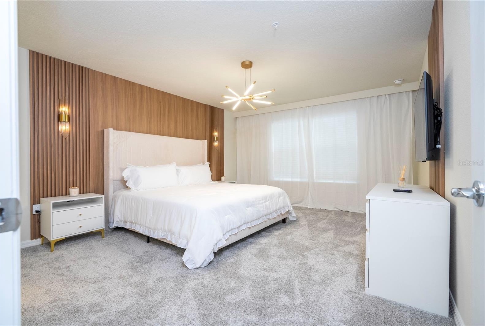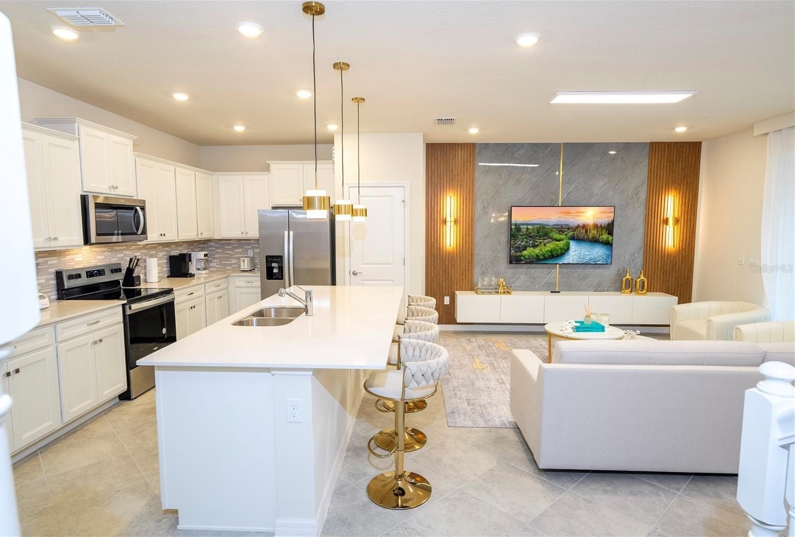 Modern Kitchen: Delight in the sleek white cabinetry and ample counter space, ideal for preparing meals or entertaining guests.