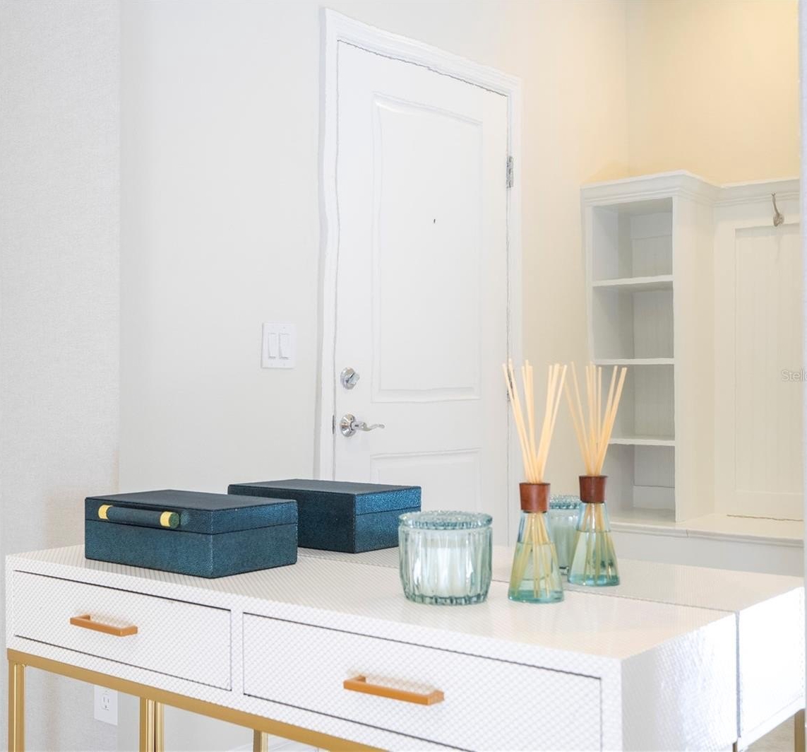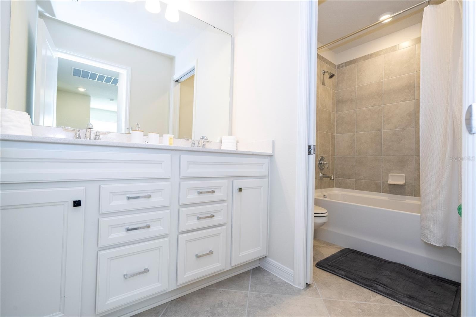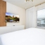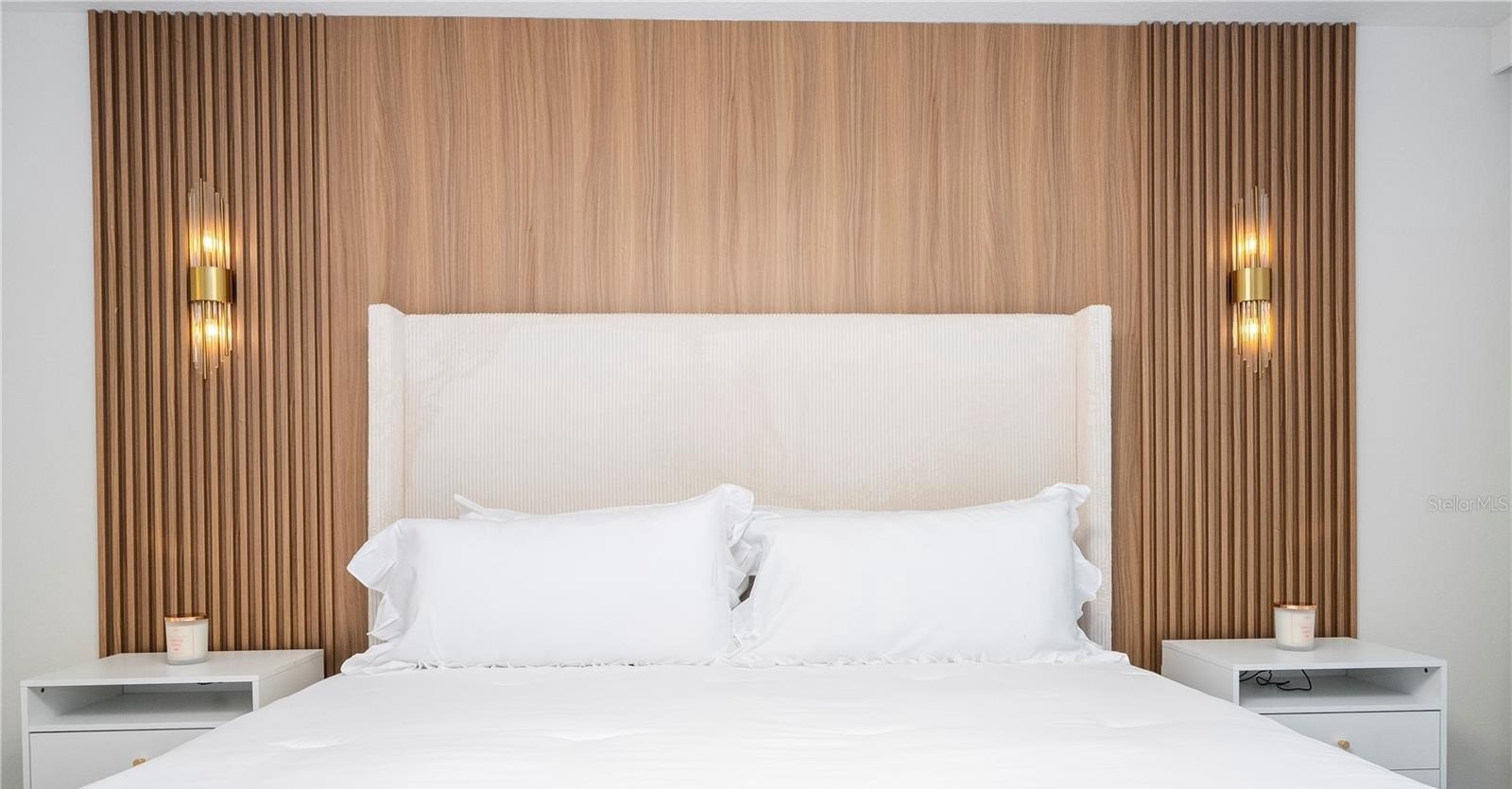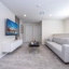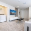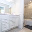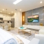Modern Kitchen: Delight in the sleek white cabinetry and ample counter space, ideal for preparing meals or entertaining guests.