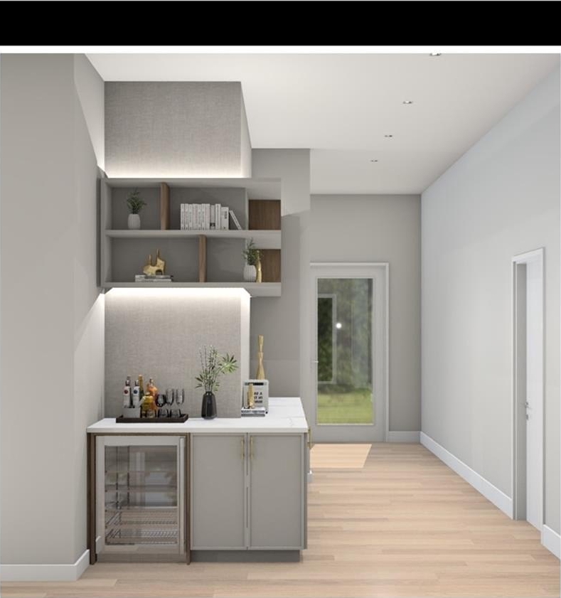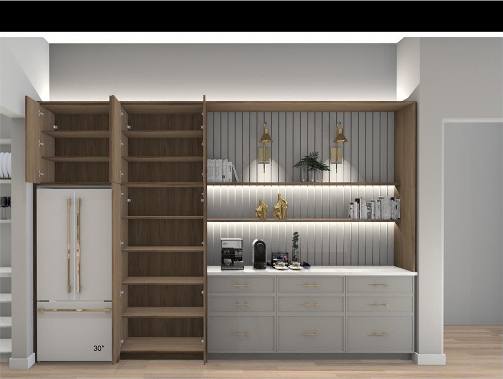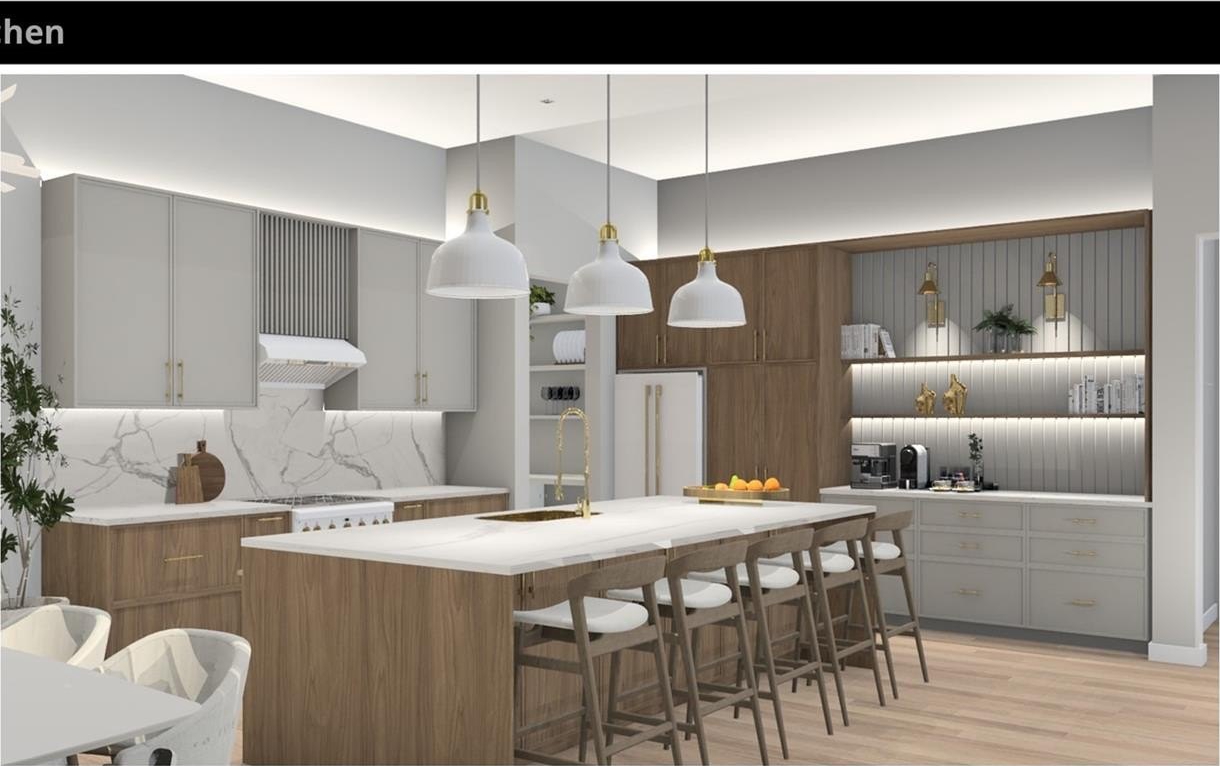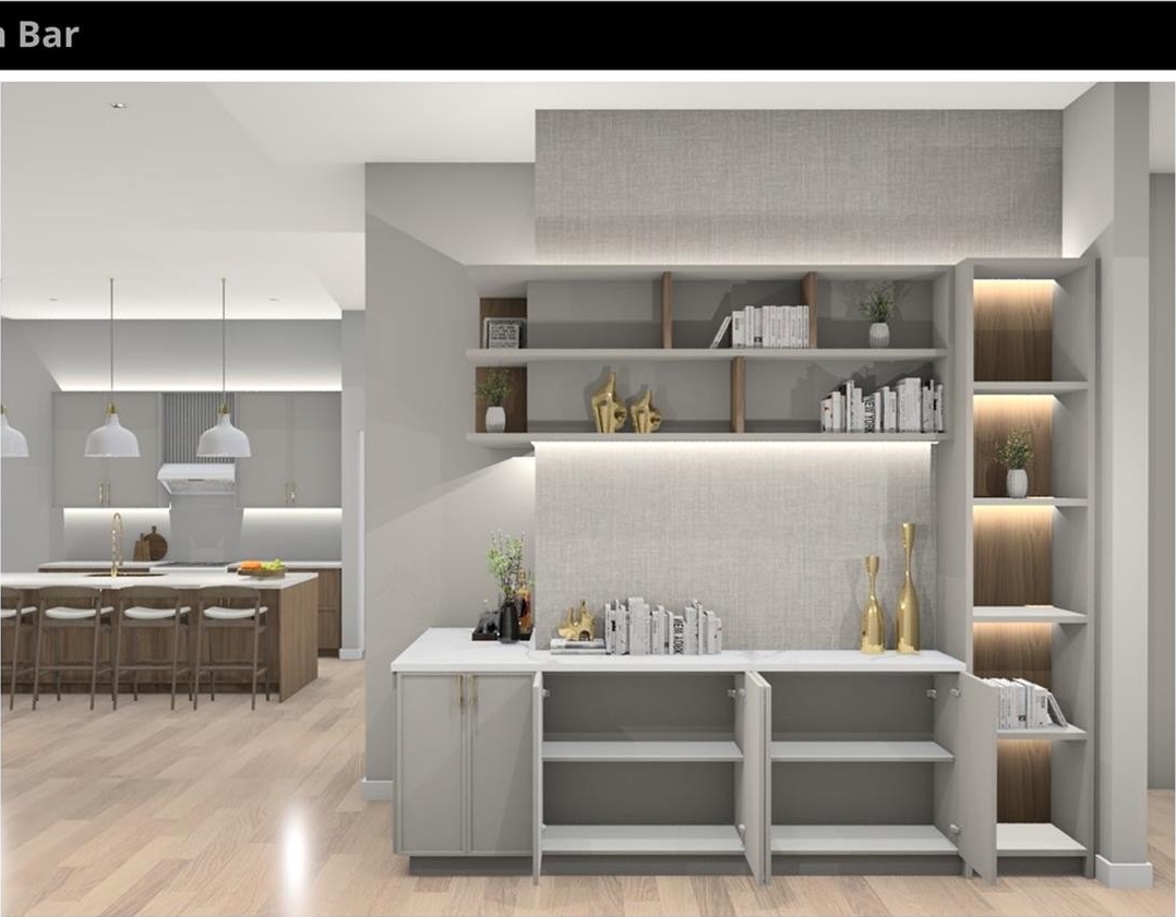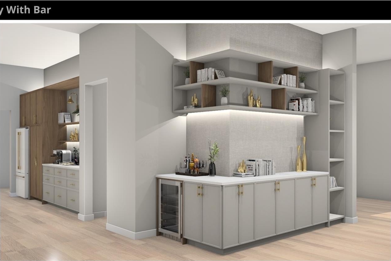 The chef’s kitchen is a true showpiece, complete with a coffee bar, walk-in pantry with customized shelving and designer lighting, and seamless flow into the open-concept living and dining areas. A wine room adds sophistication and convenience for the entertainer at heart.