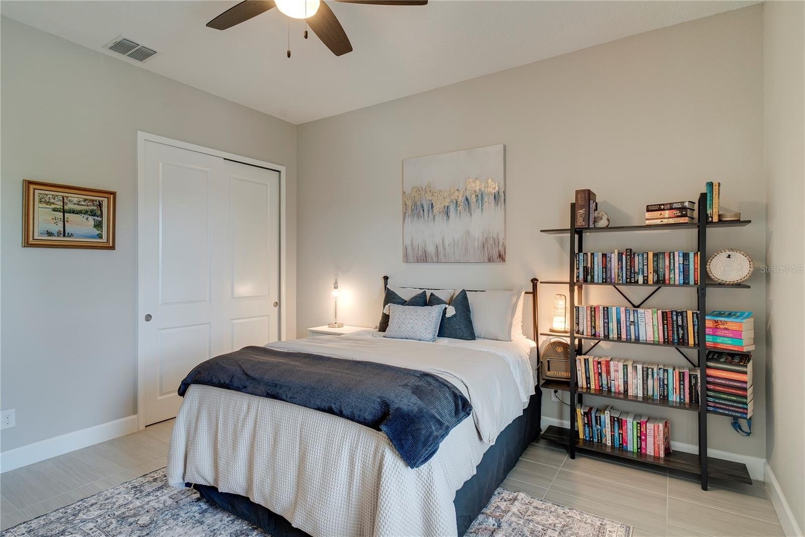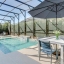 Disappearing slider doors open the living area to the covered lanai and the screened-in pool. The pool and decking, installed just over a year ago, feature a Versatemp heat/chill pump—allowing year-round comfort whether you want to warm the water or cool it down—creating a fresh, modern outdoor retreat ideal for relaxing or entertaining.