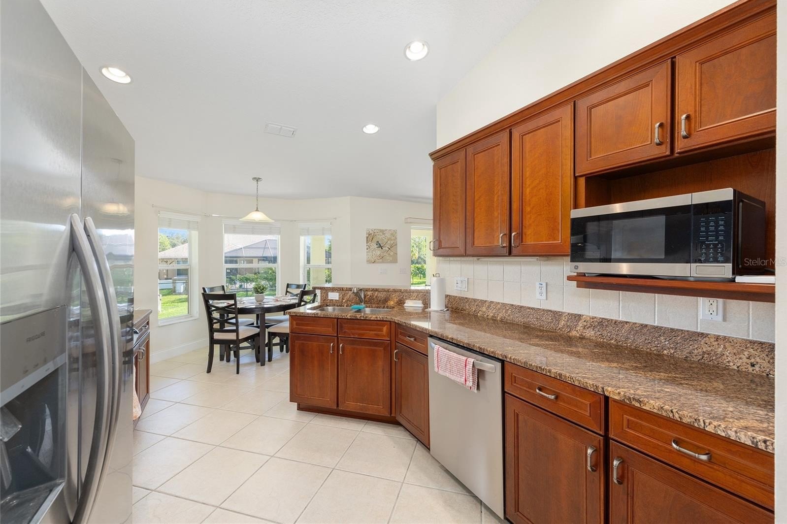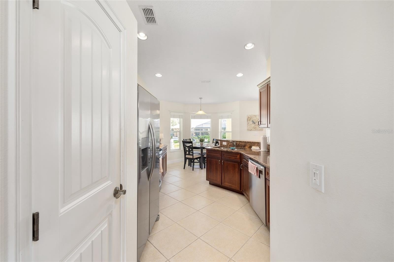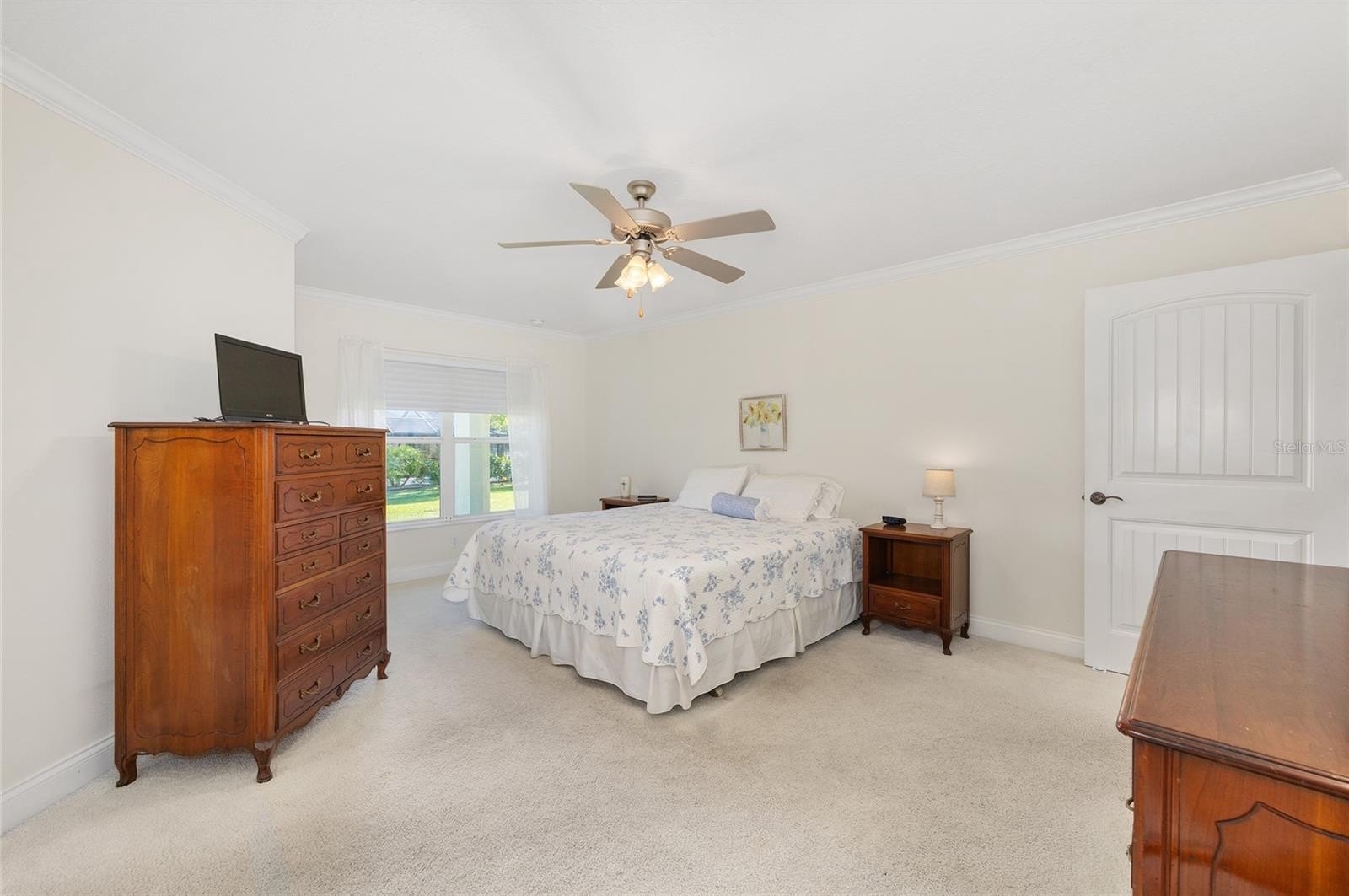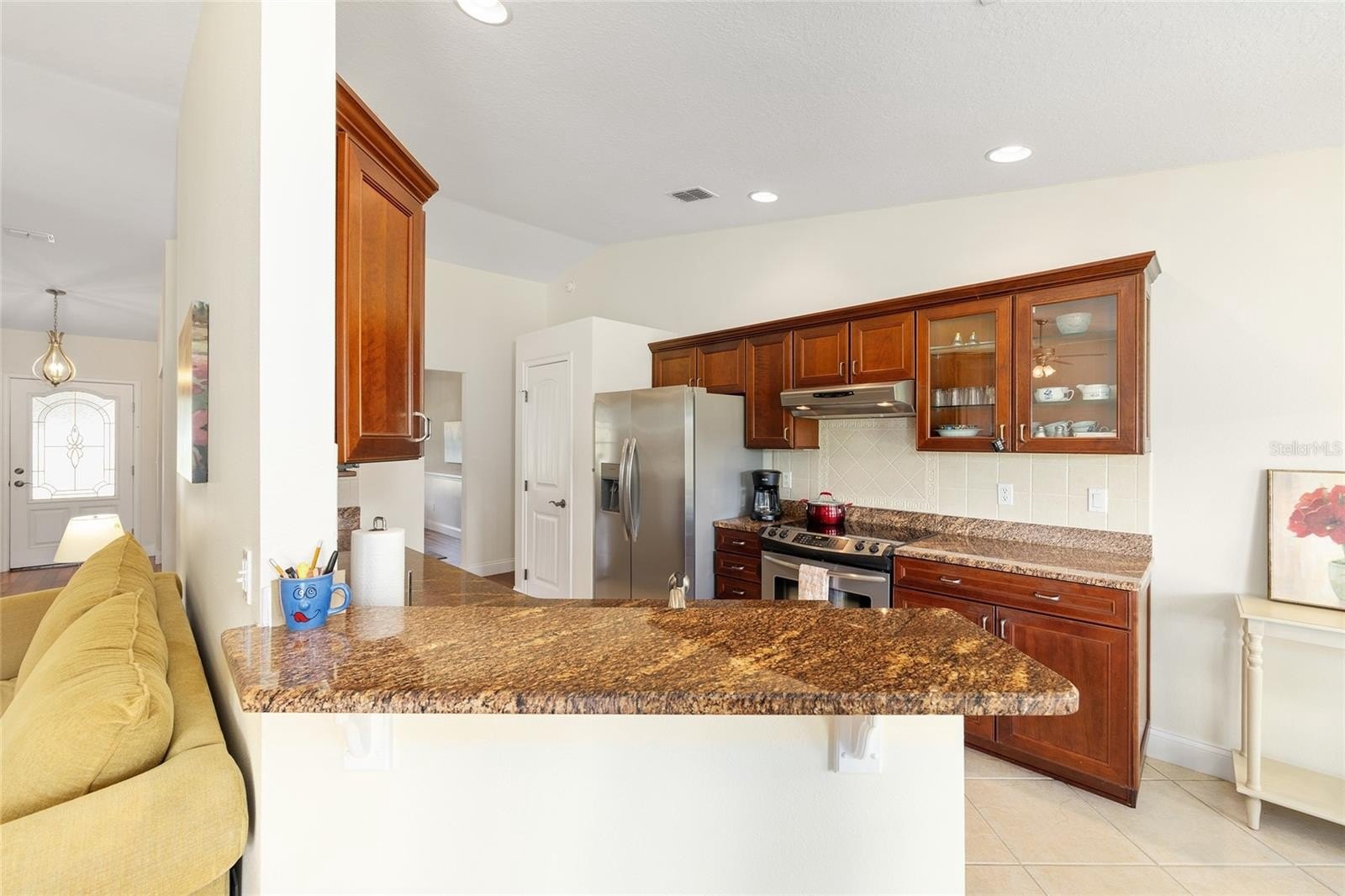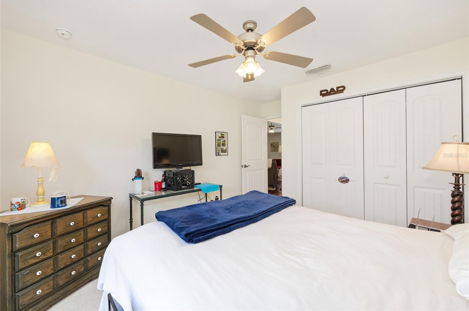 Ideal Location & Impeccably Maintained home. Welcome to this beautifully cared-for 3-bedroom, 2-bath block home in a golf cart-friendly community just across from The Villages – with no HOA and pride of original ownership evident throughout! Situated on a landscaped corner lot, this home offers both convenience and comfort in a sought-after Summerfield location. Step inside to find vaulted ceilings and natural light filling the space. The entry foyer opens to a formal dining room on one side and a private office with French doors on the other. The engineered hardwood flooring flows through the main living areas, with carpeted bedrooms in a desirable split-bedroom layout. The spacious living room features sliding doors that lead to a covered lanai, perfect for morning coffee or evening relaxation. The fully equipped kitchen boasts granite countertops, stainless steel appliances, a pantry closet, and a casual dining nook for everyday meals. The primary suite offers a large walk-in closet and an ensuite bathroom with a dual granite vanity, garden tub, and roll-in shower. A privacy door separates the guest wing, which includes two additional bedrooms and a full bath with granite counters. Practical features include a laundry room with extra project or storage space, and a generously sized 28' x 24' garage with room for two cars plus a golf cart. Enjoy relaxing on the covered front porch and appreciate the curb appeal of tasteful landscaping. New Roof 2024, New well pump 2025 and new HVAC 2018. This is a rare opportunity to enjoy peaceful living with easy access to all the shopping and entertainment of The Villages—without the fees.