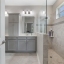 The gourmet kitchen is a chef’s dream, boasting timeless shaker-style cabinetry with crown molding and brushed nickel hardware, complemented by a glass tile backsplash. A central island with quartz countertops and pendant lighting creates a stunning focal point, while a walk-in pantry, coffee station, and stainless steel appliance package add function and convenience. A charming breakfast nook provides a cozy space for casual meals, and the open-concept layout ensures effortless entertaining as the formal dining room flows into the main living area.