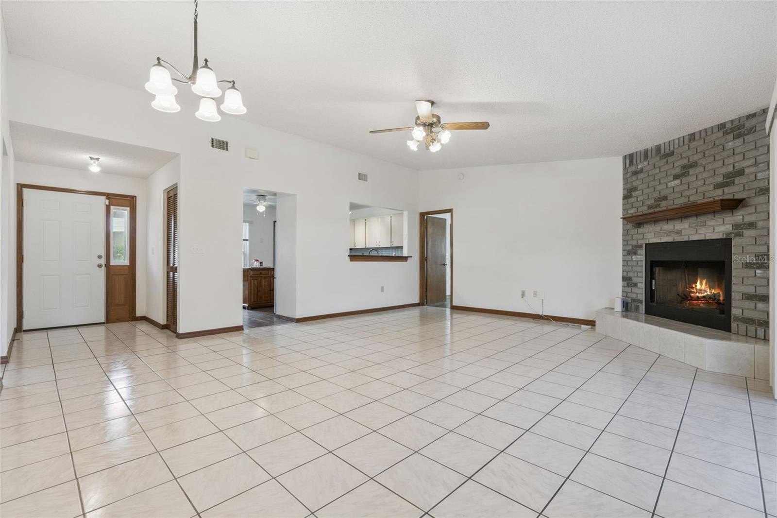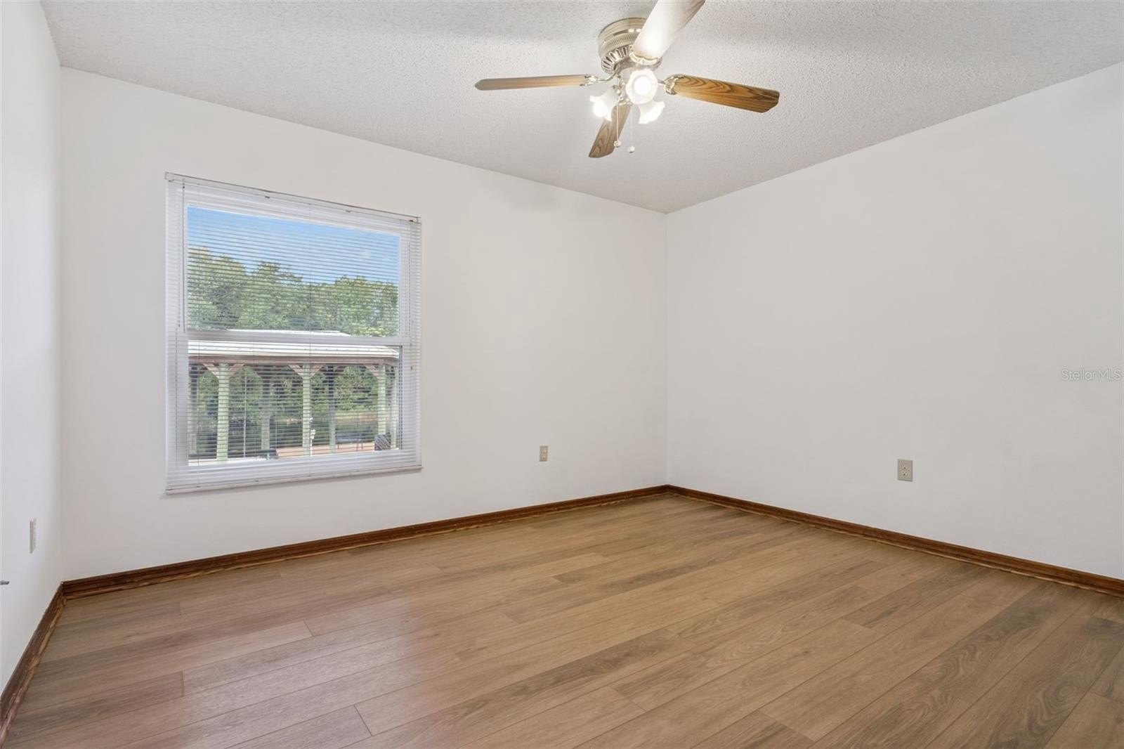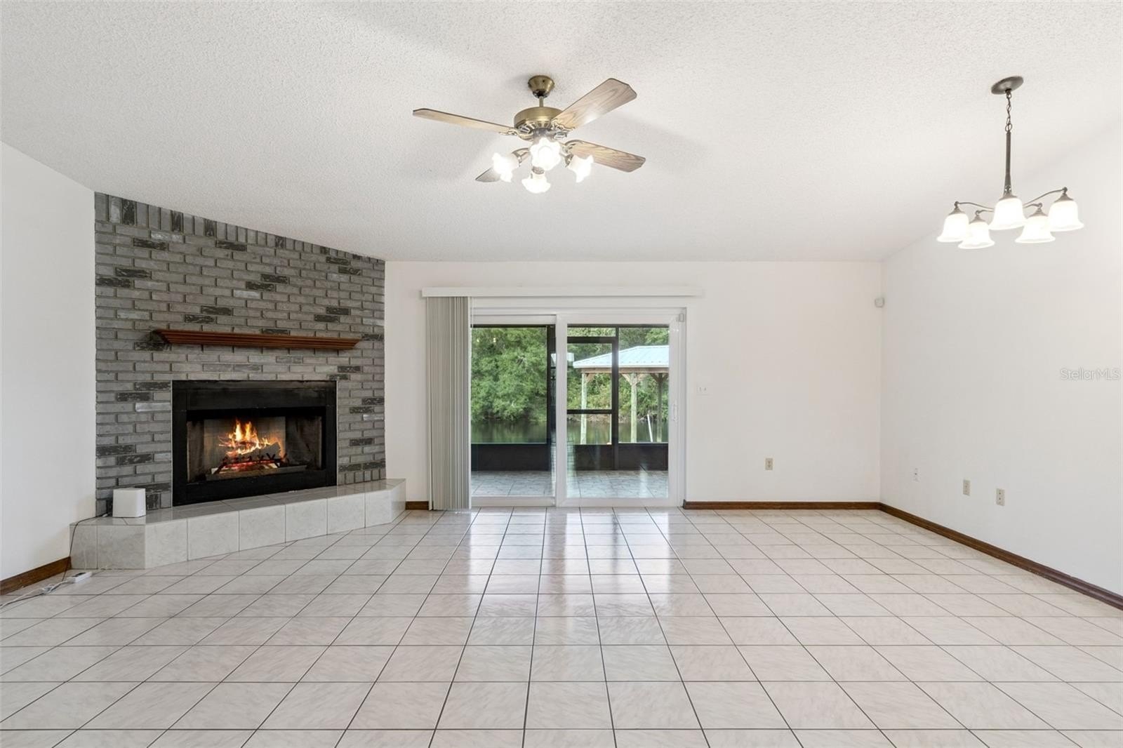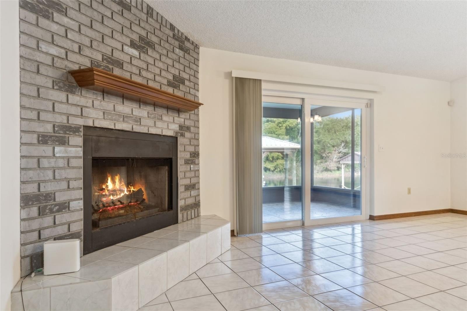 Upon arrival, you’ll be greeted by a charming screened-in front porch. Inside, the spacious living room features a cozy wood-burning fireplace, while glass sliding doors frame stunning waterfront views. Solid surface flooring flows throughout the home, ensuring durability and easy maintenance. Enjoy peace of mind with Simonton impact-resistant windows and sliding doors, providing safety and comfort during inclement weather.