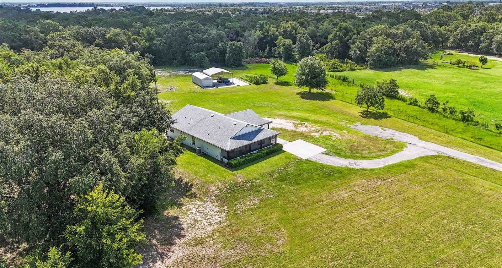 Welcome to this charming 2,543 sq. ft. block home situated on 4.87 acres, offering the perfect balance of peaceful country living and quick access to some of Florida’s most exciting destinations. Set in an area poised for strong future appreciation, this property provides not only a beautiful lifestyle but also an excellent investment opportunity. Step inside to discover a spacious open floor plan connecting the kitchen and living room, creating an inviting space perfect for everyday living and entertaining. The kitchen boasts stainless steel appliances, a farm sink, and plenty of counter space, seamlessly flowing into a large living area and an additional 10’ x 24’ flex room ideal for a playroom, office, or guest room. The expansive primary bedroom features ample closet space and a luxurious en-suite bath with a walk-in shower and dual sinks. Two additional bedrooms each enjoy their own full bathrooms, ensuring comfort and privacy for family and guests. Outside, you’ll find a 40’ x 60’ concrete pad, including a 20’ x 24’ covered section perfect for boat, RV, or outdoor equipment storage, plus a 15’ x 30’ storage shed for added convenience. Just minutes from Disney, Melbourne Beaches, Orlando International Airport, and more, non-HOA community offering freedom and flexibility and Endless possibilities for outdoor fun—from bonfires to family cookouts. Turn this countryside retreat into your dream home and secure a bright future in one of Florida’s most promising areas!