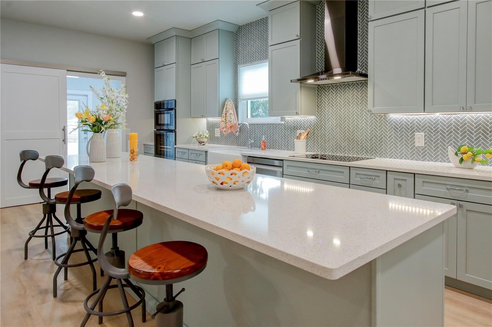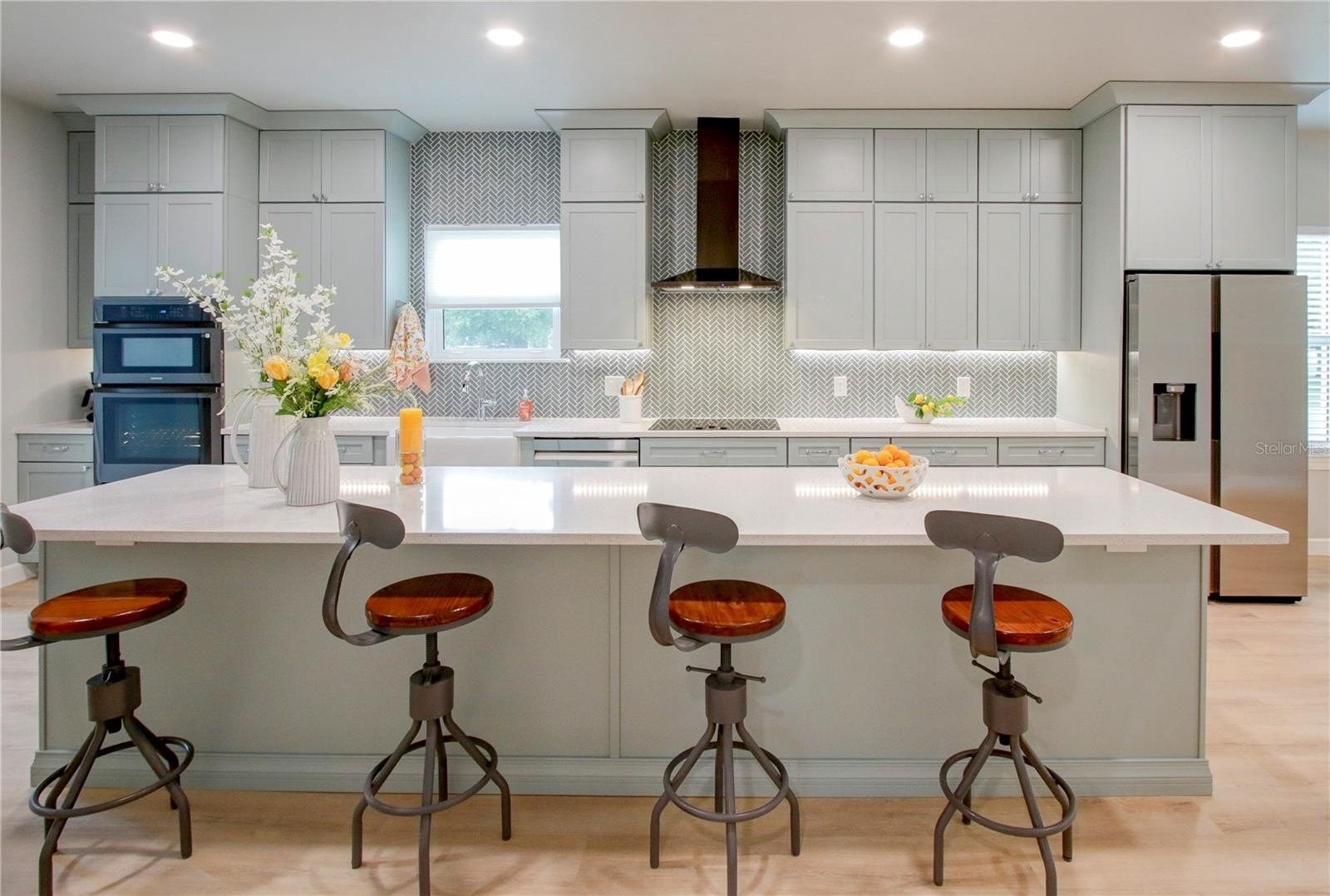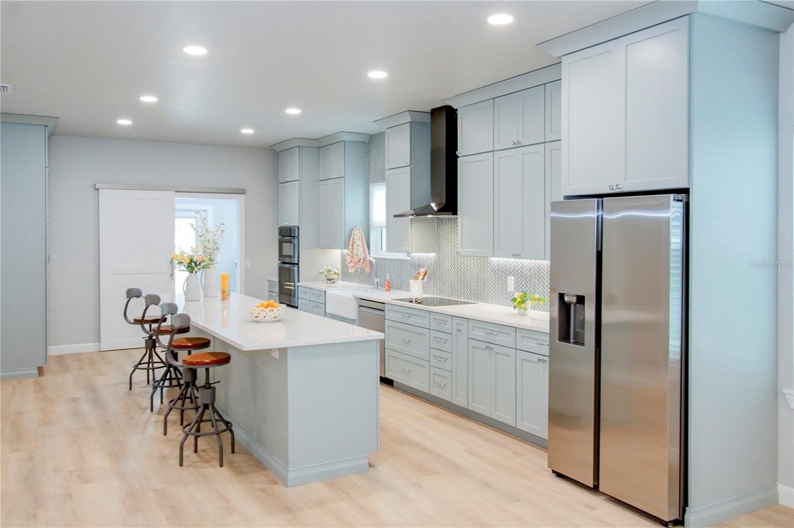 One or more photo(s) has been virtually staged. Welcome to this beautifully designed custom block home—currently the only new single-story construction of its kind in St. Petersburg. Located in the Allendale/Five Points Districrt, this 3-bedroom, 2.5-bath residence offers 2,300 square feet of thoughtfully crafted living space, complete with a 2-car attached garage featuring EV wiring, insulated doors, and an attic crawl space for added storage. Inside, the gourmet kitchen shines with quartz countertops, a spacious island, upgraded Samsung appliances, under-counter lighting, soft-close drawers, and a double pantry. The home features luxury vinyl plank flooring throughout and tiled bathrooms, as well as custom closets and low E impact resistant windows and doors. The owner's suite includes a luxurious bath with a soaking tub, marble walk-in shower, and double sinks. Designed for efficiency and comfort, the home includes open cell foam insulation, a recirculation pump for instant hot water, and a Rheem HVAC and water heater system controllable via app. Smart home ready with pre-wired USB and CAT 5e internet connections add convenience, along with a plumbing loop for a future water filtration system. Outdoors, you will find a well pump irrigation system, rain chains, magnolia trees, coastal grass, and leaf filter gutters for low-maintenance and sustainable living. Additionally a clean out connection that is perfect for an RV is located on the driveway. With a 30 year warranty on shingles and a 5-year labor warranty, this no-flood-zone, no-HOA property is just a short walk from Coffee Pot Park, shops, restaurants, and grocery stores, and blocks from Tampa Bay —offering a rare opportunity to enjoy luxury, efficiency, and location in one exceptional home.