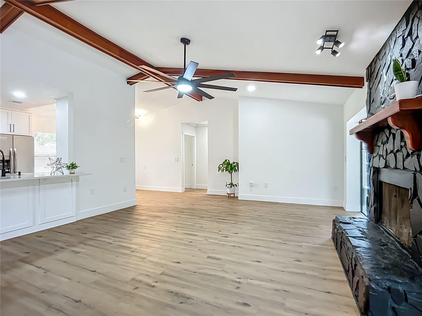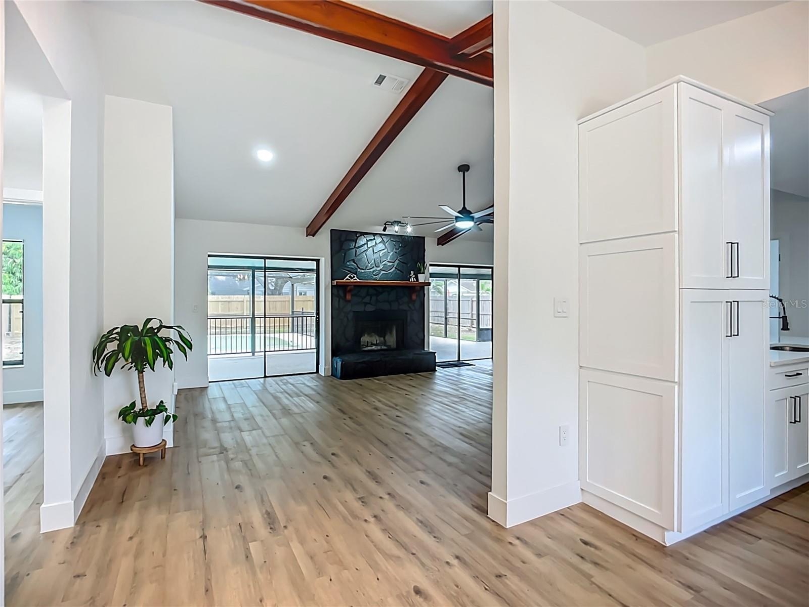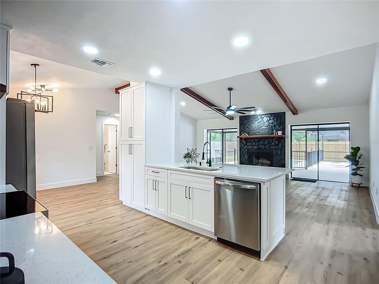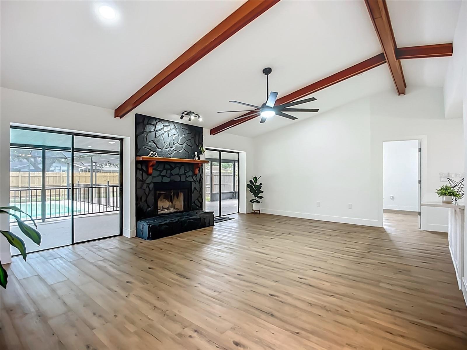 Welcome to your perfect Florida retreat! Discover the allure of this contemporary 3-bedroom, 2-bathroom pool home with a 2-car garage, nestled in enchanting Historic Palmetto - just minutes from waterfront parks such as Emerson Point, charming downtown Palmetto, and easy access to Bradenton and the renowned Gulf beaches. This magnificent property features captivating curb appeal, an expansive open split floor plan that overlooks the pool, a brick wood-burning fireplace, and a secluded outdoor space in a picturesque, bike-friendly neighborhood. Upon entering, you’ll be welcomed by high vaulted beamed ceilings and an abundance of natural light. The home features luxury vinyl plank flooring and 5-inch baseboards throughout, complemented by stylish tile in the bathrooms. Culinary enthusiasts will love the gourmet kitchen, equipped with brand new high-end appliances, elegant white solid wood cabinets with soft-close hinges, luxurious quartz countertops, and a sleek blue backsplash—perfect for both cooking and entertaining. The spacious primary bedroom boasts a walk-in closet and direct access to the pool. The primary bathroom is showcases a stunning stand-up shower, adorned with tasteful tile work, sliding frameless glass doors, a quartz countertop, and premium fixtures. Two additional spacious bedrooms on the opposite side of the home share an equally exquisite full bathroom. Step outside to your private oasis, featuring a fully fenced backyard with a serene screened-in pool area—ideal for relaxation and entertaining. NO HOA or CDD! This home is conveniently located near a variety of outdoor activities, including nature and hiking trails, kayaking, fishing, and more. Take full advantage of the area's natural beauty and enjoy an active lifestyle just minutes from your doorstep. Don't miss your chance for a slice of paradise! Schedule your showing today!