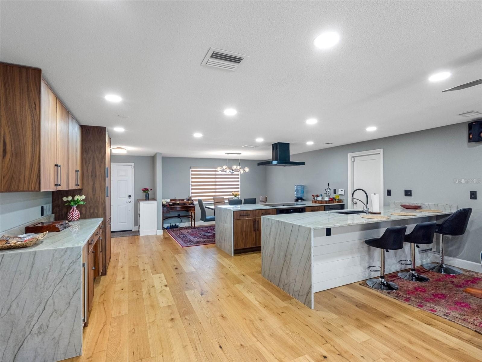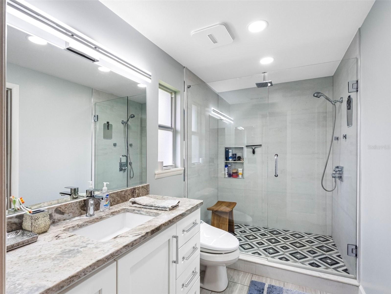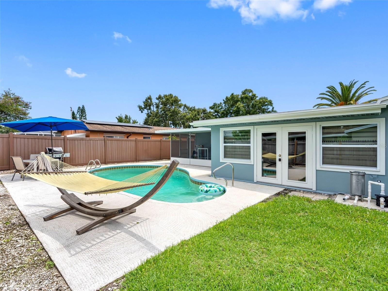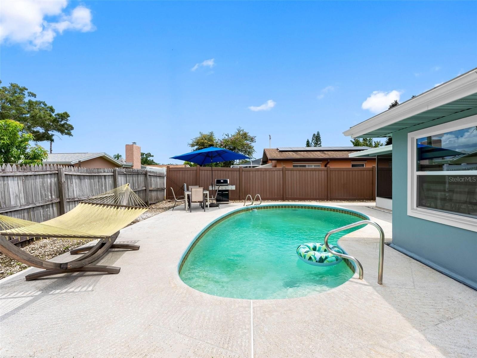 Welcome to your new home in central Clearwater . Located just a 5 minute drive from Dunedin and Safety Harbor , and a short drive to Clearwater beach . This home is fully updated . All impact windows and doors brand new roof with solar attic fan completed in 2024. The kitchen has all high end appliances panel ready Thermador refrigerator and dishwasher and also a microwave drawer and induction cooktop with built in convection oven. New washer and dryer located in the garage with an updated 200 amp electric panel. Brand new water heater! Also brand new bathrooms with massage shower in master bath and bidet seats in both bathrooms. All closets has built in shelving . The home hase 5 bedrooms, one is being used as an office right now but has a murphy bed for a guest. The home also has a huge bonus room which could be used as a gameroom or a home office or workplace. Ceiling speakers in bonus room. This home is ready to move in with gorgeous high end finishes like quartzite waterfall countertops , engineered oak wood flooring custom appliances and all wood walnut cabinetry. Pool is getting resurfaced soon, and all that unfinished will be completed shortly after. So,injoy your worry free years , at your own private pool, sipping champagne...