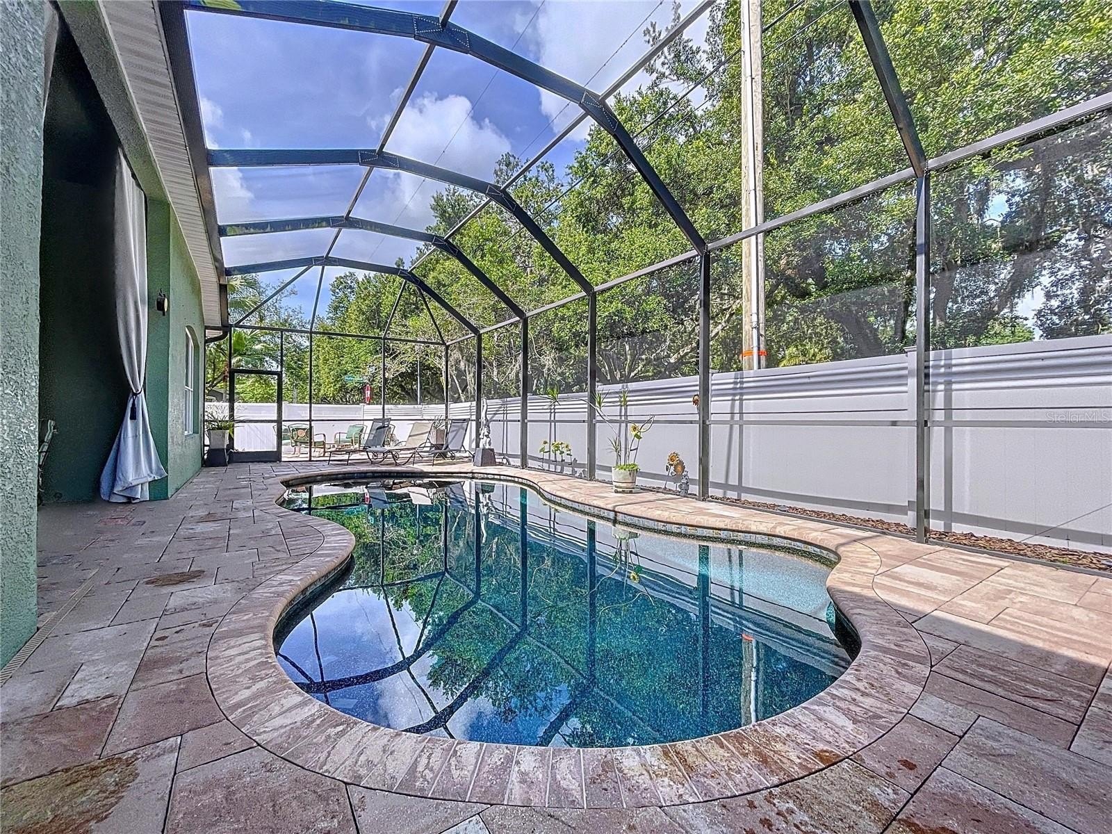 **FLASH SALE** - reduced price of $499k good through 9am Nov 10th! Welcome to your perfect retreat and FRESHLY PAINTED INTERIOR! Seller can assist with BUYING DOWN INTEREST RATE! This meticulously maintained 4-bedroom, 2-bath, 3 car garage home sits on an oversized corner lot in a quiet 40-home enclave with a peaceful community pond. Designed for both everyday comfort and exceptional entertaining, this home offers the best of Florida living—inside and out. Entertain effortlessly indoors with an open, three-way split floor plan, engineered wood and tile floors in most of the home. A chef’s dream, this welcoming kitchen is equipped with 42" cabinets, pull-out shelving, Corian countertops, gas stove, decorative backsplash, crown molding and a plant shelf with LED lighting. Whether hosting a dinner party or casual get-together, the flow between indoor and outdoor spaces is seamless—especially with the second full bath offering direct lanai access for guests. Inside, you’ll find multiple living spaces to fit every lifestyle. The large family room, with a vaulted ceiling, is the heart of the home, ideal for relaxing or hosting game nights, while the separate living room or den provides flexibility—perfect as a home office, formal sitting room, or media space. Retreat to the incredibly spacious primary suite, large enough for a king-sized bed, seating area, and more. It features a double tray ceiling, huge walk-in closet with extra ventilated shelving, and a beautifully remodeled ensuite. Step into luxury with elegant TRAVERTINE flooring accented by custom details. The SPA-LIKE BATHROOM showcases double Corian vanities, a freestanding clawfoot tub, and a stunning walk-in shower complete with body sprays and a rainfall showerhead. The three additional bedrooms are generously sized, with walk-in closets, except the fourth bedroom which has double doors – ideal for a home office. Additional highlights include a stacked 3-car garage with tons of storage, NEWER ROOF (2019), NEWER AC (2020), and water heater (2017), 2” faux blinds and ceiling fans throughout, and many smart home features. The half wall in the dining area is set up to accommodate a large aquarium for added visual interest. The outdoor space is a true showstopper, centered around a gorgeous, deep blue SALTWATER POOL with a shimmering PebbleTec finish that glistens in the sunlight. The rich color adds a resort-like feel and makes every dip feel luxurious. The pool (added in 2018) also features SOLAR HEATING, a custom quick-drain system, and smart remote access for effortless control. Whether you're enjoying a quiet morning swim or hosting a sunset pool party, this stunning feature sets the stage for relaxation and entertainment. The expansive pavered lanai and deck features a 6-PERSON SPA, FIRE PIT area, coax cable for TV, ample space for outdoor dining, and hosting unforgettable gatherings. Professionally landscaped and fully irrigated, the fenced yard completes this backyard paradise. The worry of annual maintenance has also been addressed with a recent service by HomeSmiles, taking care of the AC service, dryer vent cleaning, draining the W/H , window washing, and so much more! Located in a top-rated school district and just minutes from parks, the YMCA, shopping, dining, and with quick access to I-75 and the Crosstown Expressway to Downtown Tampa—this home checks every box. If you love to entertain and relax in style, this home is the one you’ve been waiting for!