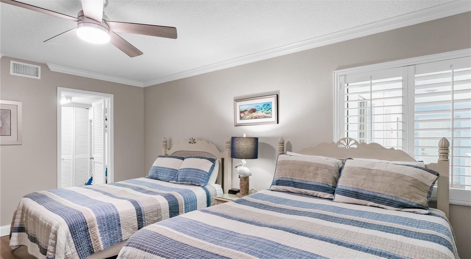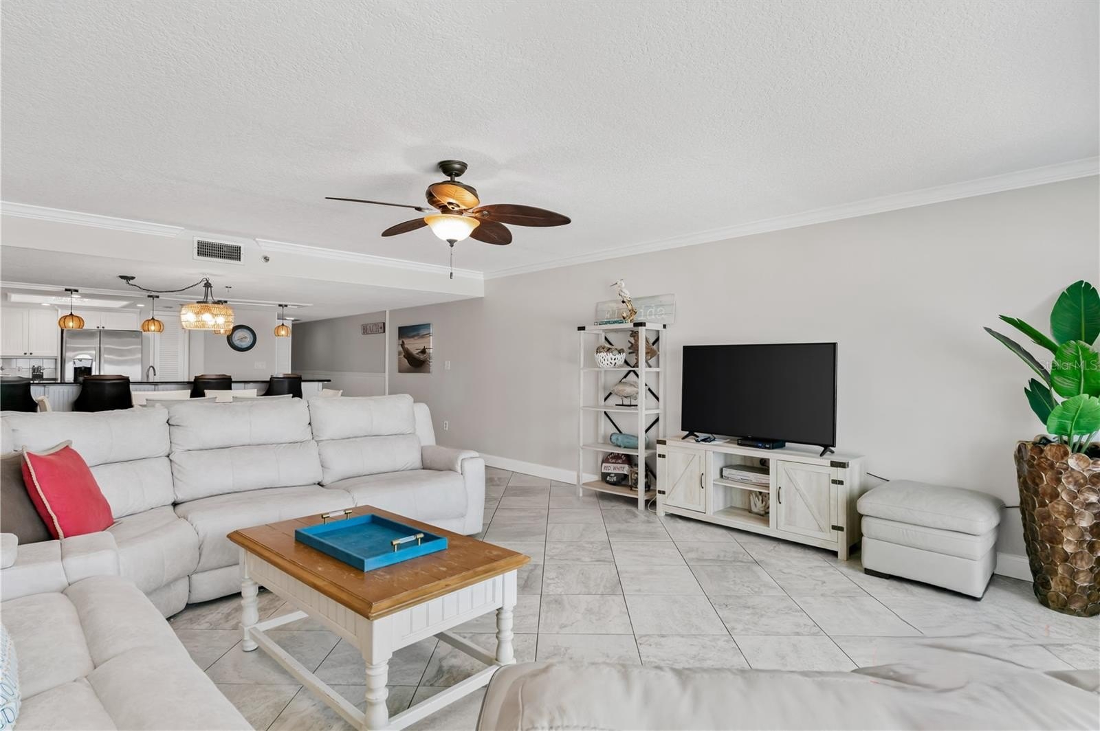 The gracious living area is tastefully decorated with new sectional that has room for the whole family! Beautifully updated kitchen with lots of cabinetry and granite counters. Updated bathrooms, Main bathroom has a walk-in shower. Large bedrooms with walk-in closets and laundry closet with newer full size side by side washer/dryer all add to its appeal.