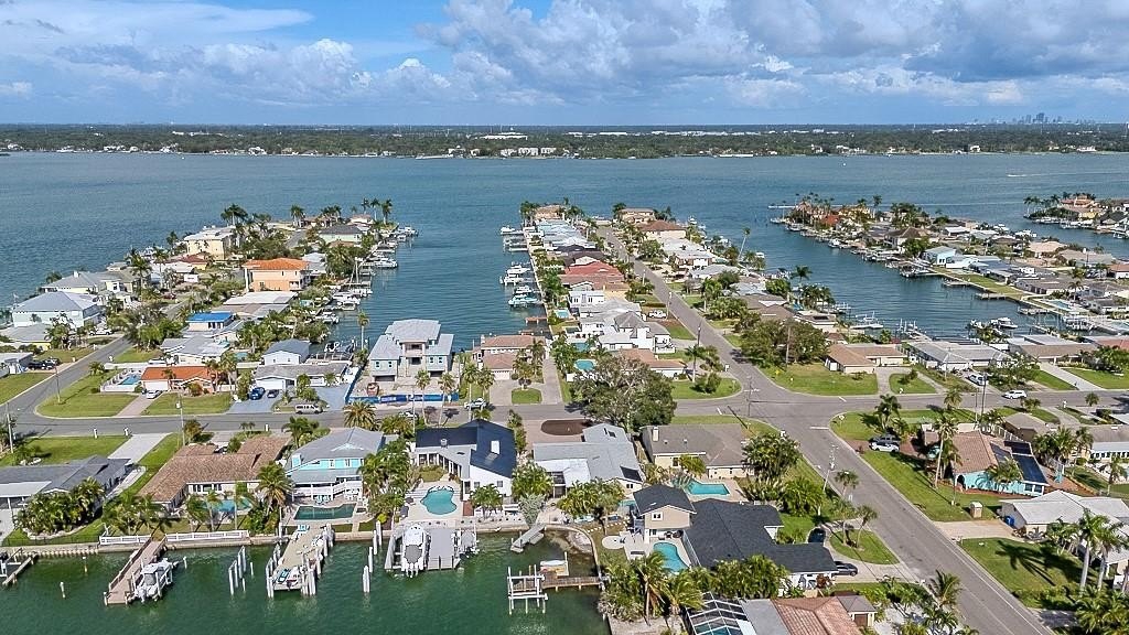 Treasure Island Canal-Front Paradise – 4BR/3BA Single Story with Pool & Dock!! Welcome to your dream waterfront home in beautiful Capri Isle in Treasure Island. This stunning one-story canal-front home offers incredible curb appeal, with a huge pavered circular driveway that provides plenty of parking for family and guests. Inside, the open-concept floorplan is designed for both comfort and entertaining, with a spacious living room that flows seamlessly into the dining and kitchen areas. The master bedroom, kitchen, dining room, and living room all enjoy views of the Intracoastal Waterway, creating a serene backdrop for everyday living. The home features four bedrooms and three bathrooms in a split floorplan design, providing privacy and flexibility for families or guests. The primary suite includes a versatile den or multi-use space and a newly renovated bathroom complete with a freestanding tub, shaker-style vanity, elegant mirror, and designer lighting. Bedroom two offers its own ensuite bathroom with a pedestal sink and standalone shower, while the guest bath includes a pedestal sink and tub/shower combination. At the heart of the home, the kitchen boasts updated shaker cabinets, quartz countertops, an undermount stainless sink, can lighting, and a skylight that fills the space with natural light. Easy-care laminate flooring runs throughout the home, enhancing its fresh, modern appeal. Outdoor living is equally impressive. A solar-heated pool with a brand-new pump (2025) includes a deep-water swim-out and is surrounded by plenty of deck space for sunbathing. A huge screened lanai with an expansive under-roof entertaining area is perfect for gatherings, while a Tiki Hut adds to the island-style atmosphere. The property’s canal frontage includes a private boat dock with direct access to the Intracoastal Waterway, making it ideal for boating, kayaking, paddleboarding, and water enthusiasts. This home has been carefully updated for peace of mind, with a new main roof in 2020, new flat roof in 2016, storm-rated windows and doors in 2021, and a brand-new AC, electrical system, and solar water heater in 2025. Located just minutes from the white sandy beaches of Treasure Island, as well as popular restaurants, shops, and attractions, this home combines waterfront living with everyday convenience. Don’t miss the opportunity to make this exceptional canal-front property your own and enjoy the best of Florida living.