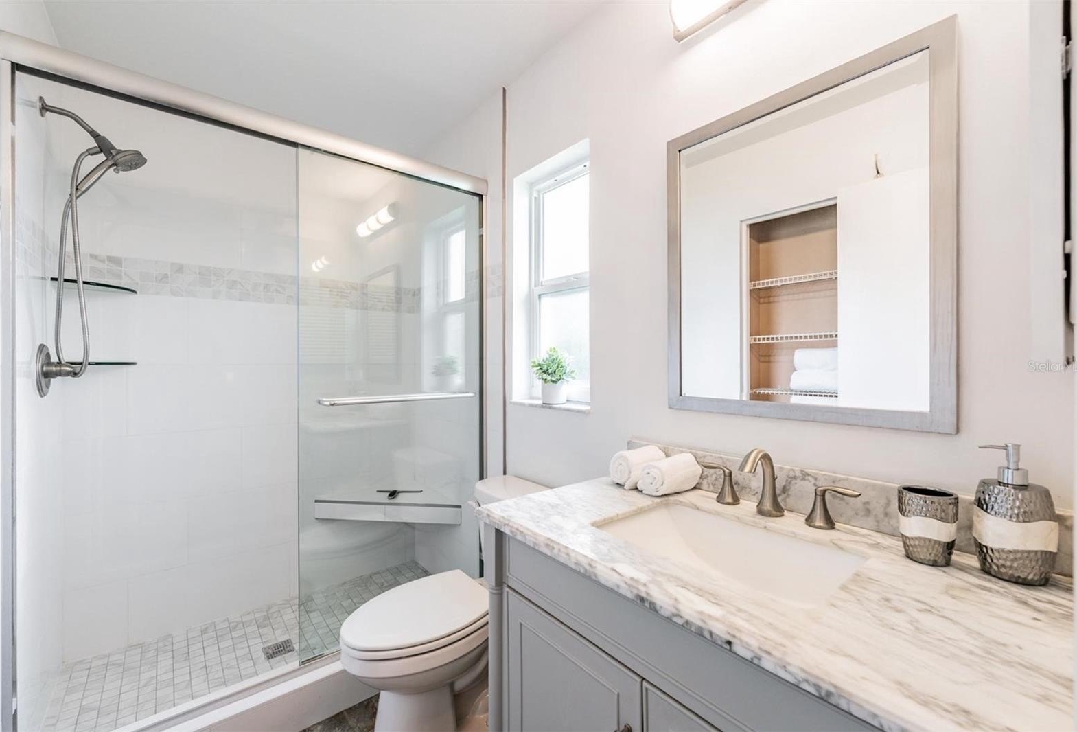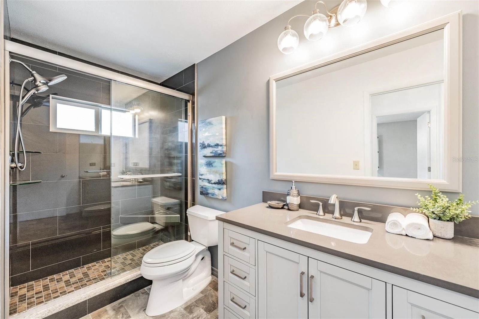 Step inside to a light and open floor plan featuring a spacious living and dining area that flows effortlessly into the fully updated kitchen. The kitchen showcases granite countertops, soft-close cabinetry, stainless steel appliances, and a breakfast bar, perfect for casual dining or entertaining. The adjoining dining nook offers a sunny spot to enjoy morning coffee. Both bedrooms are generously sized, with the primary suite offering a beautifully updated en-suite bath complete with a sleek vanity, modern fixtures, and a glass-enclosed walk-in shower. The second bath has also been tastefully remodeled with neutral finishes and a quartz countertop. Additional highlights include wood-look tile flooring, a spacious walk-in closet, an indoor laundry room with extra shelving, and a screened lanai overlooking the peaceful backyard, ideal for relaxing with friends or enjoying Florida’s year-round sunshine. Recent updates include impact windows (2023), roof (2019), Centricon termite system, and updated bathrooms for peace of mind and style. Ideally located near award-winning Gulf beaches, top-rated restaurants and shopping, world-class healthcare, major sports venues, and two international airports, this home offers the perfect combination of comfort, convenience, and resort-style living.Highland Lakes provides numerous amenities, including three Executive 9-hole golf courses, a Clubhouse with a heated Olympic-size pool and spa, tennis courts, bocce, pickleball, shuffleboard, and fitness classes. Residents can engage in various clubs and social events, or unwind by the pool at the Lodge on Lake Tarpon, or explore the Pontoon Touring Boats. Schedule a viewing today to experience this beautiful home!