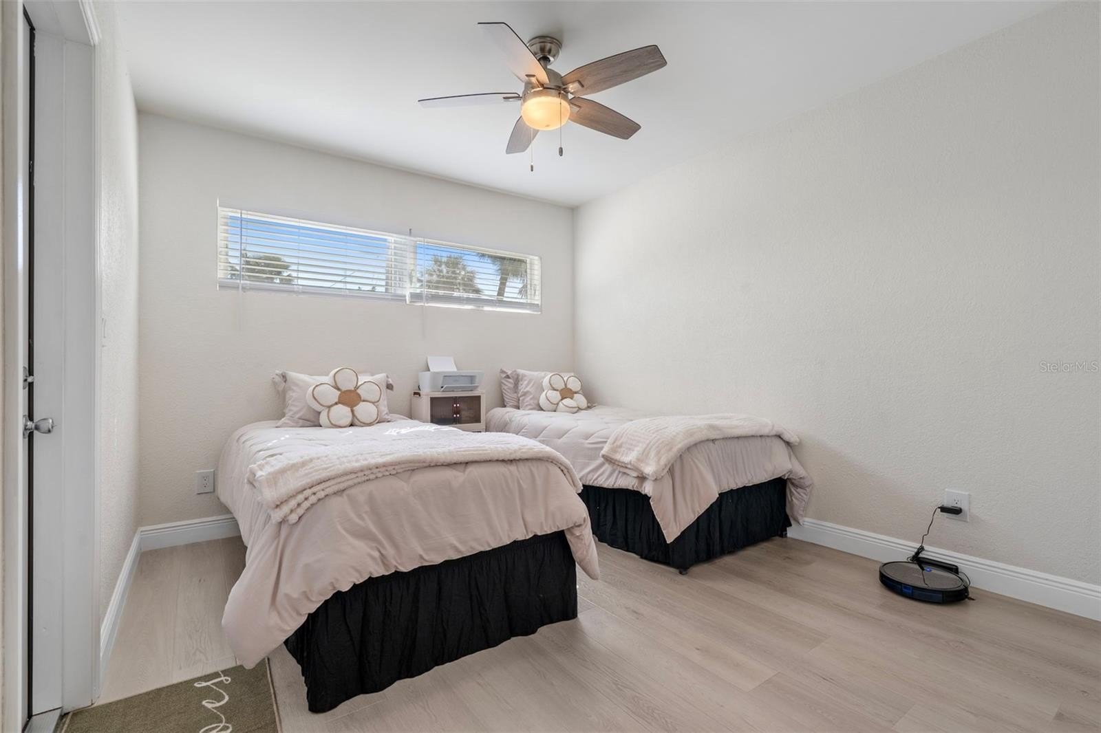 The primary suite opens to a private, fenced paver patio with an outdoor shower, creating your own secluded spa-like escape. The remodeled bathroom features designer finishes and a glass enclosed shower, while brand-new exterior doors and GARRISON HAMMERHEAD FLOOD BARRIERS (approx. $30K value) offer peace of mind and premium protection.