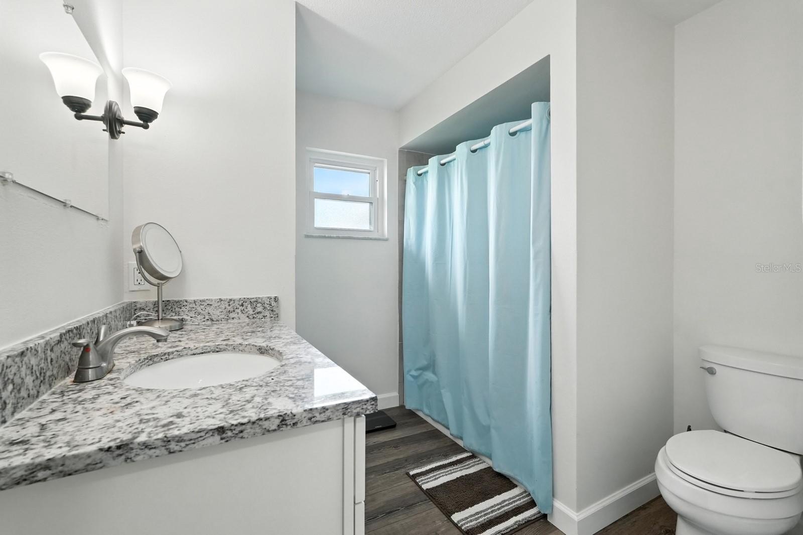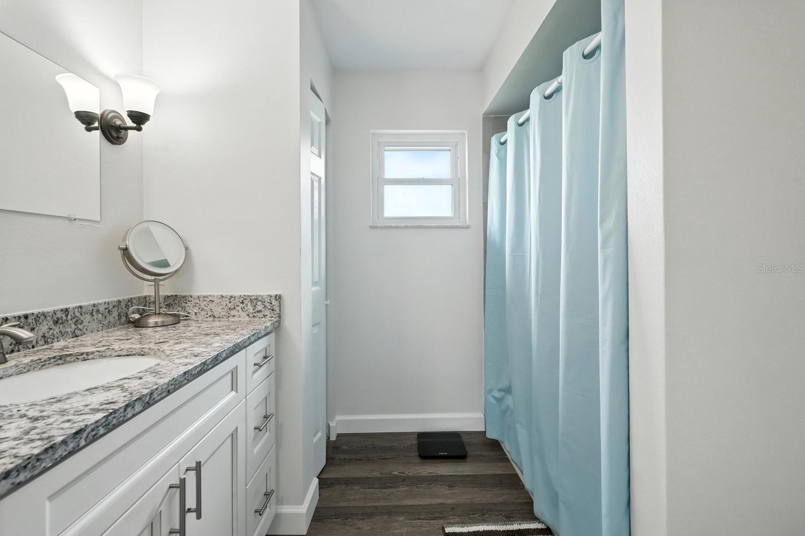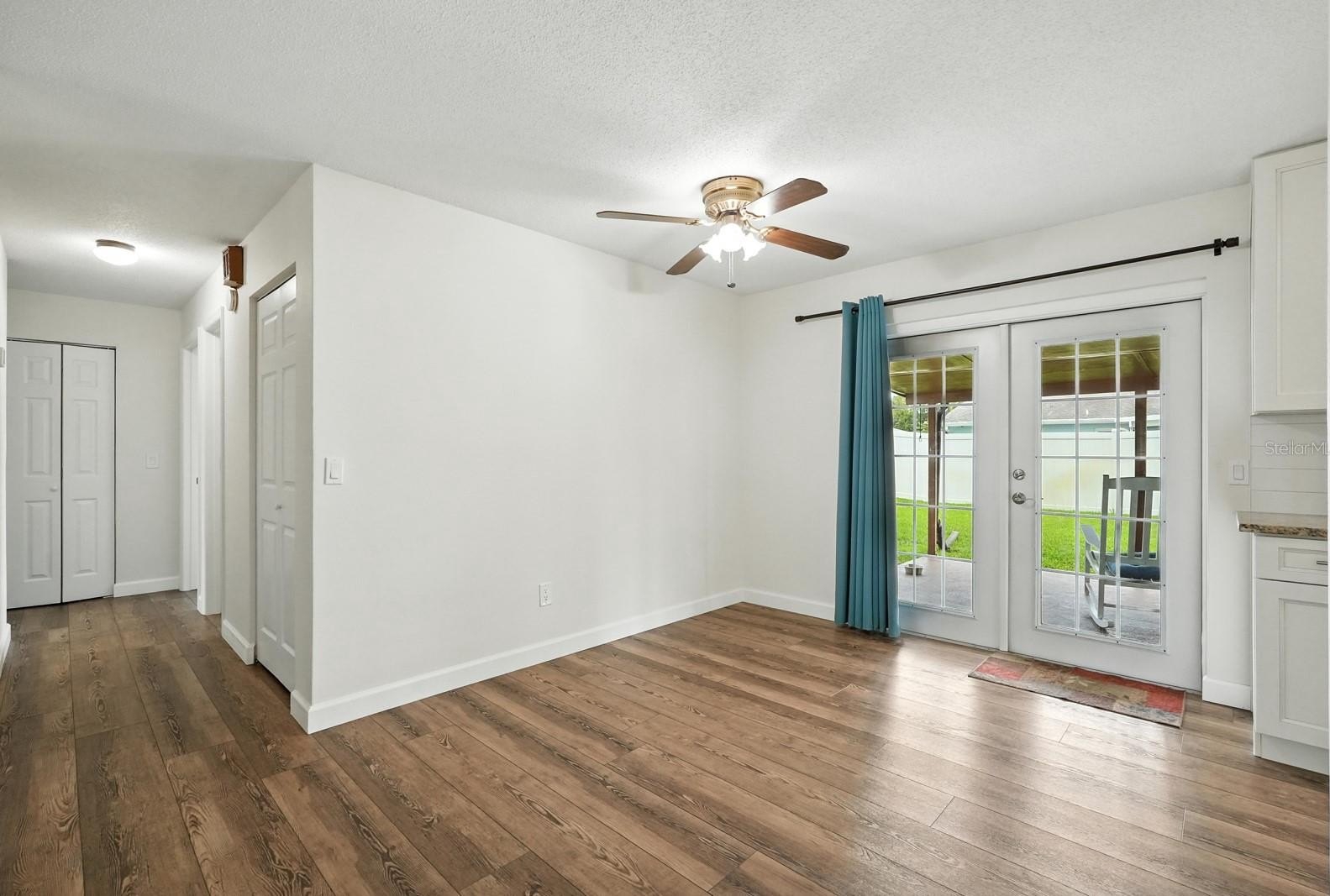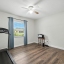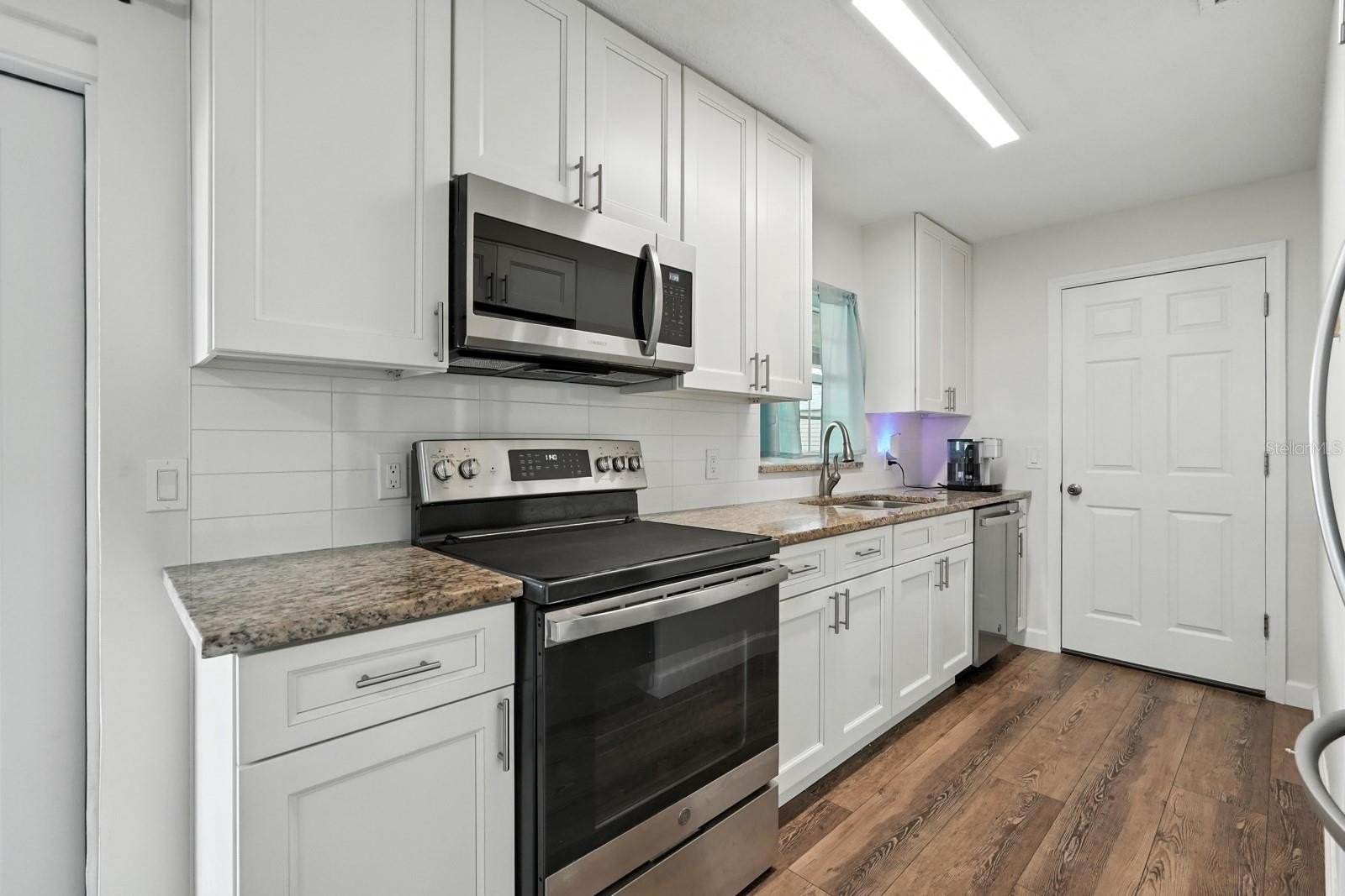 The living and dining areas blend effortlessly to create a warm and welcoming space perfect for relaxing or entertaining. A stylish galley kitchen offers sleek cabinetry, modern appliances, and plenty of counter space to make meal prep a breeze.
