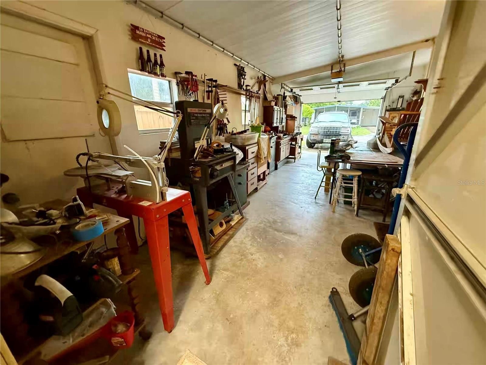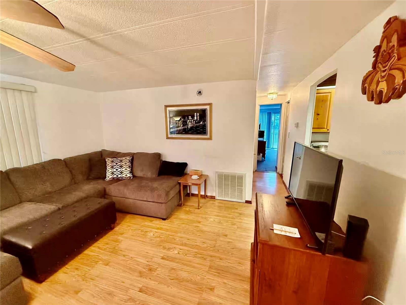 Discover Florida living at its best with this fully furnished 2-bedroom, 2-bath mobile home perfectly positioned on a private waterfront lot, and best of all, NO HOA and NO LOT RENT! Just bring your toothbrush! Enjoy peace of mind with a 2018 roof, 1 car garage, a fantastic large workshop with tools included, no known history of flooding, and a new 6-ft privacy fence. Whether you're looking for a primary residence, seasonal retreat, or a short-term rental investment, this property offers incredible potential. The former back decking was removed, providing a clean slate for the next owner to design their ideal outdoor space overlooking the water. Please note: Due to the age of the home (1973), this property is being offered as a cash-only purchase. That said, you'll be pleasantly surprised—it does not look or feel its age.