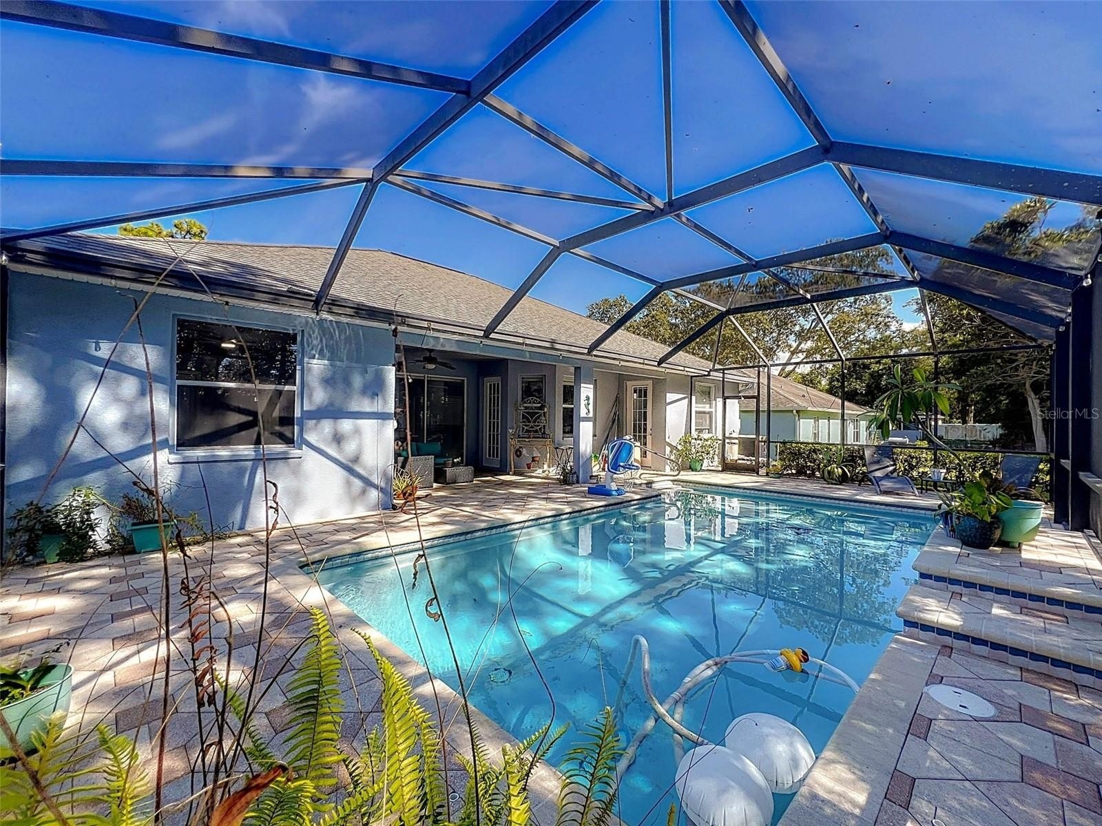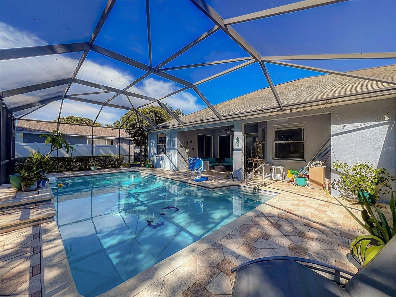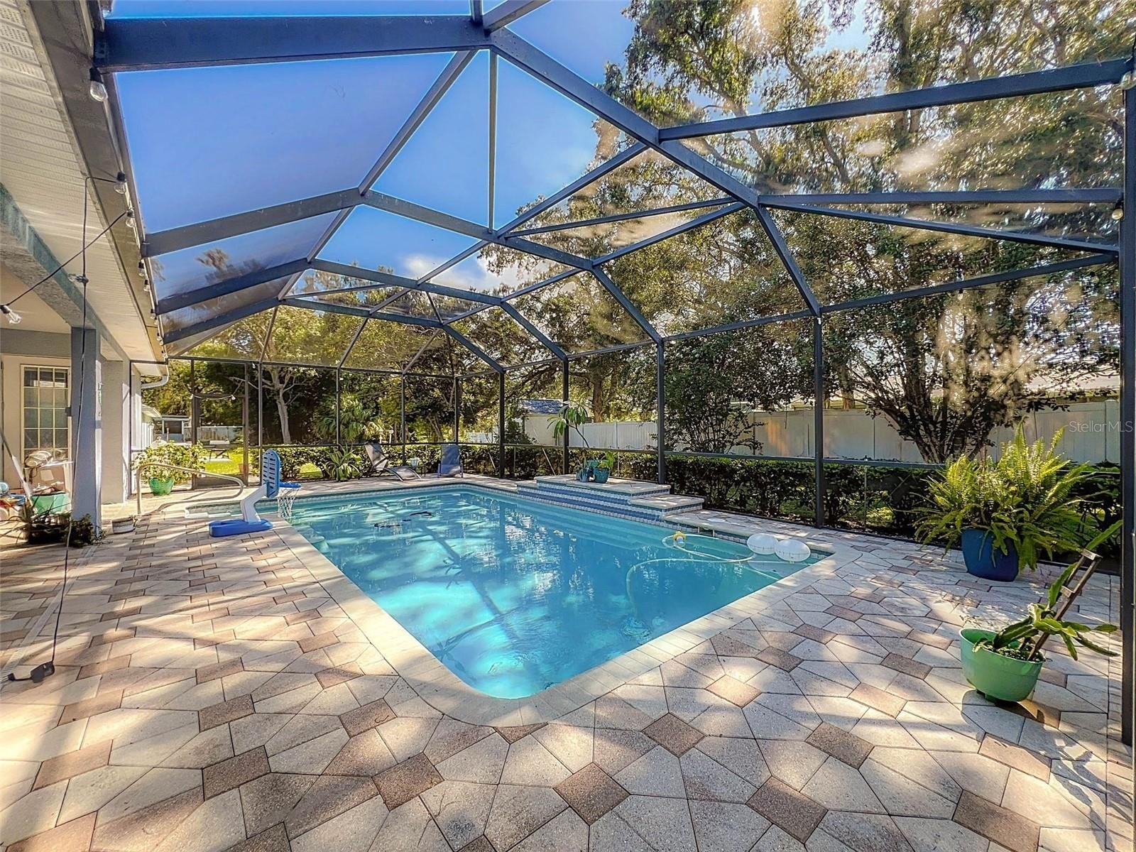 This 2006 home has been completely updated. Walk into the open floor plan and have a beautiful view through the main living space of the private pool through the large 3 pane sliding glass doors. The lanai has upgraded pavers and newer pool pump for the salt water filter. The kitchen is the heart of the home and has new quartz countertops, new sink, new fixtures and new GE appliances. Moving into the primary bedroom you will find it is quite large with an ample sized en suite bathroom. The walk in shower has been redone with upgraded tile and epoxy grout. Large walk in closet and garden tub complete the primary bathroom. On the opposite side of the home you will find 2 nicely sized guest bedrooms with walk in closets. All the light fixtures inside and out have been upgraded. There is tile throughout the home so no carpet to maintain. Some other features to point out are all new electrical outlets, new quartz counters in the bathrooms, 9 foot ceilings, nest thermostat, new smoke detectors. A new condenser and coil for the AC in Feb 2023, Exterior paint July 2025, Interior paint Aug 2025. Washer and Dryer stay with the home. New roof to be completed before closing. Don't let this one go by. Call and schedule a private showing today.