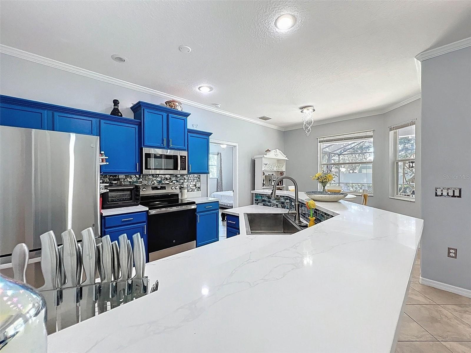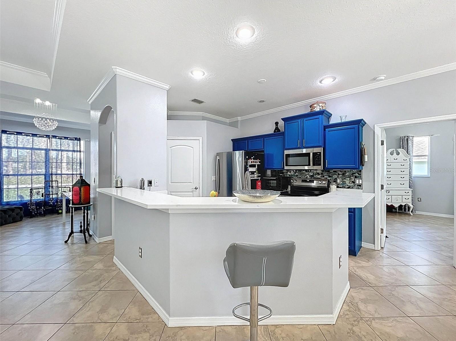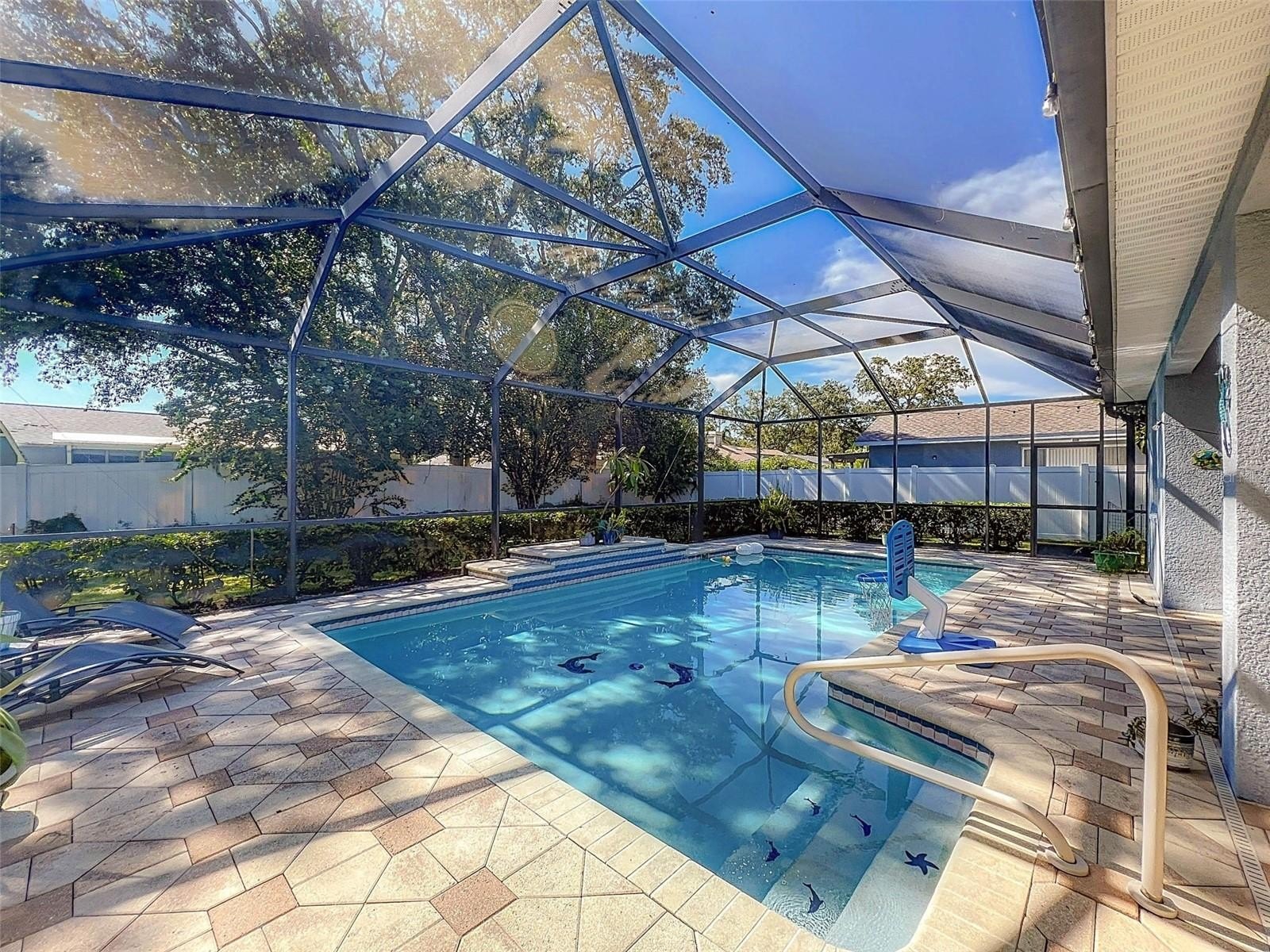 This 2006 home has been completely updated. Walk into the open floor plan and have a beautiful view through the main living space of the private pool through the large 3 pane sliding glass doors. The lanai has upgraded pavers and newer pool pump for the salt water filter. The kitchen is the heart of the home and has new quartz countertops, new sink, new fixtures and new GE appliances. Moving into the primary bedroom you will find it is quite large with an ample sized en suite bathroom. The walk in shower has been redone with upgraded tile and epoxy grout. Large walk in closet and garden tub complete the primary bathroom. On the opposite side of the home you will find 2 nicely sized guest bedrooms with walk in closets. All the light fixtures inside and out have been upgraded. There is tile throughout the home so no carpet to maintain. Some other features to point out are all new electrical outlets, new quartz counters in the bathrooms, 9 foot ceilings, nest thermostat, new smoke detectors. A new condenser and coil for the AC in Feb 2023, Exterior paint July 2025, Interior paint Aug 2025. Washer and Dryer stay with the home. New roof to be completed before closing. Don't let this one go by. Call and schedule a private showing today.