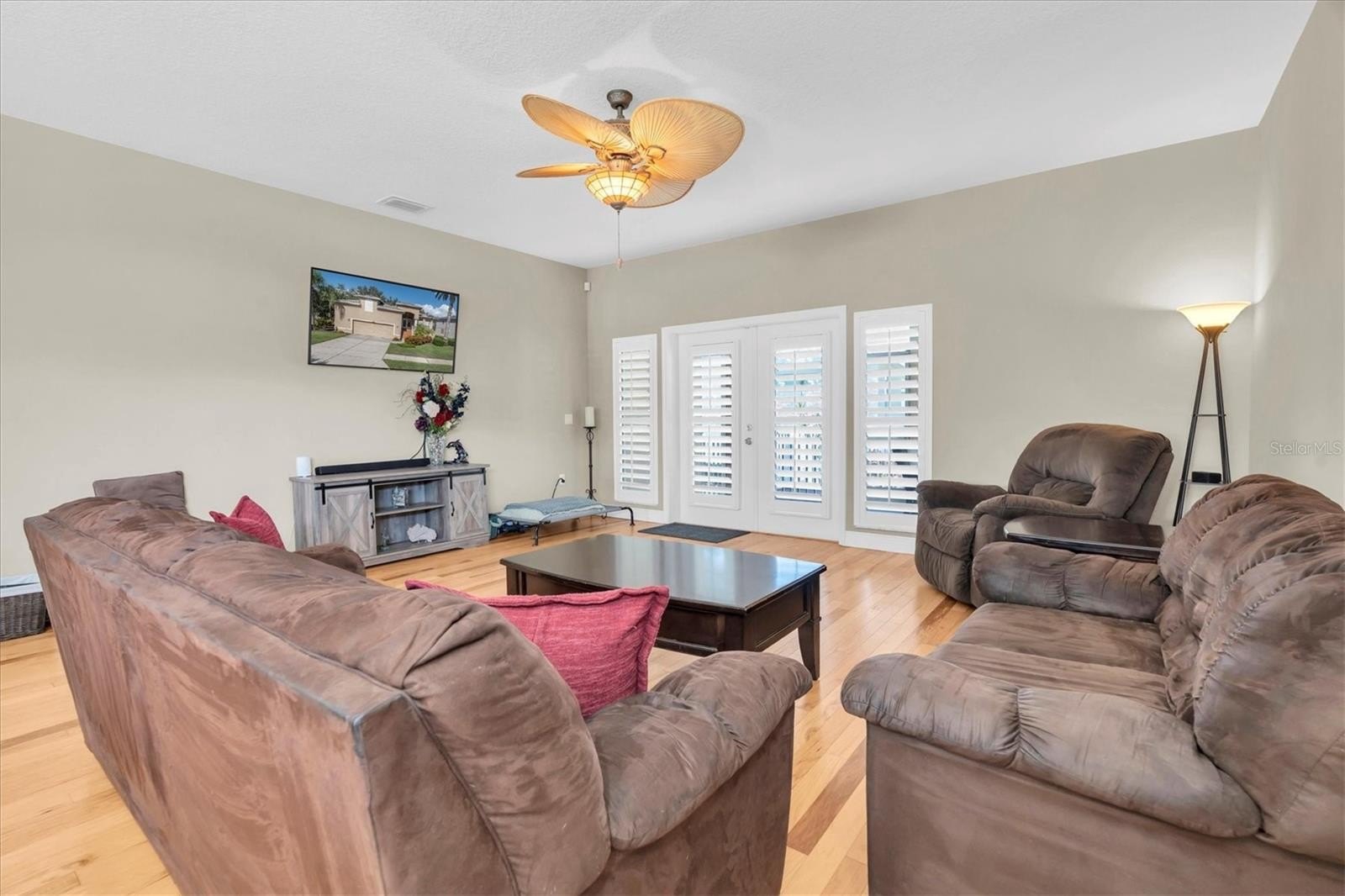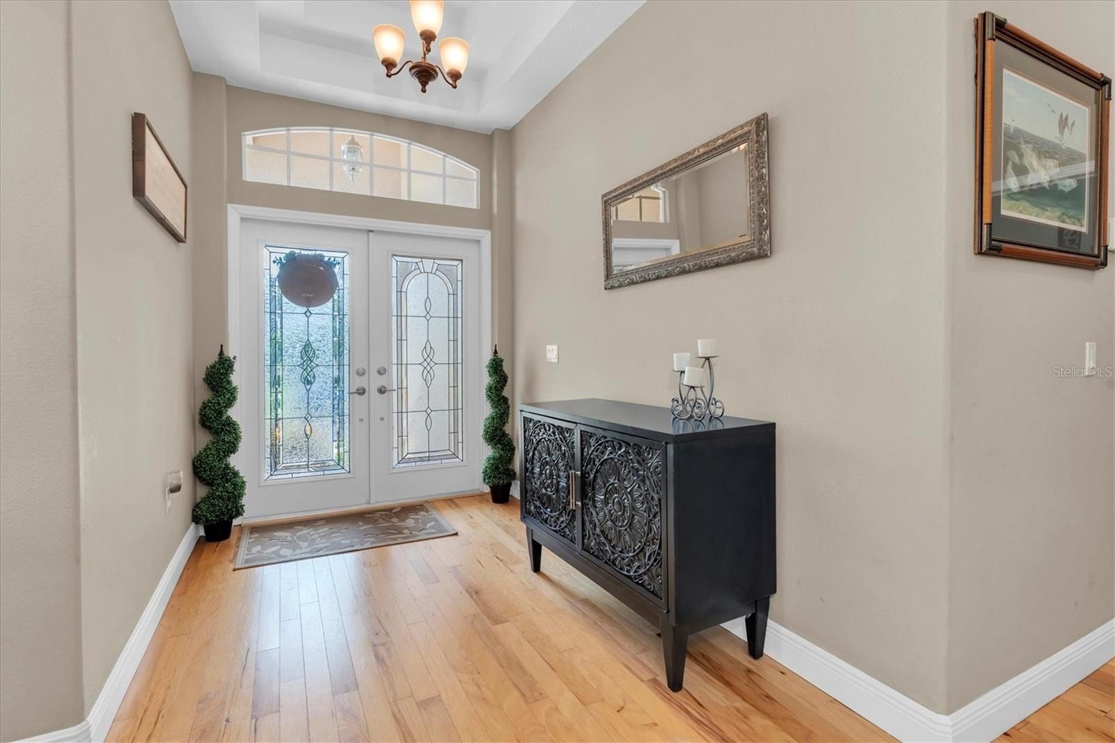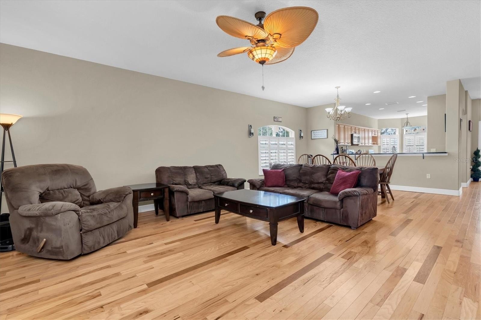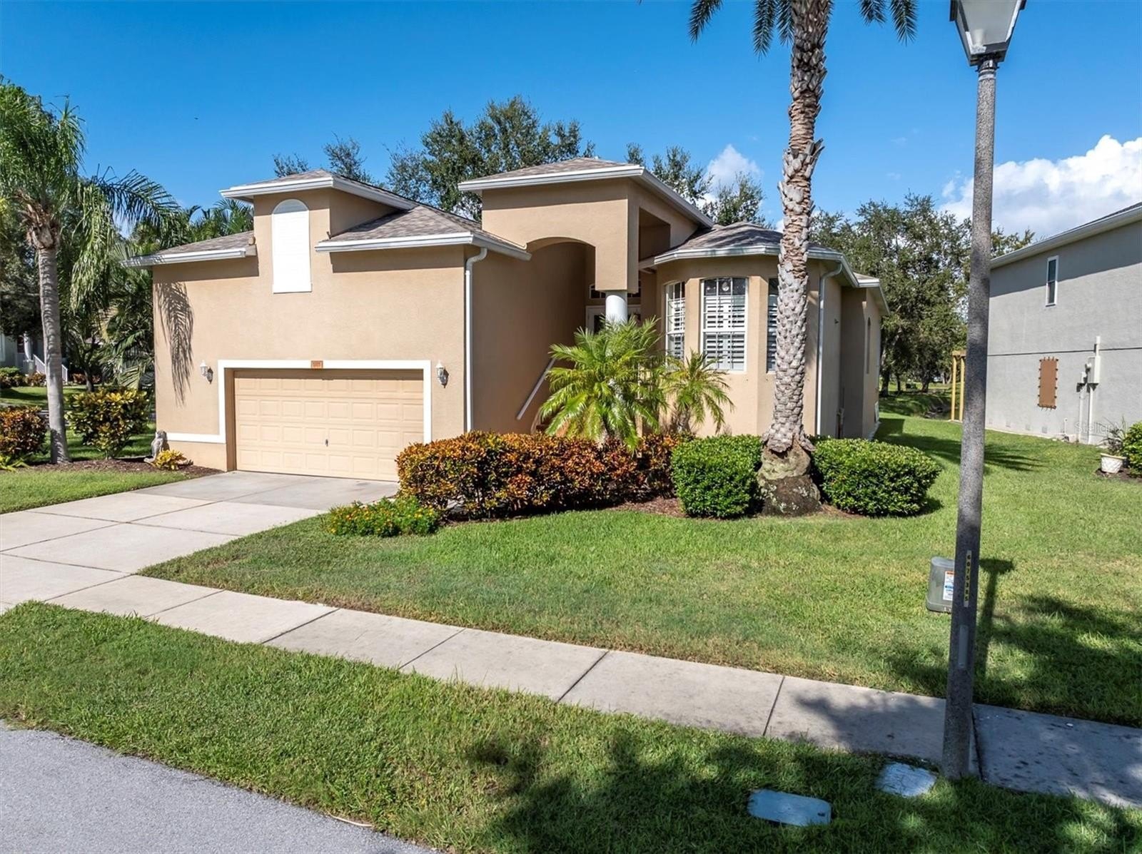 Welcome to your dream coastal home in the highly desirable Pointe Alexis South community of Tarpon Springs, Florida. This elevated 3-bedroom, 2-bathroom residence with an oversized 2-car garage sits on a beautifully landscaped corner lot with peaceful pond views and tropical surroundings. Step through the elegant double front doors into a light-filled open floor plan featuring hardwood floors, neutral paint tones, and plantation shutters throughout. An arched doorway leads into the gourmet kitchen, which offers granite countertops, stainless steel appliances, wood cabinetry, a breakfast bar, and a cozy eat-in dining nook—perfect for both everyday living and entertaining.