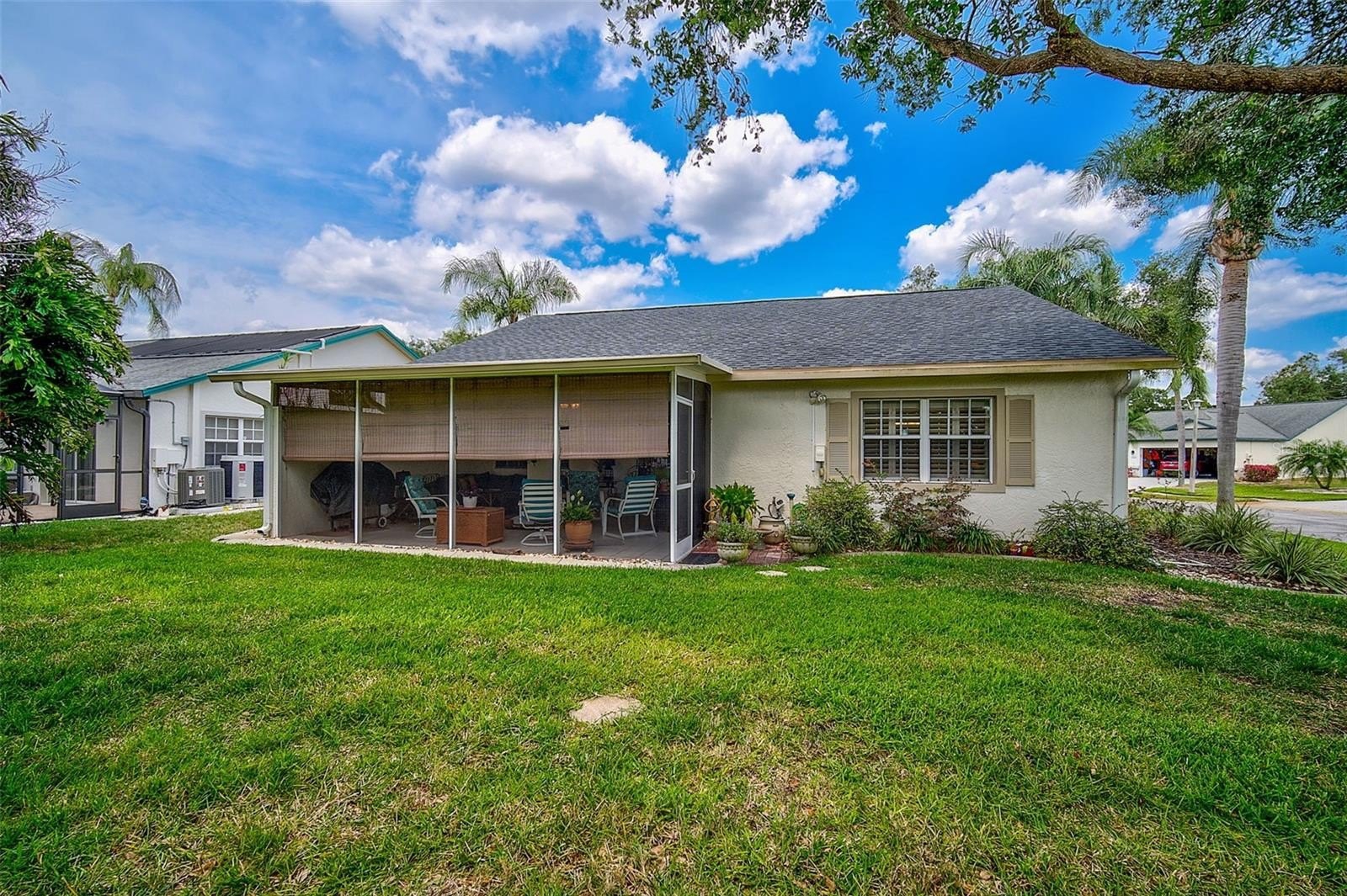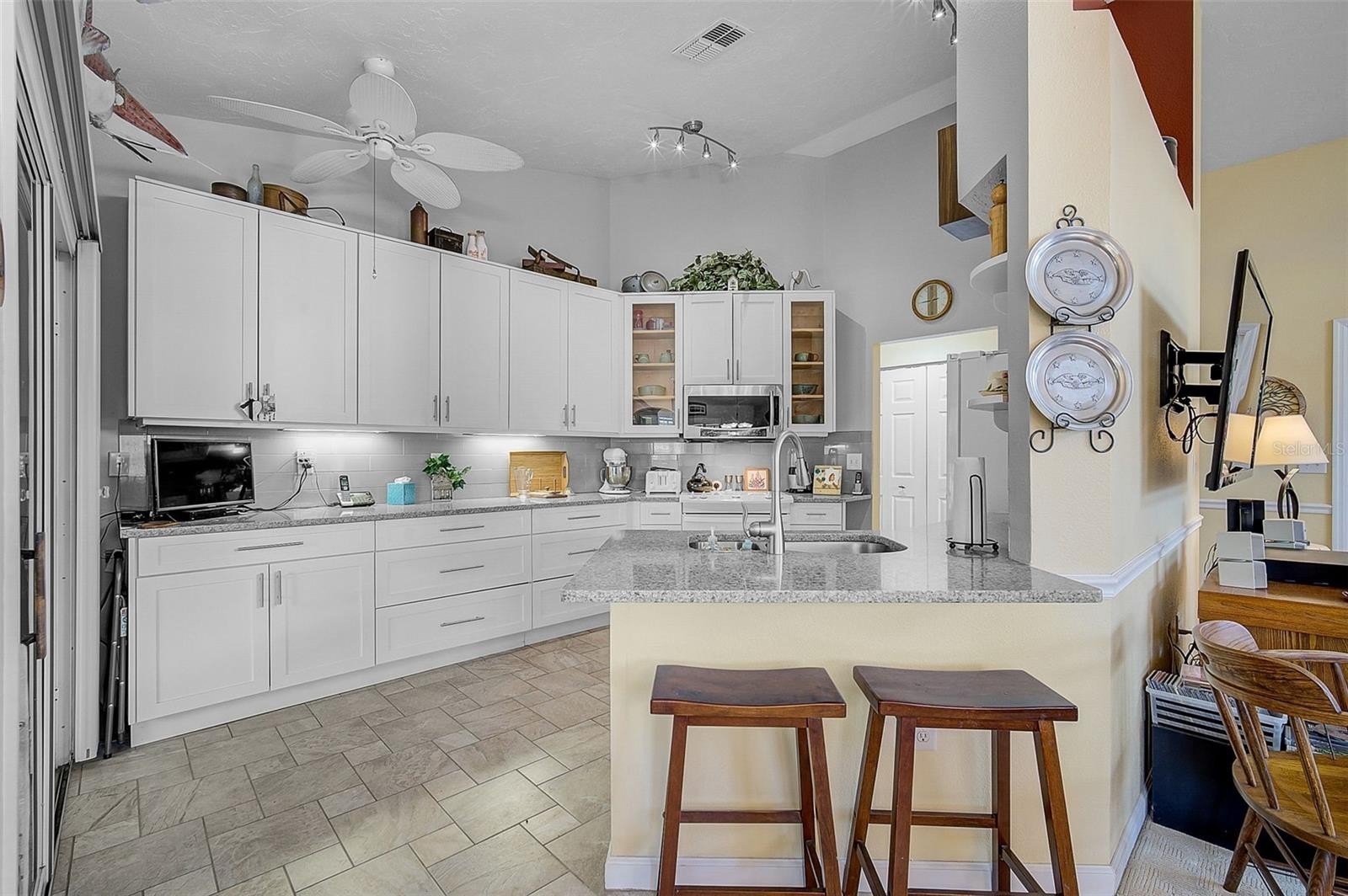 Stylish, low-maintenance living awaits in this beautifully maintained 1,756 sq. ft. Patio Home featuring 2 bedrooms, 2 bathrooms, and a flexible den—perfect for a home office, guest room, or creative space. Situated on a desirable corner lot, the home greets you with a stylish glass entry door and opens into a bright, inviting interior with high ceilings, plantation shutters, and abundant natural light. The updated kitchen features granite countertops, tall cabinetry, track lighting, and a spacious pantry, flowing seamlessly into the open living and dining areas—ideal for both everyday living and entertaining. The primary suite includes a walk-in closet and en-suite bath with dual sinks and a large walk-in shower. Step outside to enjoy peaceful mornings or relaxing evenings on the oversized screened lanai. New roof 2022 and new A/C 2020. Residents of Peridia Golf & Country Club enjoy a vibrant lifestyle with access to an 18-hole executive golf course, tennis and pickleball courts, on-site dining, live music, social events, and more. Conveniently located near shopping, restaurants, Gulf beaches, and SRQ airport. Fees: One-time capital reserve of $4,000, quarterly yard maintenance $329, quarterly master association $877, annual food & beverage minimum $450, and a one-time application fee of $200.