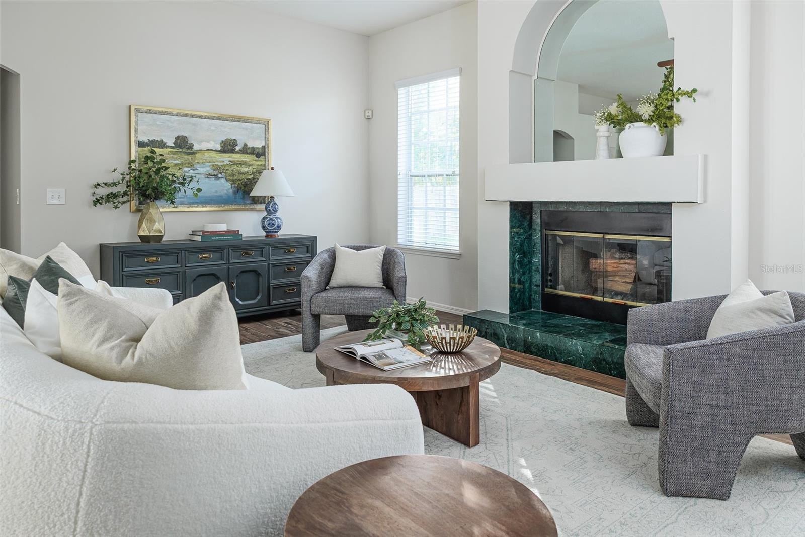 Welcome to 672 Jessanda Circle, a beautifully maintained home in the gated Lakeland Highlands community. This spacious four-bedroom, two-bath pool home offers over 2,200 square feet of living space with a thoughtful split-bedroom floor plan that provides both privacy and functionality. The open layout is perfect for family living and entertaining, featuring a cozy wood-burning fireplace, wood tile, and comfortable finishes throughout.