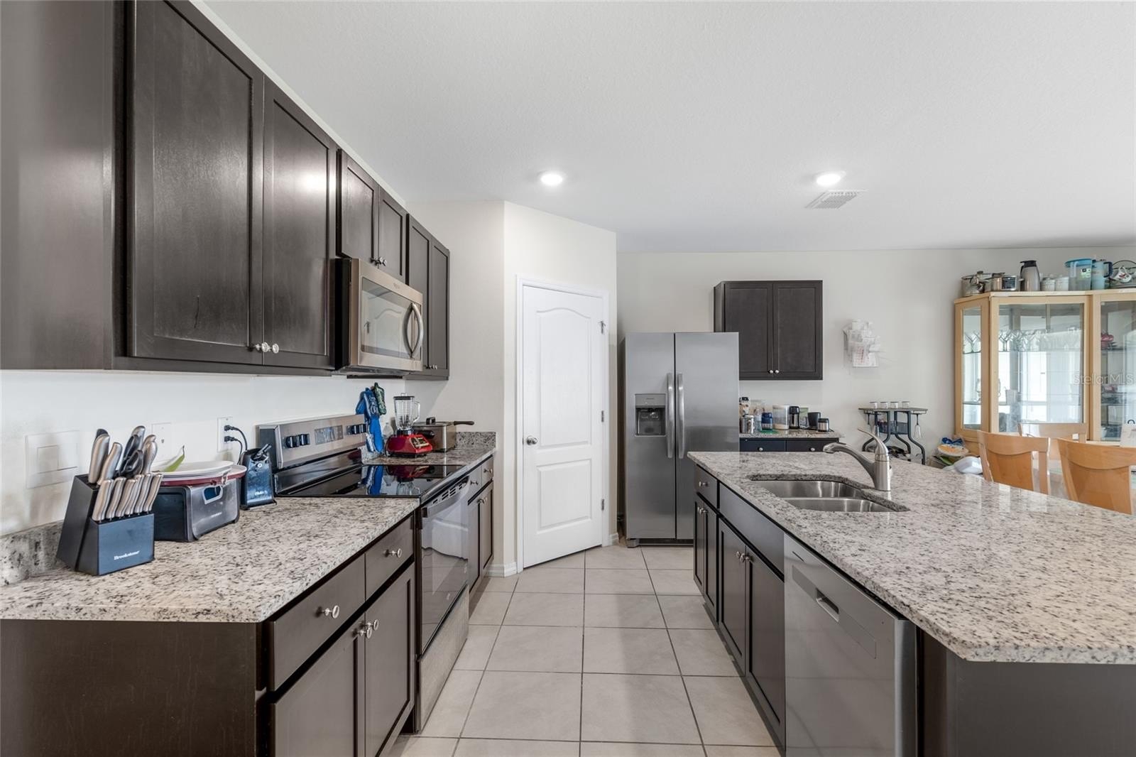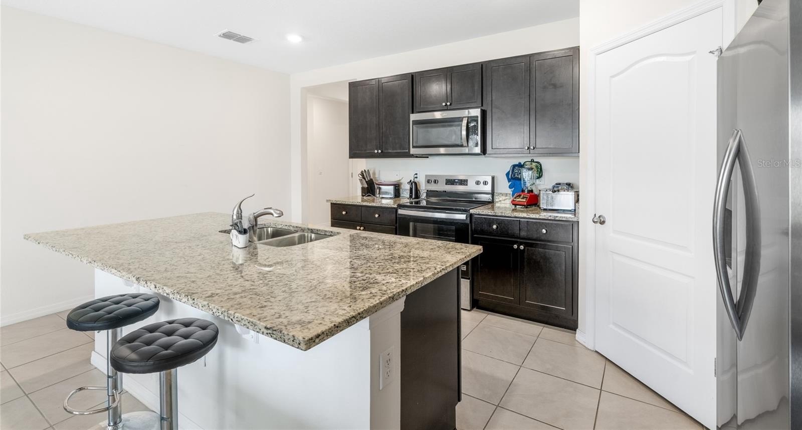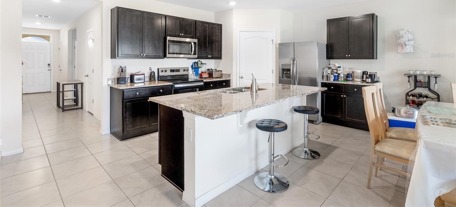 Price Reduced and ready to sell! This one story 4 bedroom, 2 bath home with a 2 car garage is almost 1900 sq. ft and is one of DR Horton's most popular floor plan - The Cali. It offers an open layout connecting the living room, dining room, and kitchen but separates the bedrooms for residents space and privacy. The central kitchen features granite counters, stainless-steel appliances, a walk-in pantry and an oversized island with a breakfast bar great for casual meals and entertaining. Tile flooring throughout except the bedrooms. Enjoy the benefits of modern construction with builder's smart home package and structural warranty. Hammock Reserve is a sprawling suburban community boasting a community pool, playground and cabana, and multi purpose play fields.This area offers small town charm with big-city access—Haines City sits between Tampa and Orlando and is minutes from Disney, Lego Land, Lake Lowery for boating, fishing, and kayaking, and the gulf beaches.
