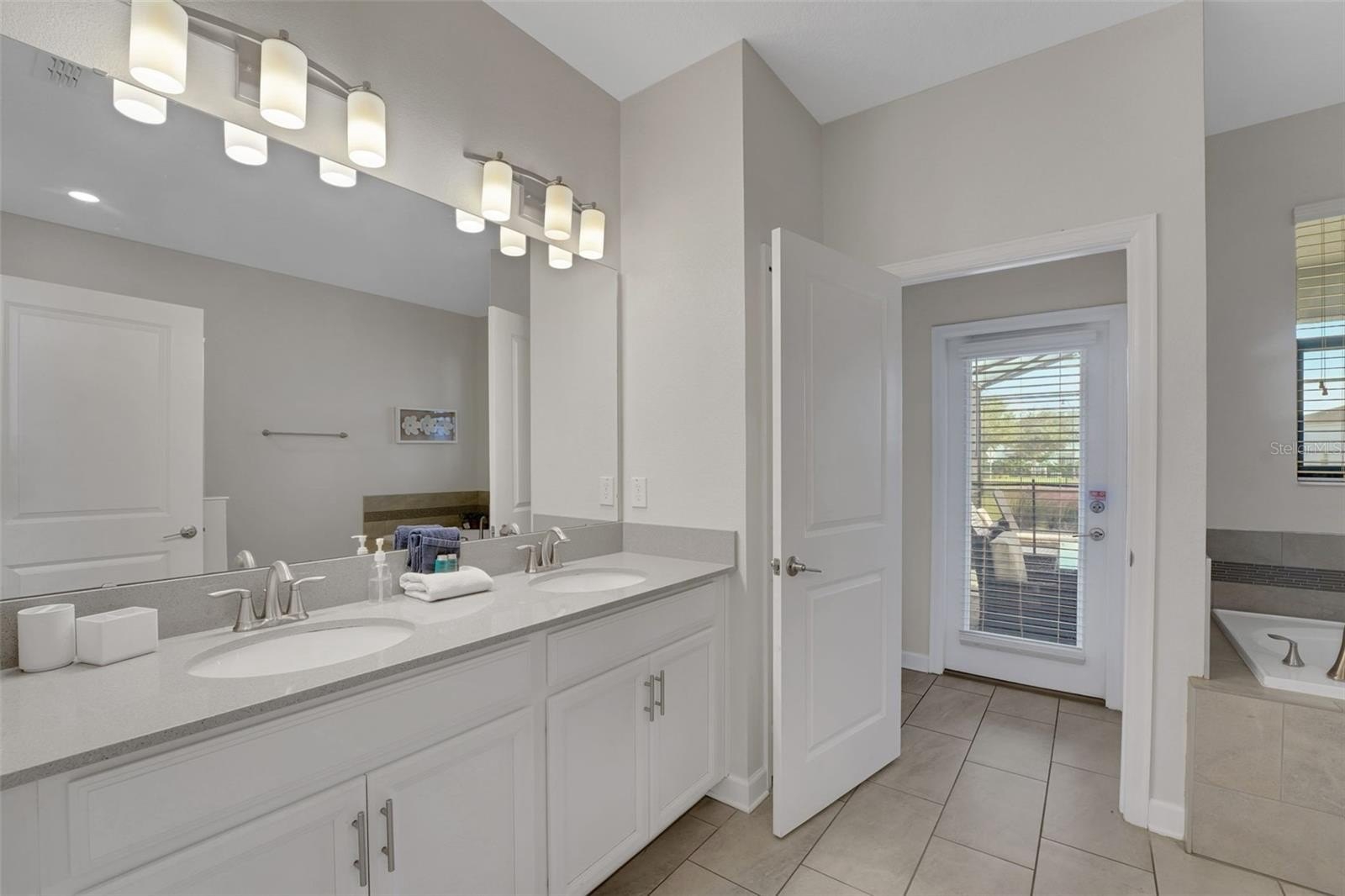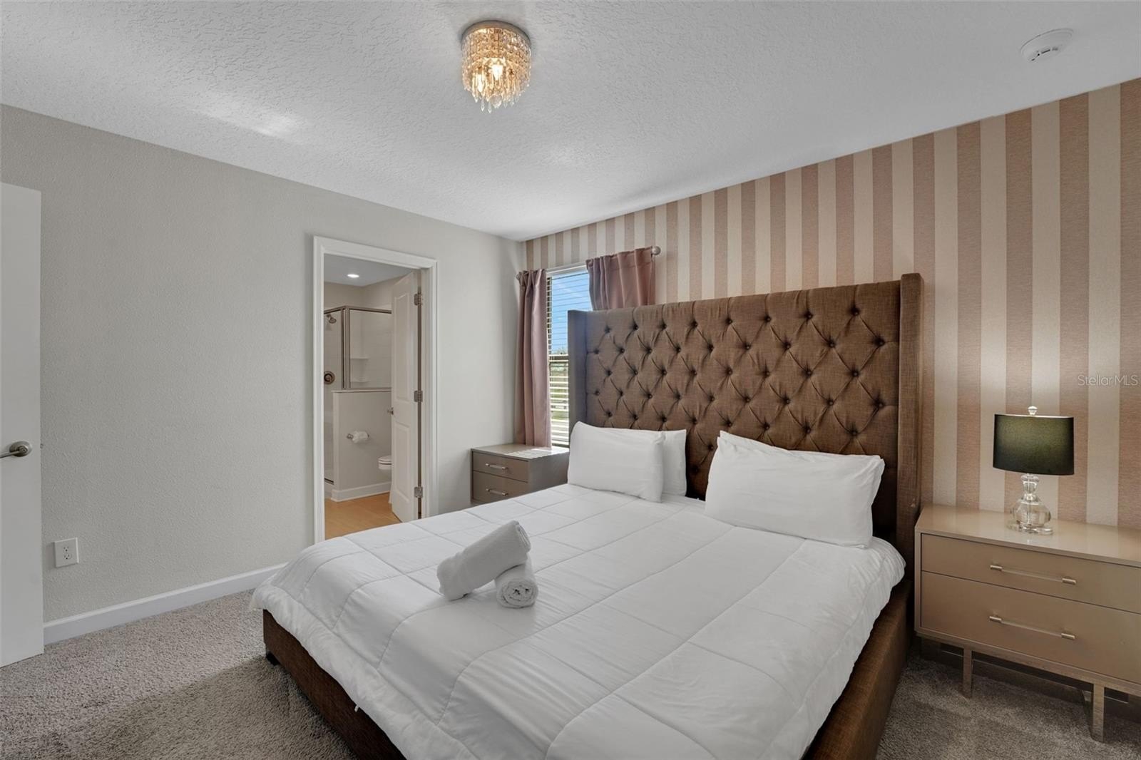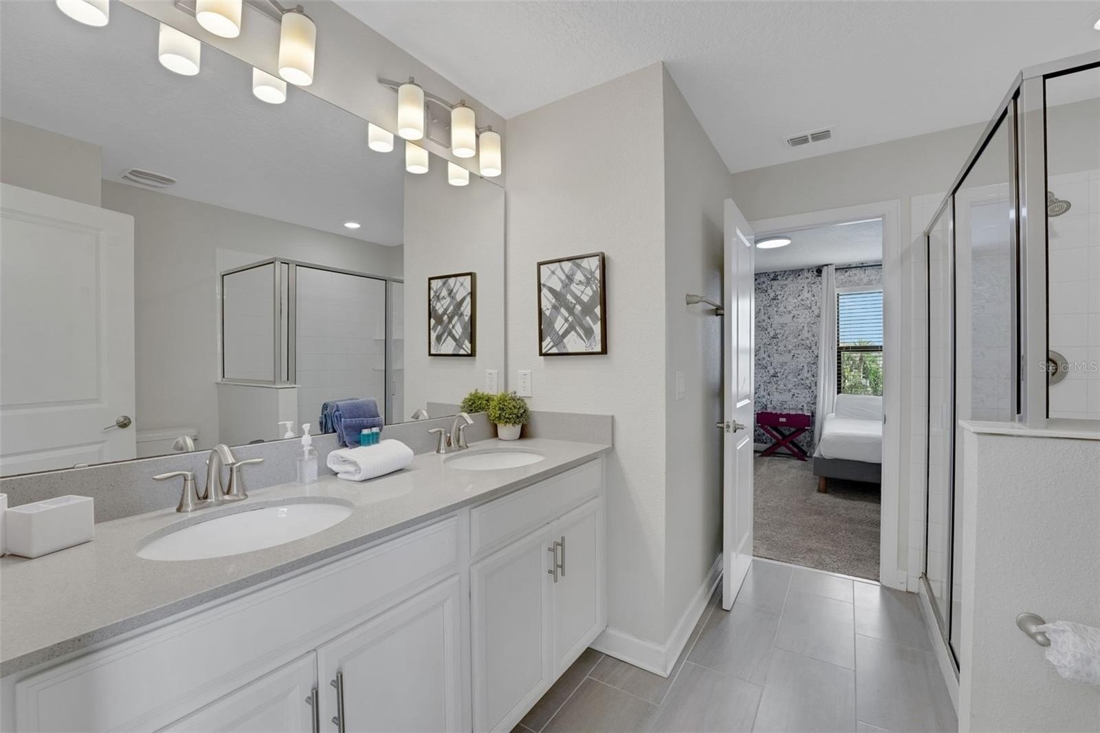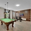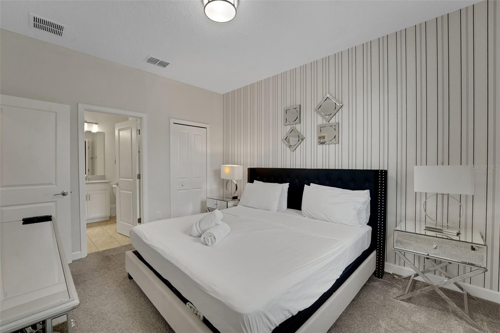 The primary suite on the first floor offers a peaceful place to rejuvenate, complete with a soaking tub, walk-in shower, and dual vanities. A second bedroom downstairs adds comfort for guests, while the interactive game room brings the spirit of play to life, featuring a pool table, foosball, air hockey, TV, Gaming Console and chairs.
