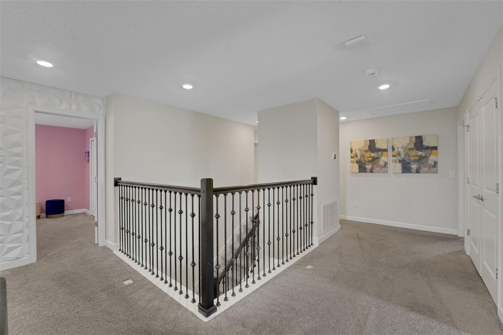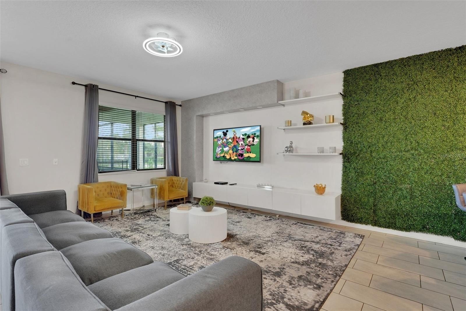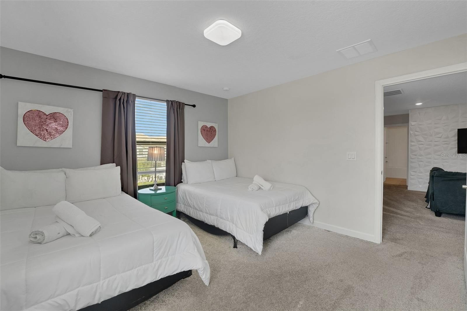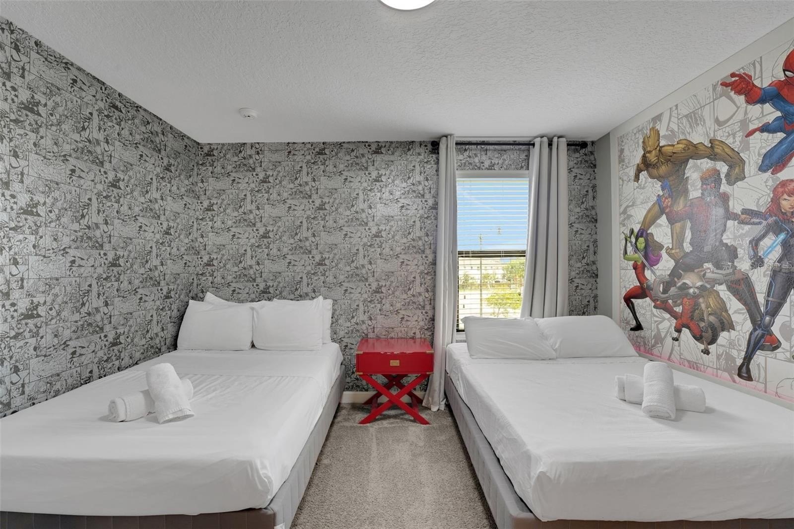 Upstairs, the home leans into imagination and delight. A Disney Princess room, a Mickey room, and an Avengers room bring joy and surprise at every turn—spaces guests remember and return for. The remaining bedrooms are designed with calm, comfort, and rest in mind. A loft lounge provides room to relax, and the media room has been transformed into a true home theater with theater-style seating.