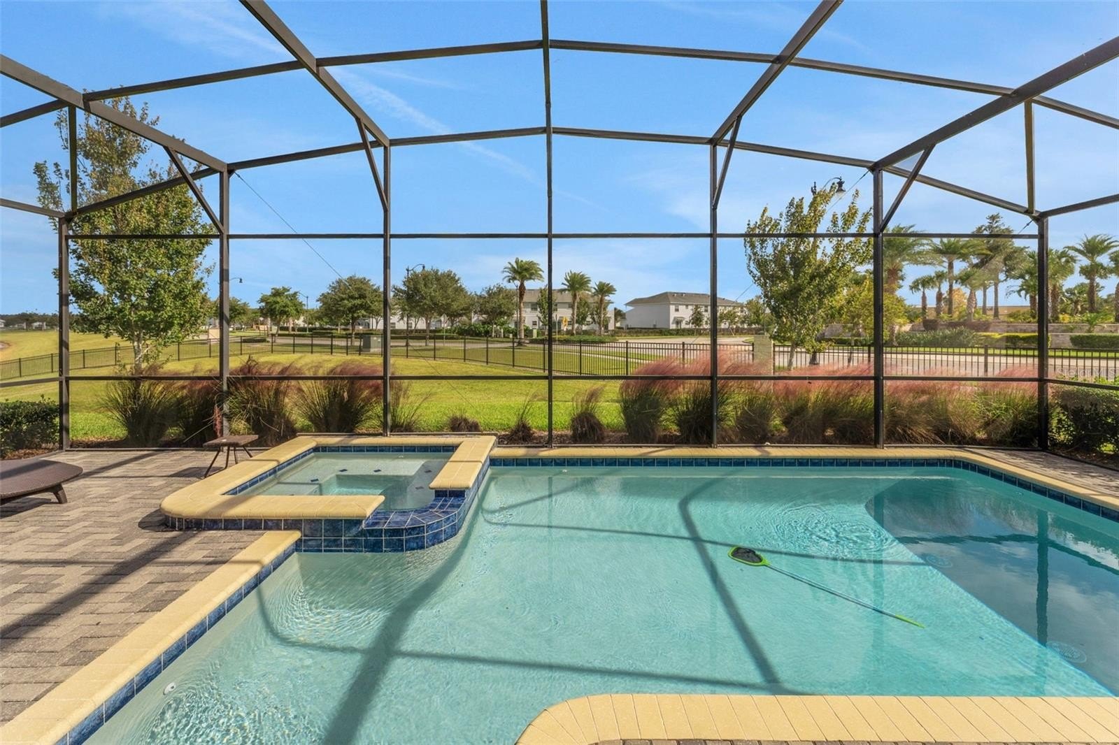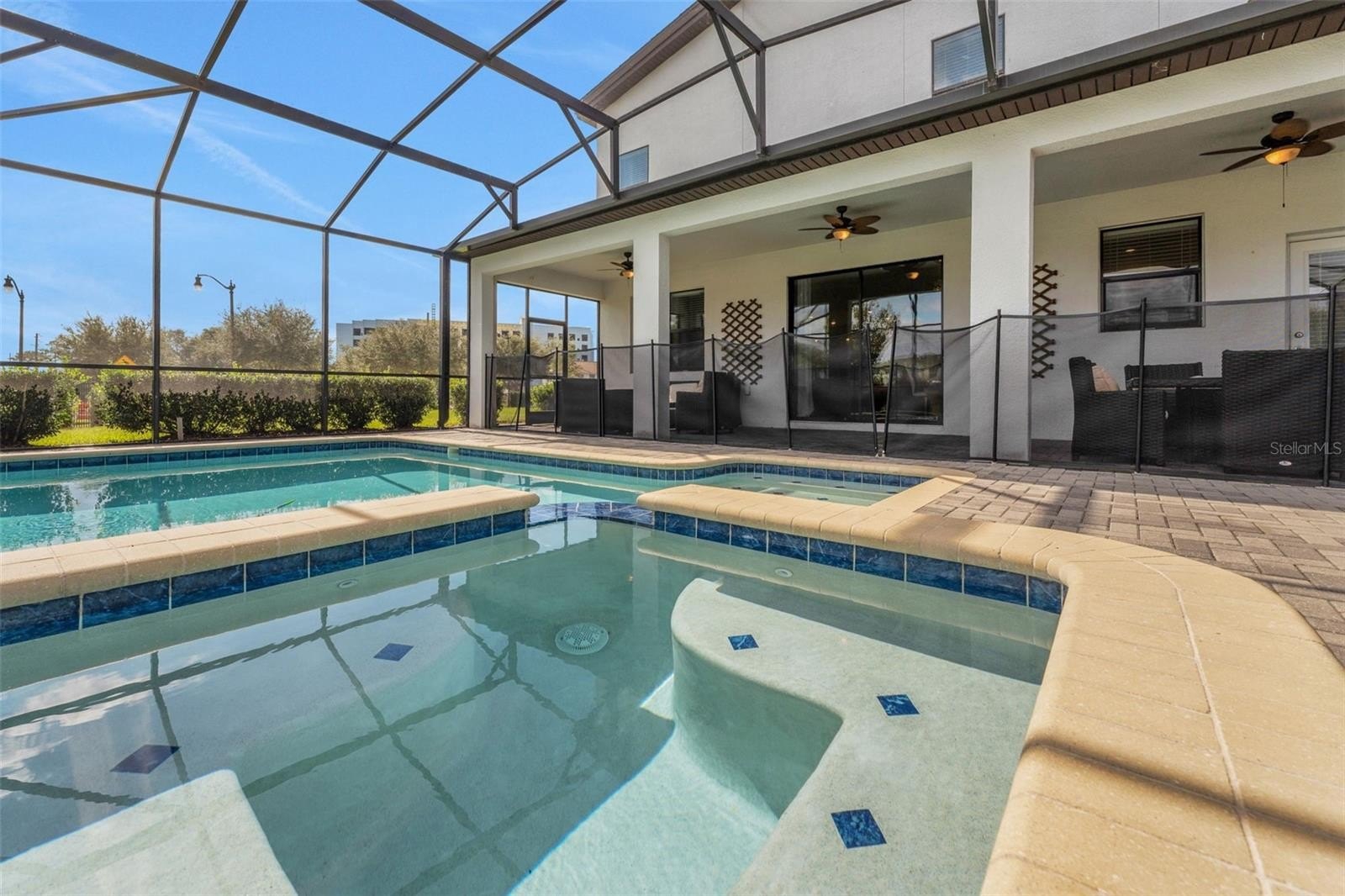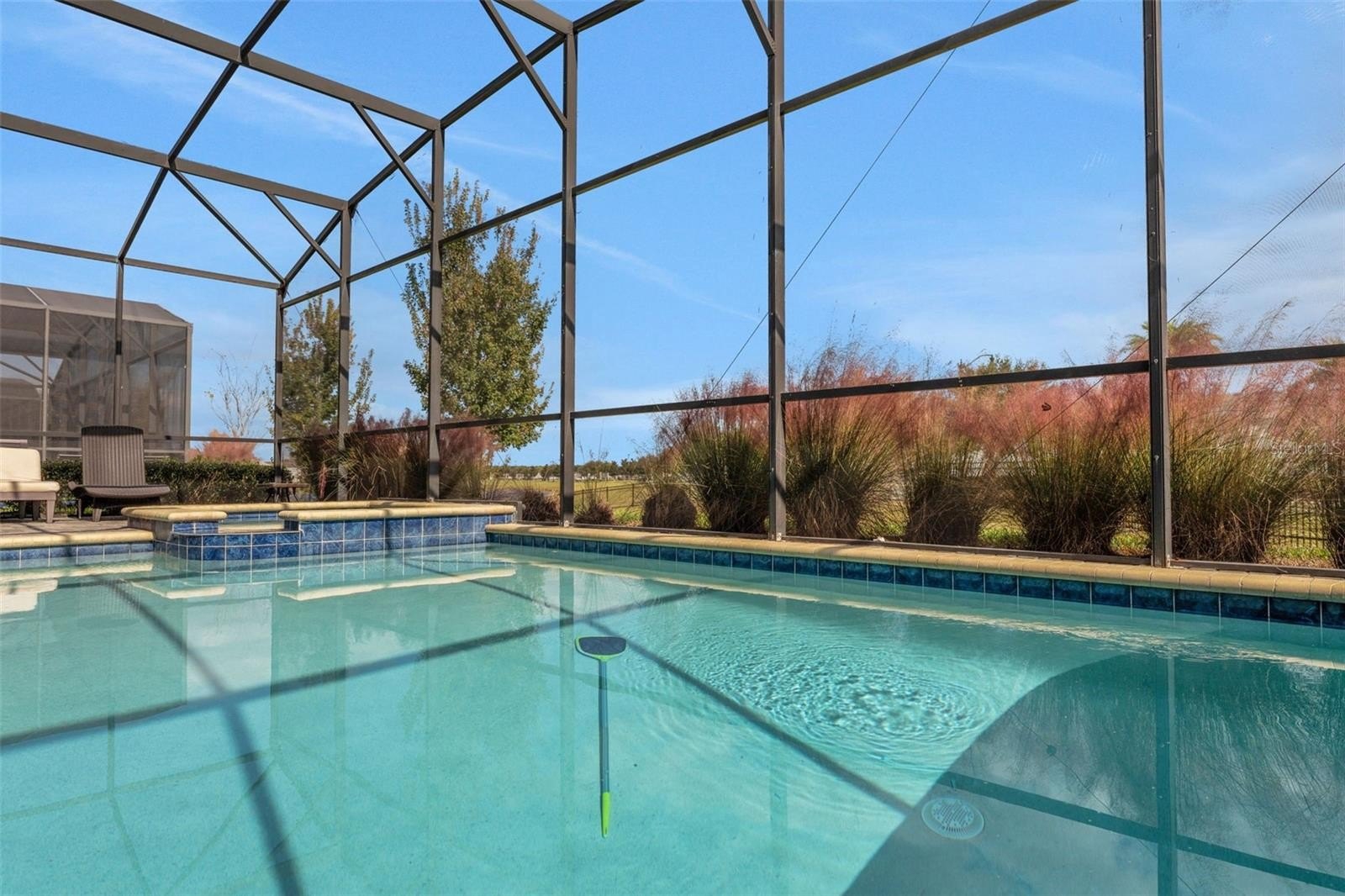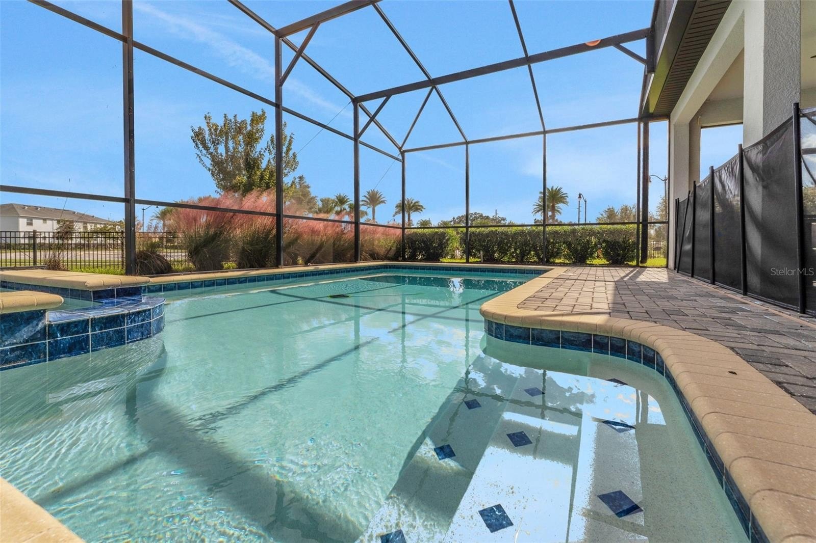 Slide open the doors to the private screened pool and spa, where water sparkles in the sun and the covered lanai invites slow afternoons and lingering evenings.