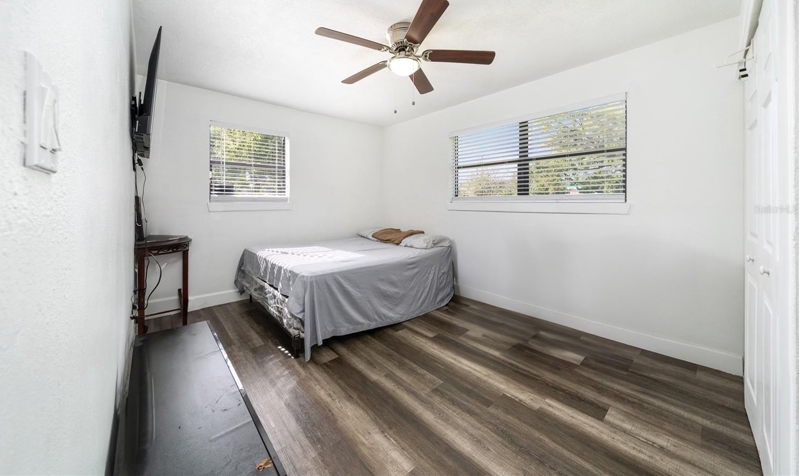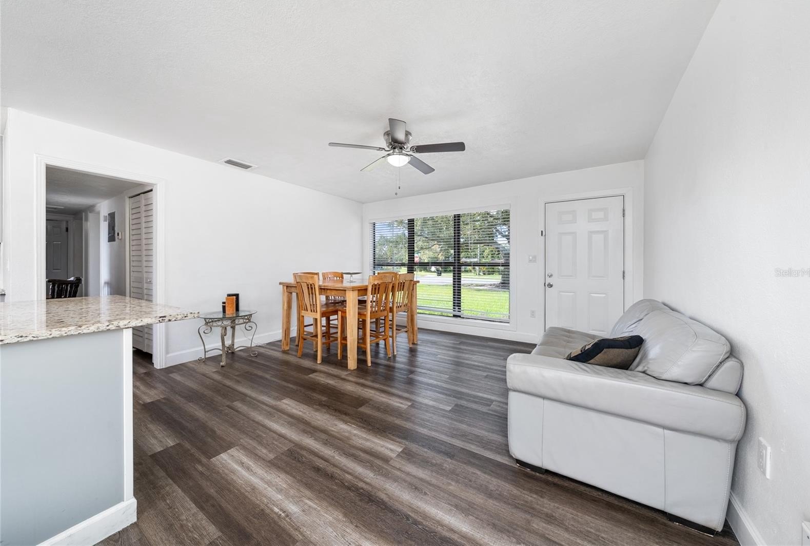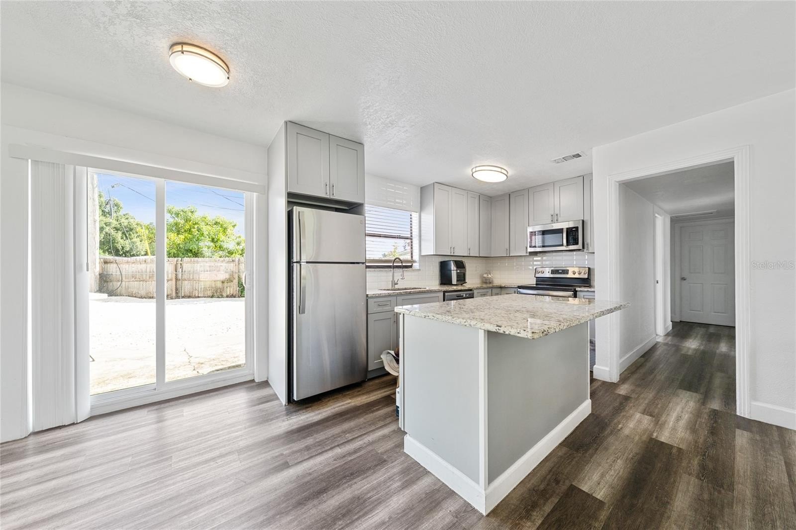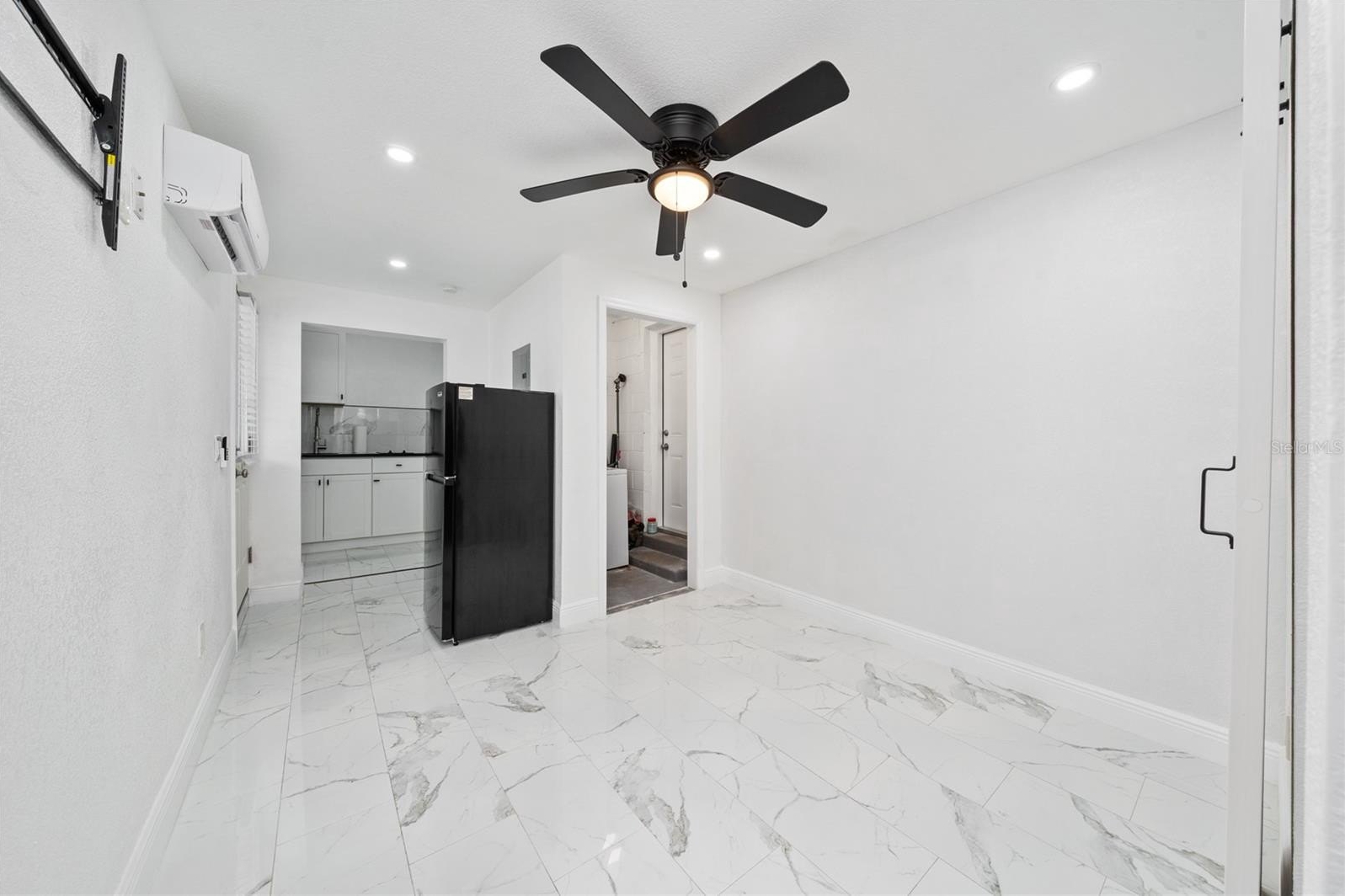 The kitchen and bathrooms are elegantly upgraded with sparkling Italian quartz countertops, while the home’s bright, airy ambiance is enhanced by fresh exterior paint, LED lighting, and modern ceiling fans.