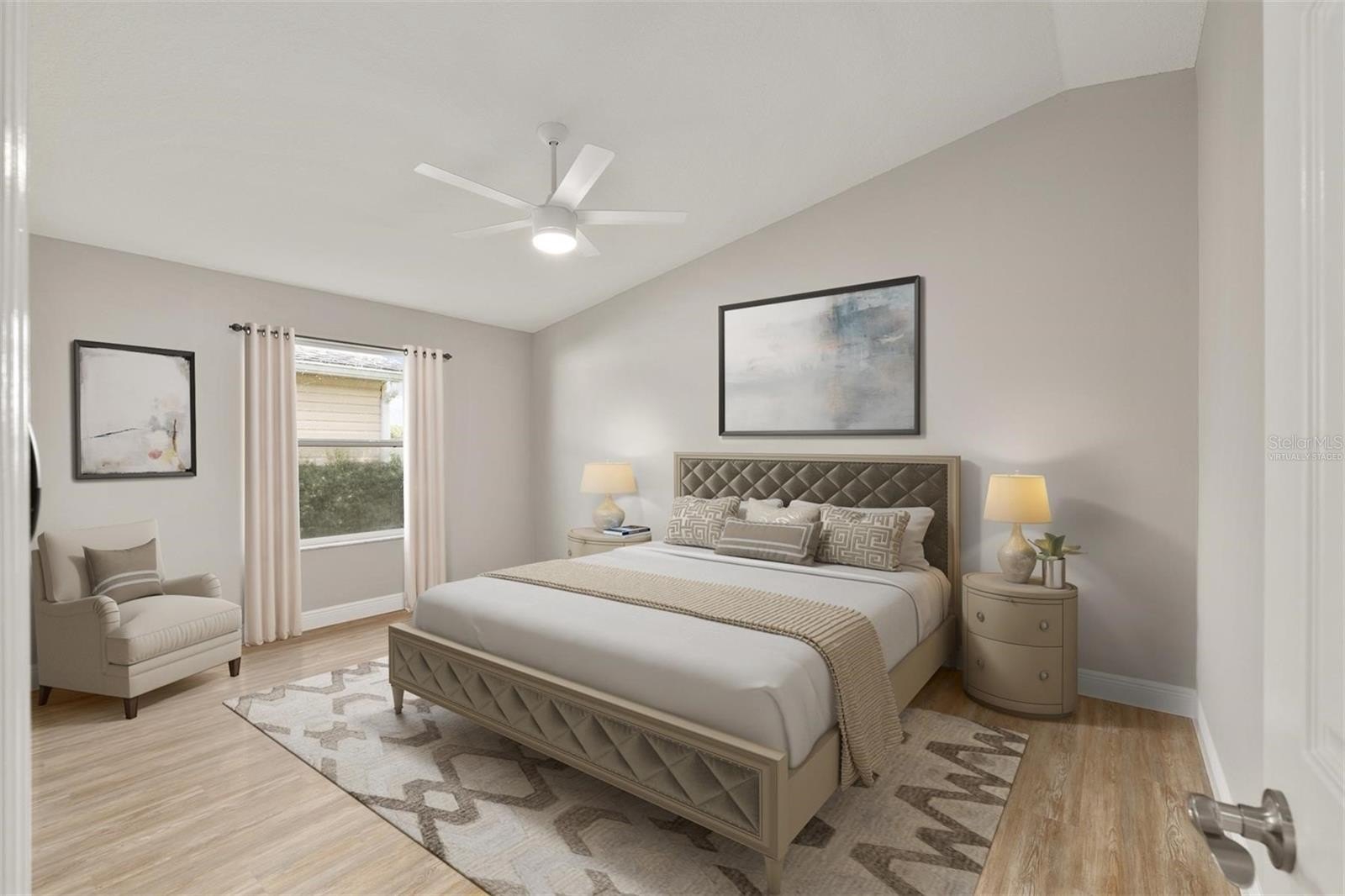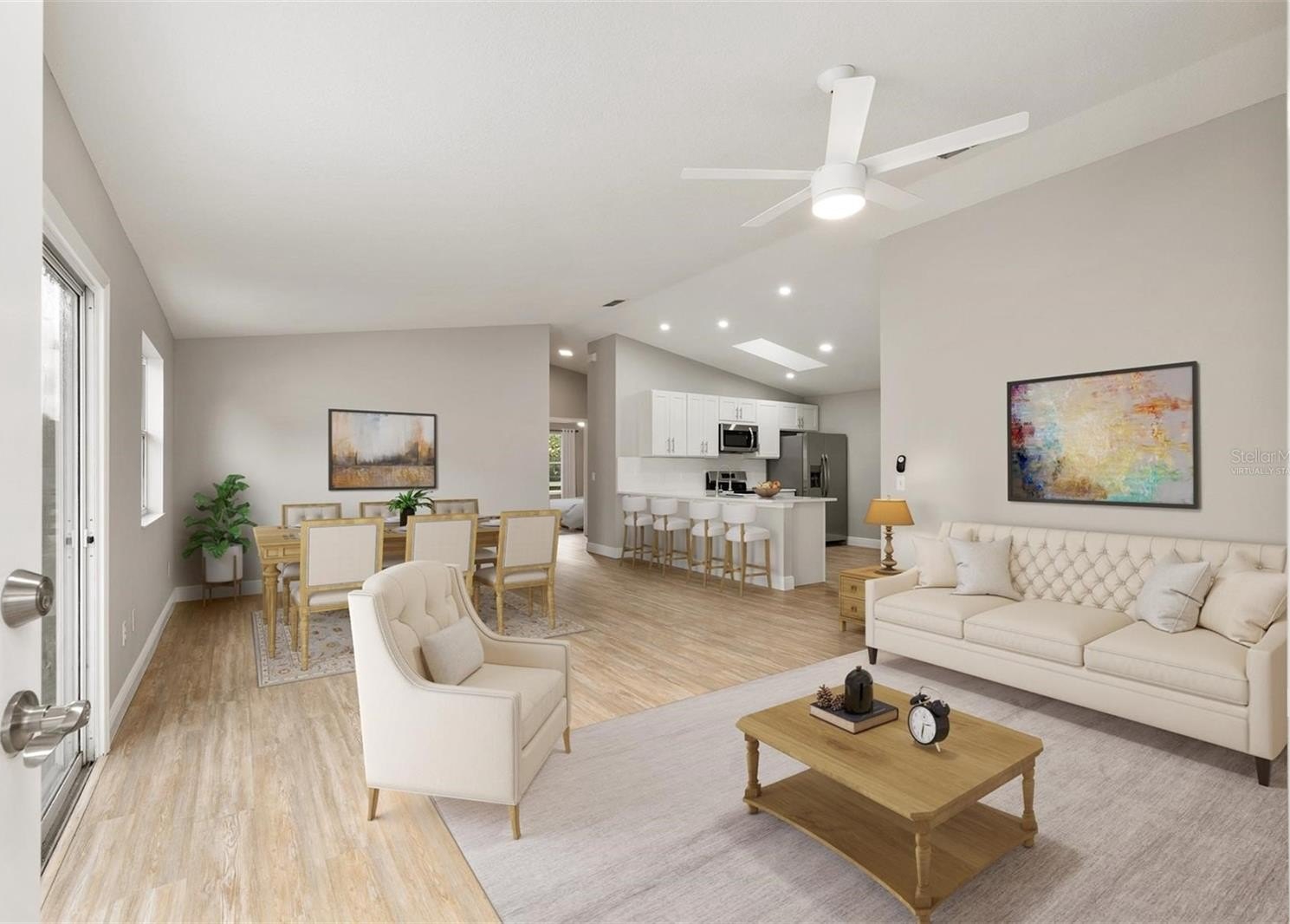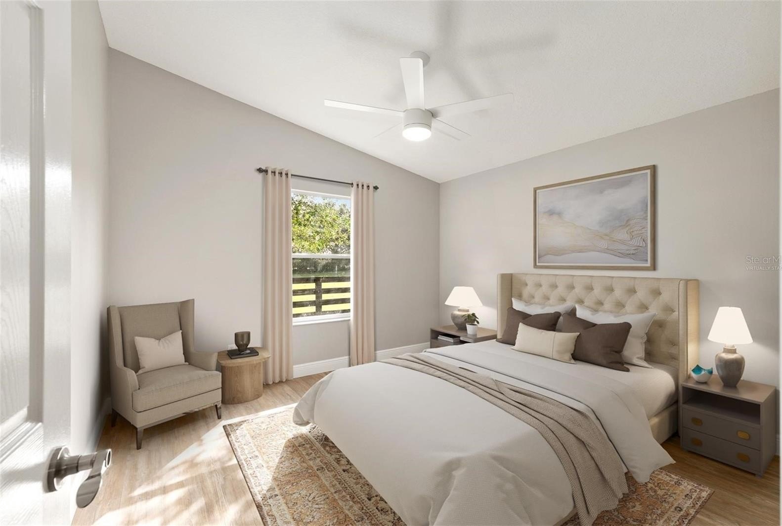 ***PRICE ADJUSTMENT*** NO BOND!!! Don't miss your chance to own this stunning, fully renovated home with every detail thoughtfully designed from floor to ceiling. Featuring two spacious bedrooms and two beautifully updated bathrooms, this home showcases BRAND-NEW APPLIANCES, ELEGANT QUARTZ countertops, new cabinetry, fresh paint, and stylish new flooring throughout. Enjoy an open concept living space filled with natural light and finished with modern touches that rival new construction. Every detail has been meticulously appointed. Nestled in an amazing location close to Spanish Springs, you'll have quick access to top dining, entertainment, medical facilities, shopping, amazing golf and a Country Club lifestyle. The home backs up to serene, peaceful grounds; your personal escape to paradise. This home truly has all the bells and whistles in a sought-after location. Don't wait on this gem, come make this beauty yours today. In The Village of Alhambra, you'll discover good food and good fun around every turn! The Glenview Champions Golf and Country Club offers fine dining with panoramic views of the golf course, and some of the best sunsets in The Villages community. Just across El Camino Real, the beautiful Savannah Center is the place for big-name entertainment: Broadway shows, symphony orchestras and much, much more. The El Santiago Recreation Center is close too and is a great place for bocce, shuffleboard, pickleball, tennis and executive golf. The family pool is the perfect spot for guests to meet new friends and enjoy the warm Florida sunshine. This home is perfect for a primary residence, second home, or an investment property. Call Gina Befumo on more details on how to generate added income as an investment property. Roof-2019 – A/C - 2021 - Water Heater - 2025 - No Carpet – Totally Remodeled – No Homes Behind – Quartz Countertops – Luxury Vinyl Plank Flooring Throughout – Brand New Stainless Steel Appliances – Washer and Dryer Included!