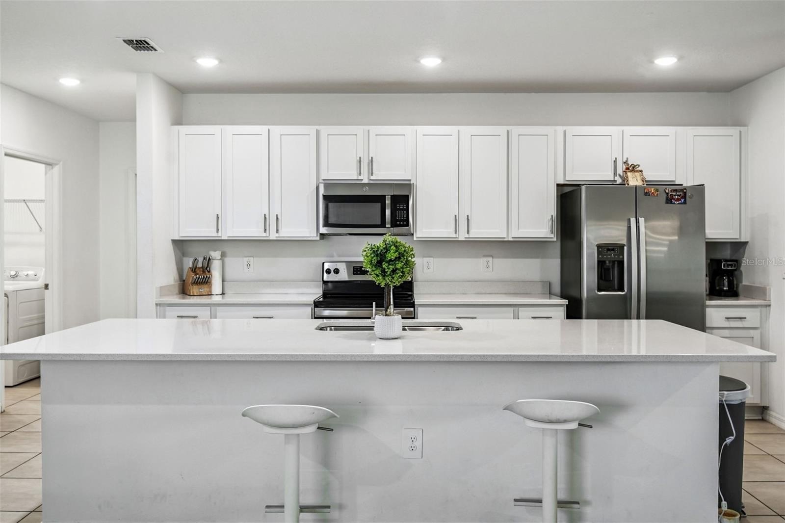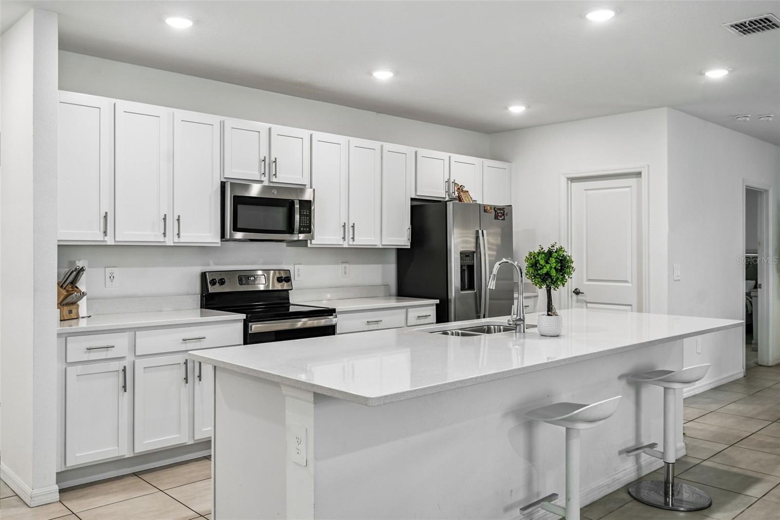 The kitchen is a true showpiece—complete with a large prep and serving island, abundant counter space, elegant cabinetry, and a generous walk-in pantry that will delight any home chef. Its central location means you’ll never miss a moment while hosting friends or spending time with family.
