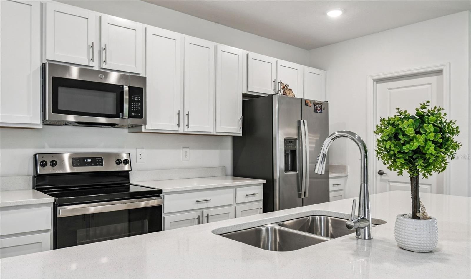 Short Sale. Step inside and immediately feel the openness of this beautifully designed home, where a clear sight line leads you straight through the heart of the living space. The Magnolia floor plan from AV Homes offers a bright, airy layout perfect for modern living, featuring an extended entertaining corridor that seamlessly connects the dining room, gourmet kitchen, and spacious gathering room. Large sliding glass doors open to the backyard overlooking the pond, creating the perfect flow for indoor-outdoor living.