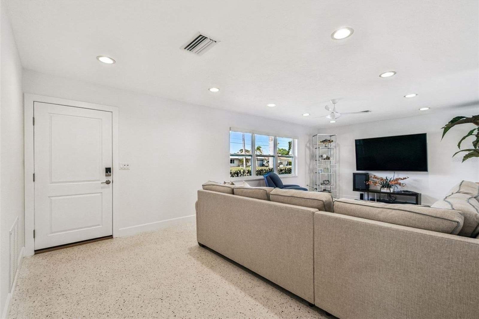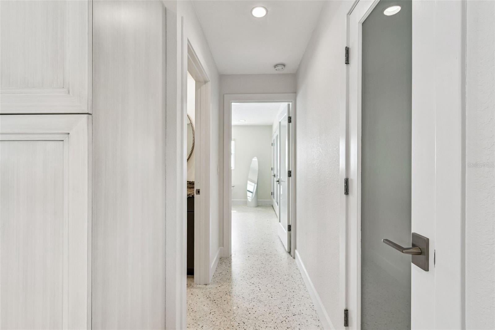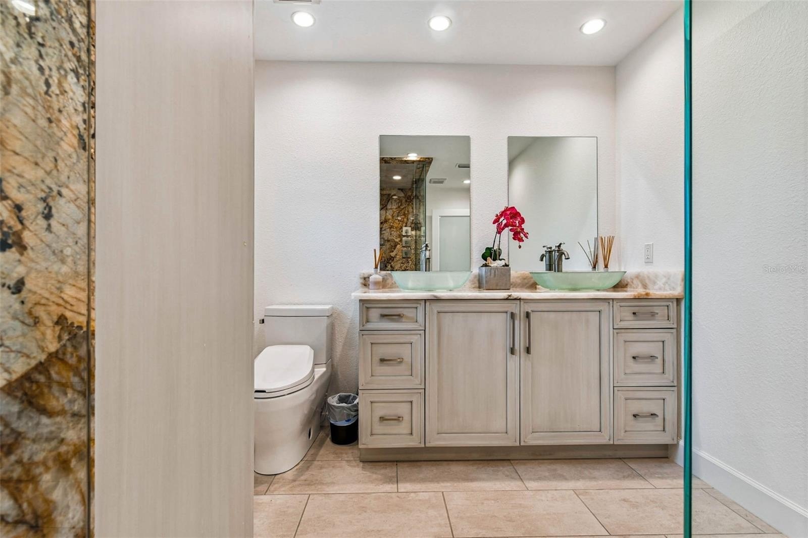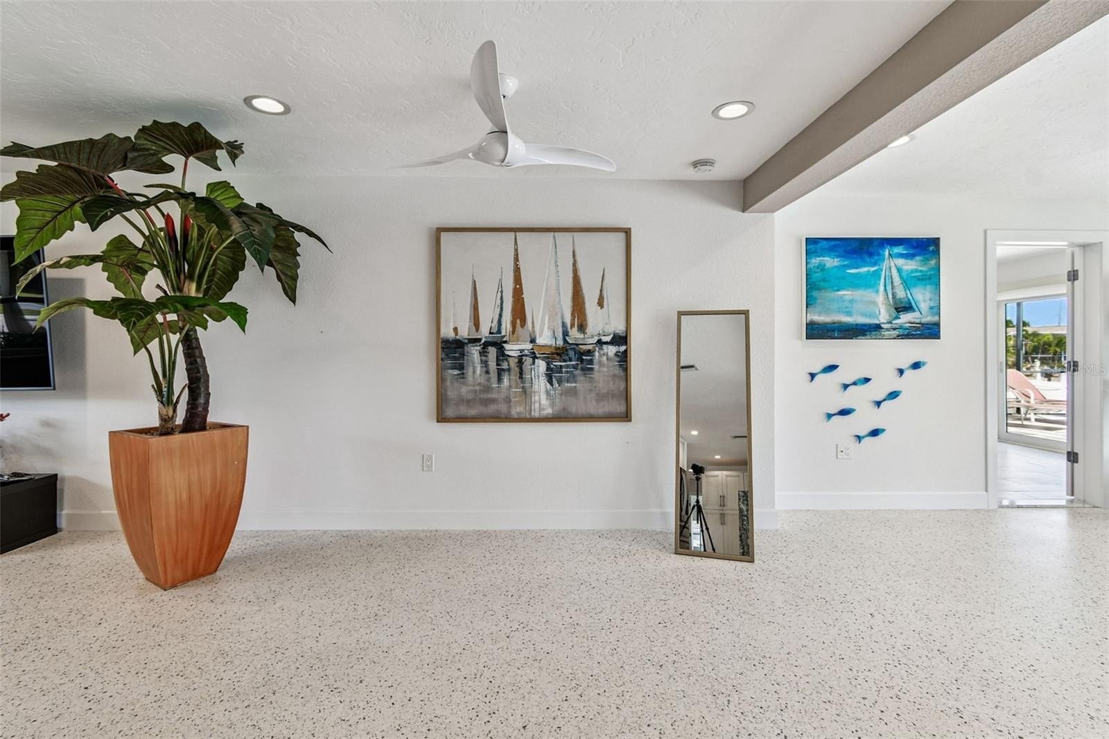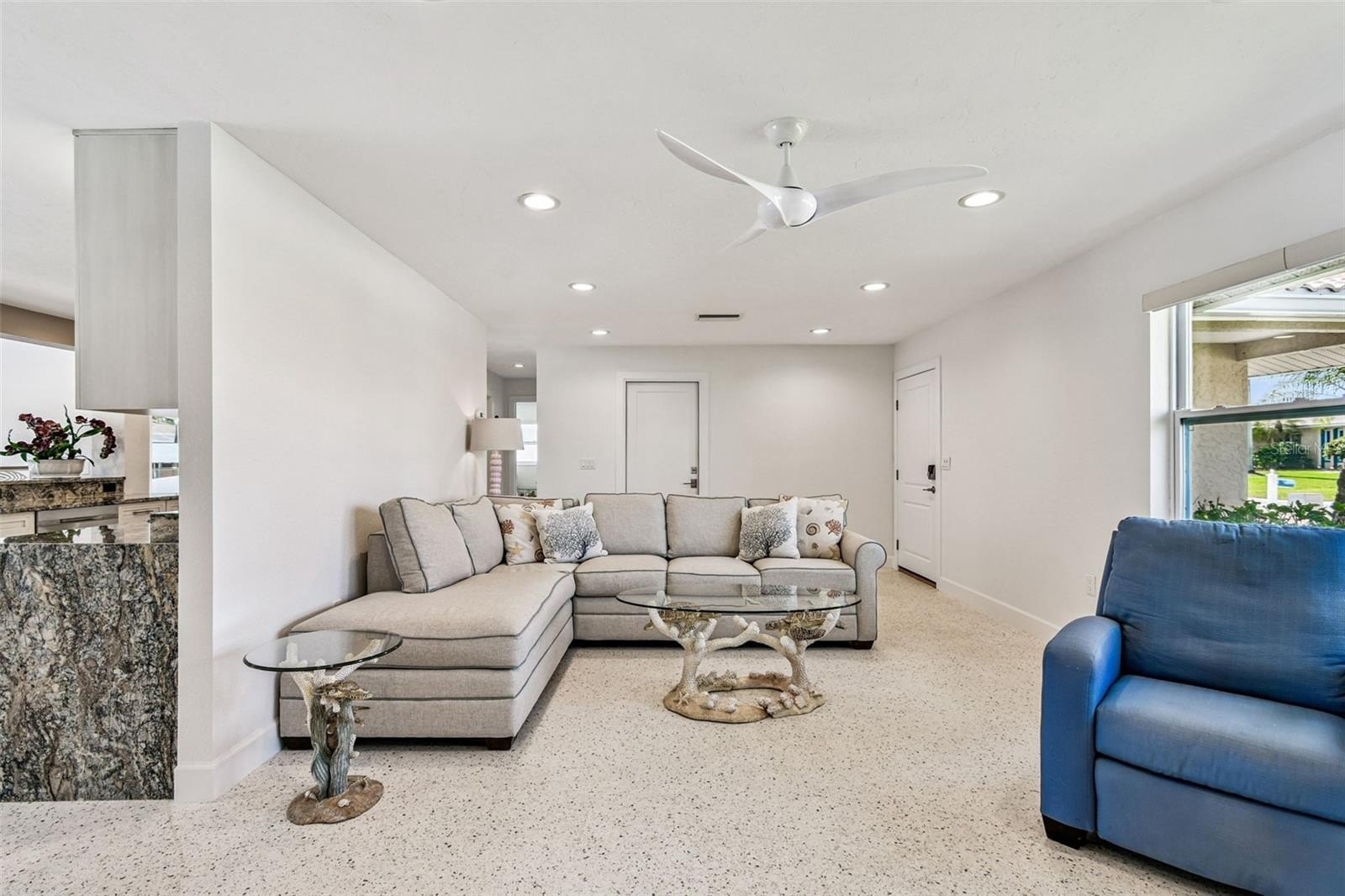 Waterfront dream home with private dock & boat lifts! Fully remodeled and furnished, this coastal ranch invites you to experience the ultimate Florida lifestyle on a saltwater canal with quick Gulf access—just minutes from Anna Maria Island and Longboat Key. This stunning retreat offers effortless boating, fishing, and sunset cruising from your private backyard oasis. An inviting entrance featuring unique international exotic stones, mature palms, and a full irrigation system welcomes you home. Set on 93 feet of seawall, the property showcases an elevated terrace finished in RARE ONYX and reinforced block walls with rebar construction for lasting strength. Enjoy a private dock with a 15,000-lb boat lift, new double Jet Ski lift, and spacious fish-cleaning station—perfect for the boating enthusiast. Originally a three-bedroom home, it was reimagined into a spacious two-bedroom layout with an enlarged primary suite and open flow; a third bedroom could be added. Since 2018, the residence has been redesigned top to bottom, featuring a glazed ceramic tile roof, steel beam reinforcement, and all-new systems throughout. Interiors are a showcase of luxury and artistry, highlighted by crystal-accented granite, Azurite slabs and seamless terrazzo floors creating a sleek, contemporary aesthetic. Every detail reflects sophistication, from Minka remote-control fans and LED lighting to propane gas conversion for high-end cooking performance. The gourmet kitchen is a true centerpiece—adorned with Azurite stone counters in deep ocean hues, waterfall island, full-height backsplash, wine bar, and Wolf hood vented through the roof. Prepare your fresh catch without lingering odors and entertain with ease. Four hurricane-rated sliders open to the screened and heated saltwater pool and spa for seamless indoor-outdoor living. The self-cleaning pool and propane heater warm the spa in minutes, while underwater lighting sets the mood for relaxing evenings. The primary suite captures the morning light, featuring porcelain wood-look floors, a custom walk-in closet, and a spa-inspired bath clad in striking Patagonia Quartzite with rain shower, three body jets, and handheld sprayer. Graber designer shades add privacy and elegance. Built for durability and low-maintenance living, this home includes a wind mitigation report qualifying for low insurance rates, impact glass, new electrical and plumbing, Rinnai tankless water heater, generator, and updated systems throughout. A Hardie plank shed, vinyl fencing with double gates, and ample outdoor storage enhance function and value. The home appraised above list price and was unaffected by the 2024 hurricanes. Enjoy direct boating access to the Intracoastal and Sarasota Bay with nearby waterfront restaurants, sandbars, golf, beaches, and world-class fishing. Play pickleball at GT Bray Park, shop local markets, or bike through Robinson Preserve and the historic Cortez village. Ideally located in Bradenton, just 12 miles to downtown Sarasota and 5 miles to SRQ Airport, this home combines elegant coastal design with everyday convenience. Live where dolphins and manatees greet you at your dock, and sunsets paint the sky over the Gulf. 4911 Bimini Drive isn’t just a home—it’s your slice of paradise. Come see for yourself in private or join me at an upcoming open house!