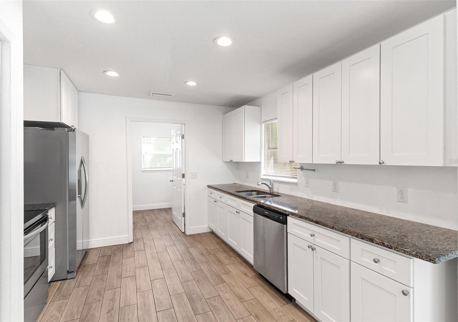 One or more photo(s) has been virtually staged. This beautiful 3 bedroom, 2 bathroom home offers the perfect blend of space, comfort, and charm. From the moment you walk up the brick pathway and see the bright red front door, you’ll feel right at home. Step inside to a large open-concept layout that makes it easy to gather with family or entertain guests. The living and dining areas flow seamlessly into a clean, functional kitchen that features granite countertops, stainless-steel appliances, and plenty of cabinet storage. Enjoy the warmth of wood-look tile flooring throughout, recessed lighting, and fresh neutral walls that give you a blank canvas for your own style. The spacious laundry room includes both washer and dryer, and the bathrooms feature simple, timeless finishes designed for everyday comfort. The covered front porch stretches across the front of the home complete with ceiling fans making it the perfect spot to enjoy your morning coffee or unwind after a long day. Out back, you’ll find the attached two-car garage provides ample space for vehicles, extra storage, or your next home project area. Tucked away in a peaceful neighborhood close to shopping, schools, and downtown, this home offers everyday convenience while still giving you privacy and space. It’s move-in ready and easy to maintain—ideal for first-time buyers, families, or anyone looking for a low-maintenance lifestyle. Homes like this don’t stay on the market long. Schedule your showing today.