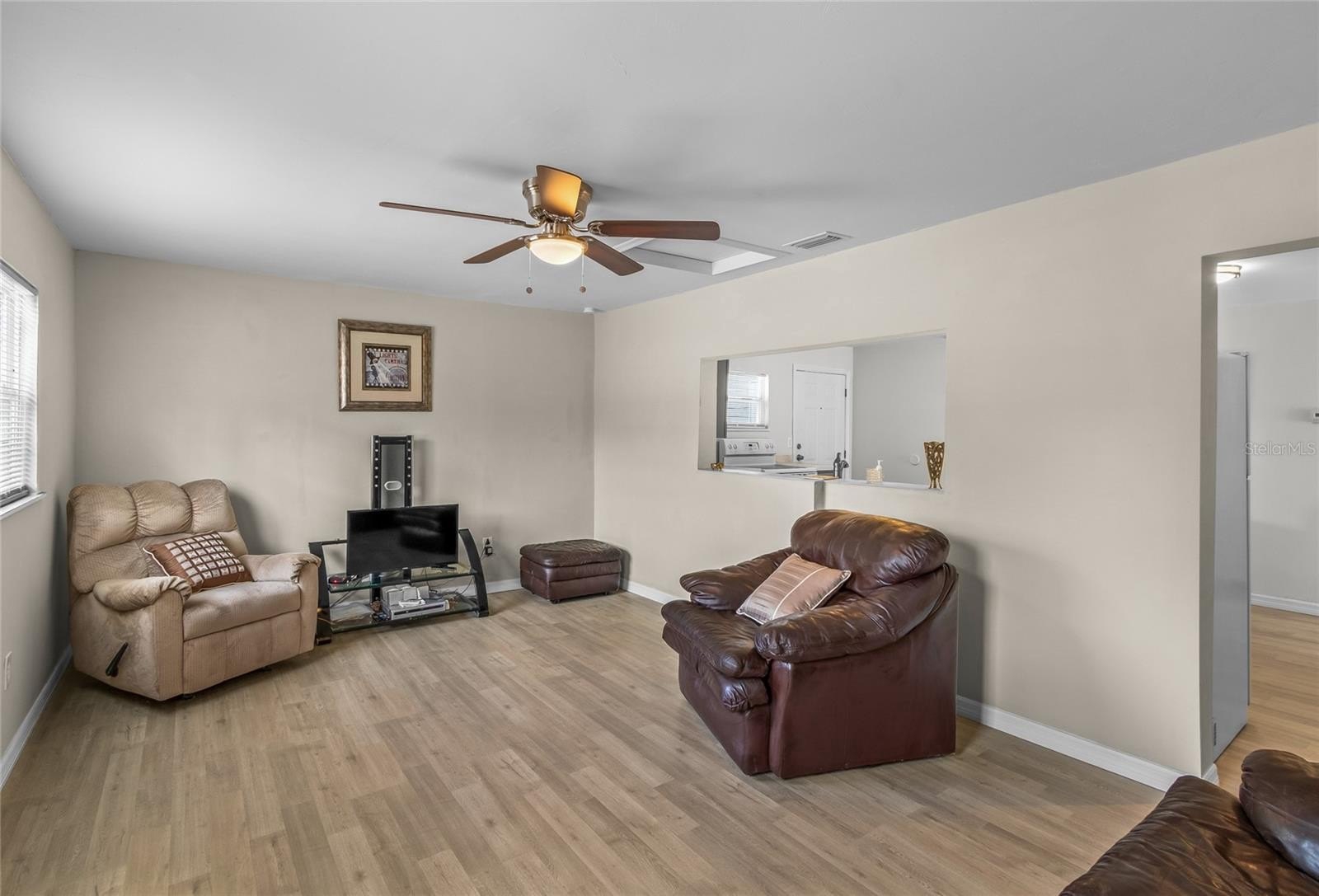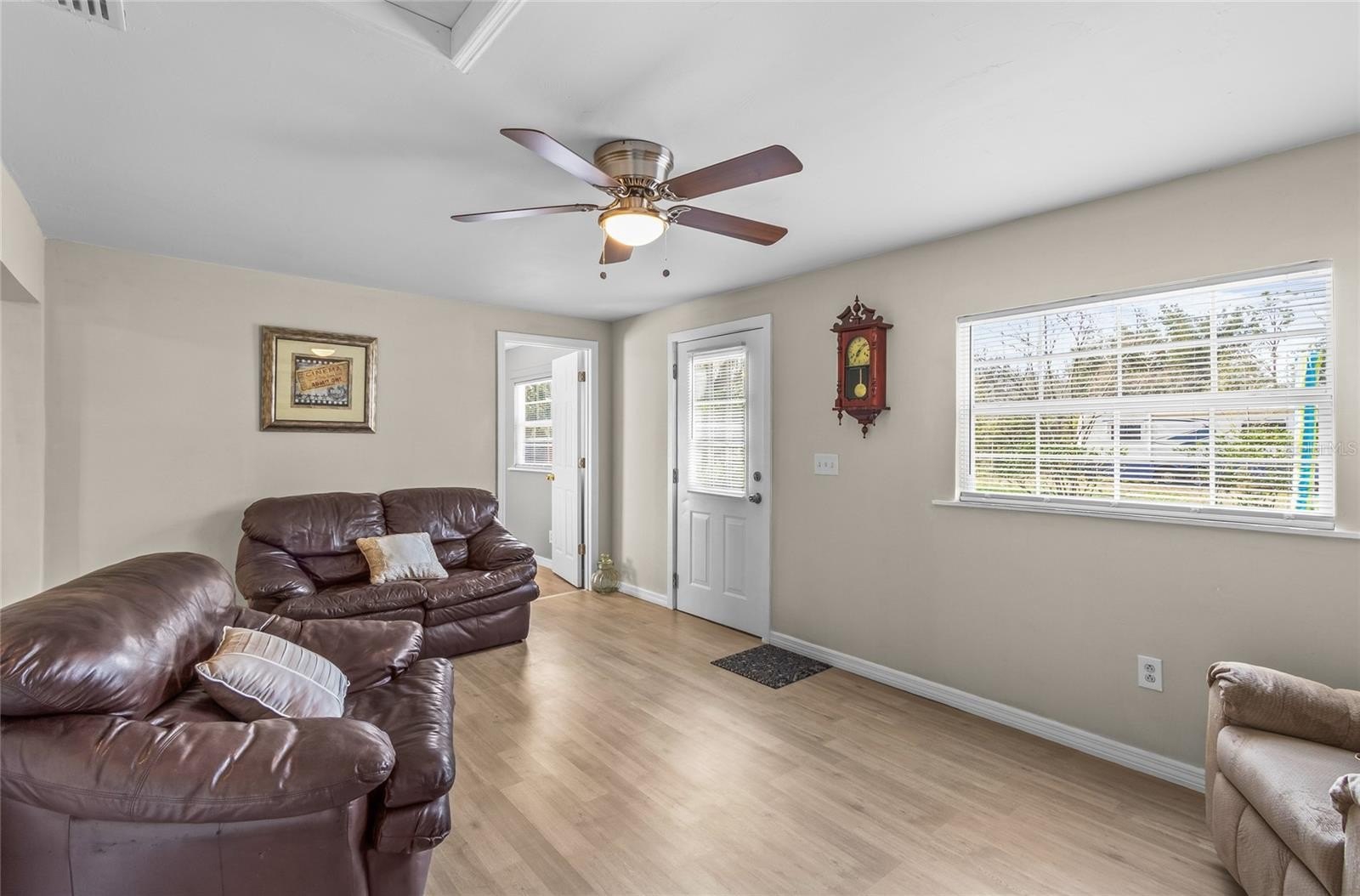 Upon arrival, you'll be greeted by mature landscaping and ample yard space—perfect for gardening, outdoor play, or simply enjoying the Florida sunshine. Step inside to find a bright living area, a thoughtfully laid-out kitchen with plenty of cabinet space, and three comfortable bedrooms that can easily adapt to your needs—whether as guest quarters, a home office, or a personal retreat.