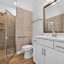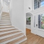 The large eat-in kitchen is a chef’s dream, featuring quartz countertops and island, under-cabinet lighting, a custom backsplash, high-end appliances, and a reverse osmosis drinking system. For formal occasions, the spacious dining room offers elegance and versatility—ideal as is, or ready to transform into an additional entertainment space. The custom-built office/flex space/library, with beautiful French doors, provides a quiet retreat. A first-floor bedroom is perfect for guests.