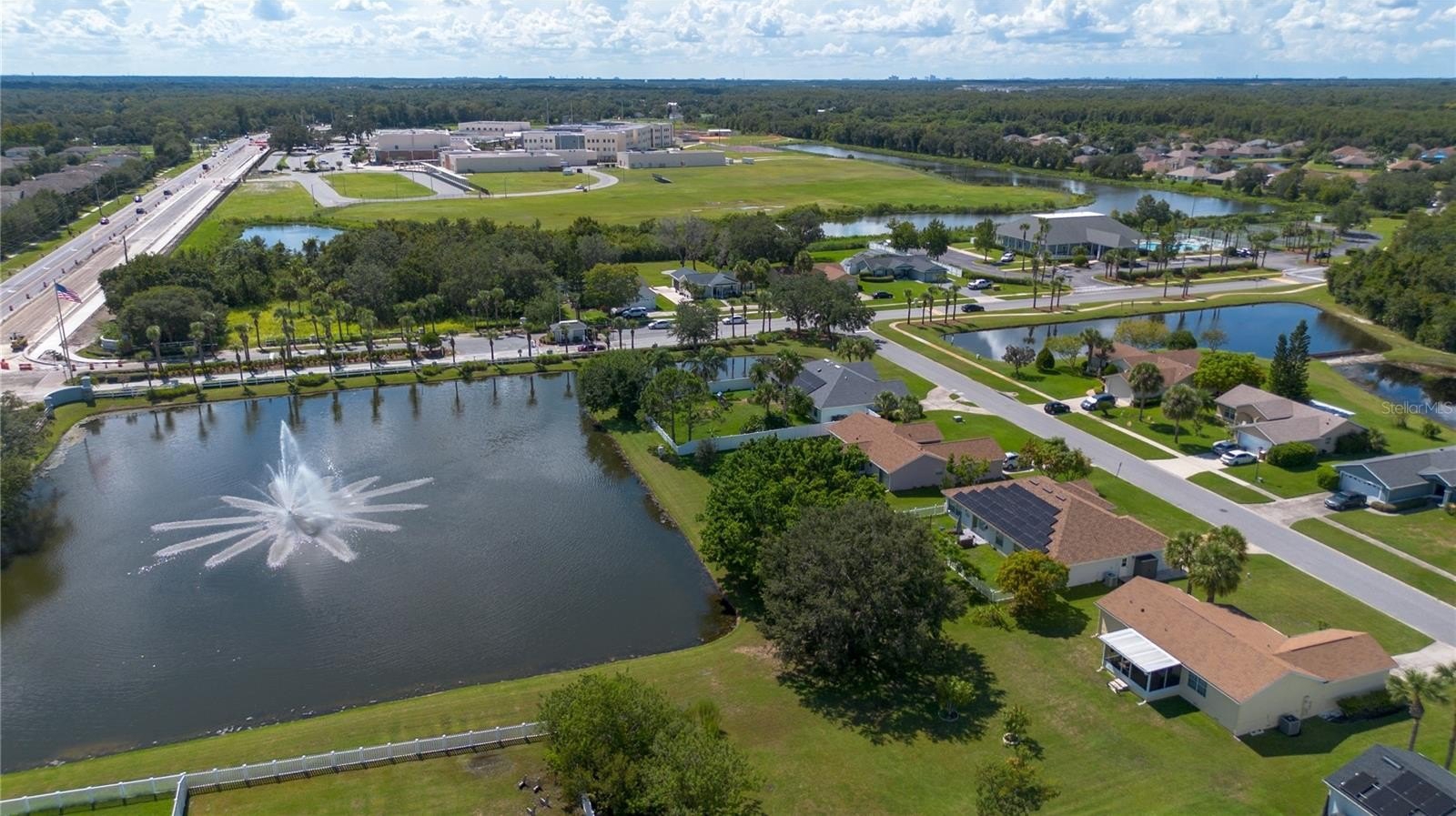 Step outside to the oversized backyard and enjoy spectacular water views with fountain from the spacious lanai. This is ideal for gatherings and outdoor living. The home also includes a 2-car garage and seamless gutters. Community Highlights; Springlake Village offers resort-style amenities including: Electronic guard gate, Swimming pool & fitness center, Tennis courts & shuffleboard, Playground & recreation center.