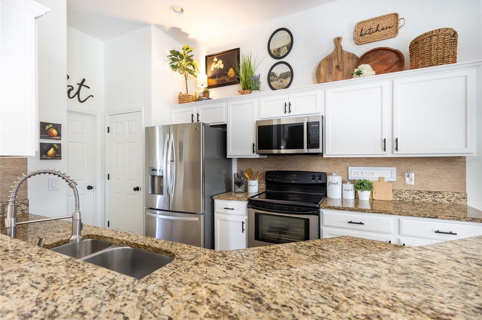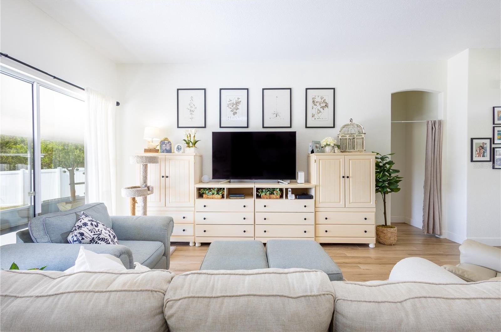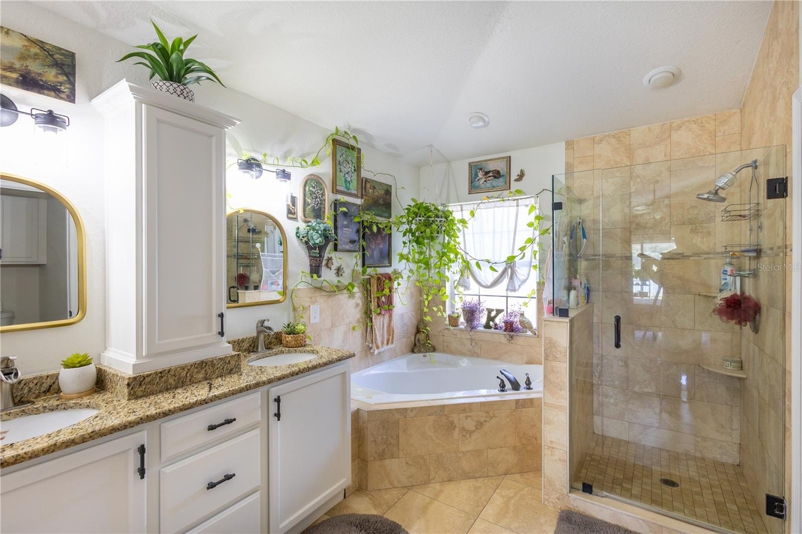 The Primary Bath includes dual sinks, a relaxing jetted garden tub, 2 walk-in closets, and a seamless glass shower enclosure. Additional upgrades include entire home freshly painted inside and out with Valspar Paint, 5" baseboards, and tall 3-panel sliding glass doors that flood the home with natural light.