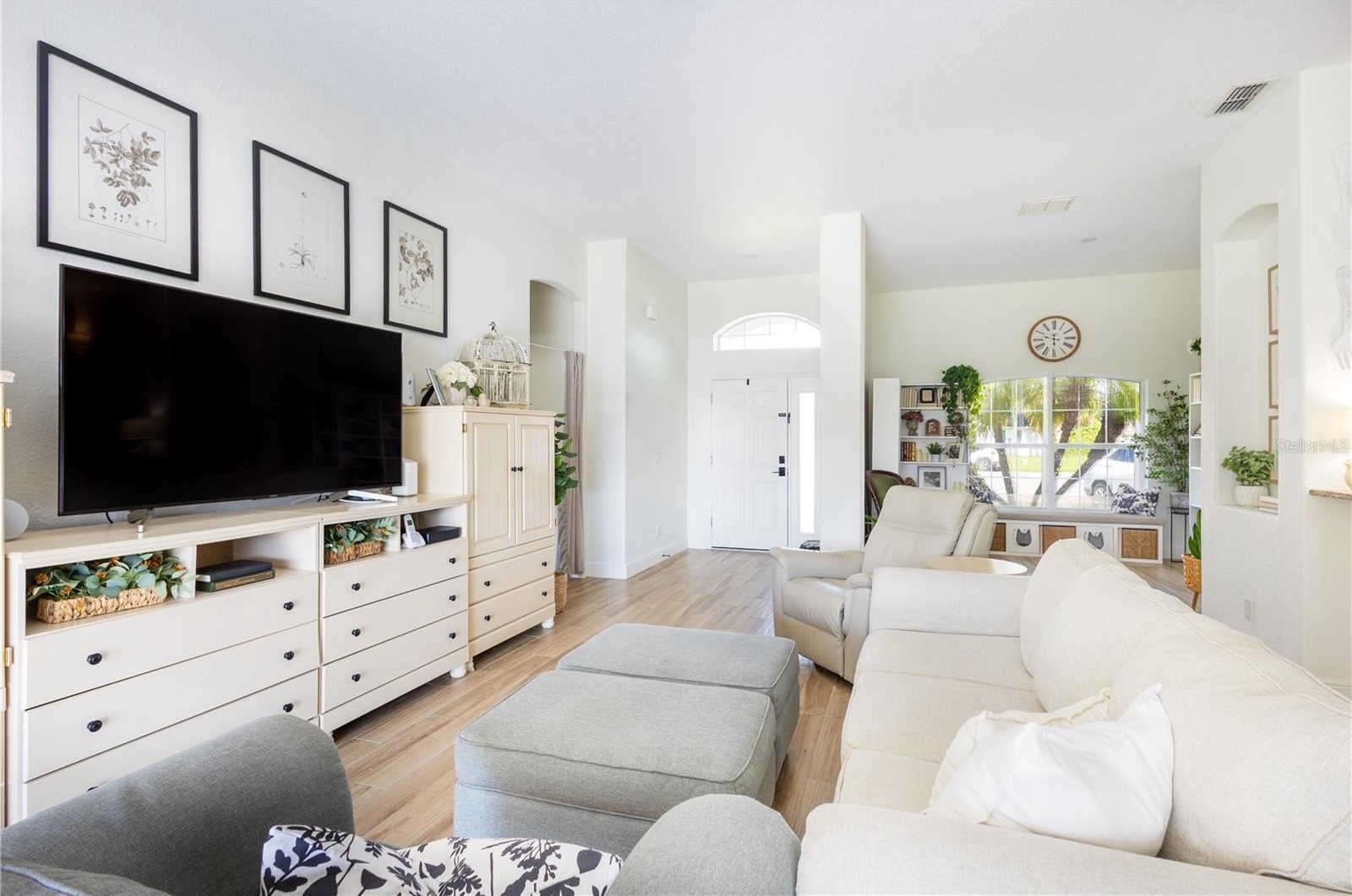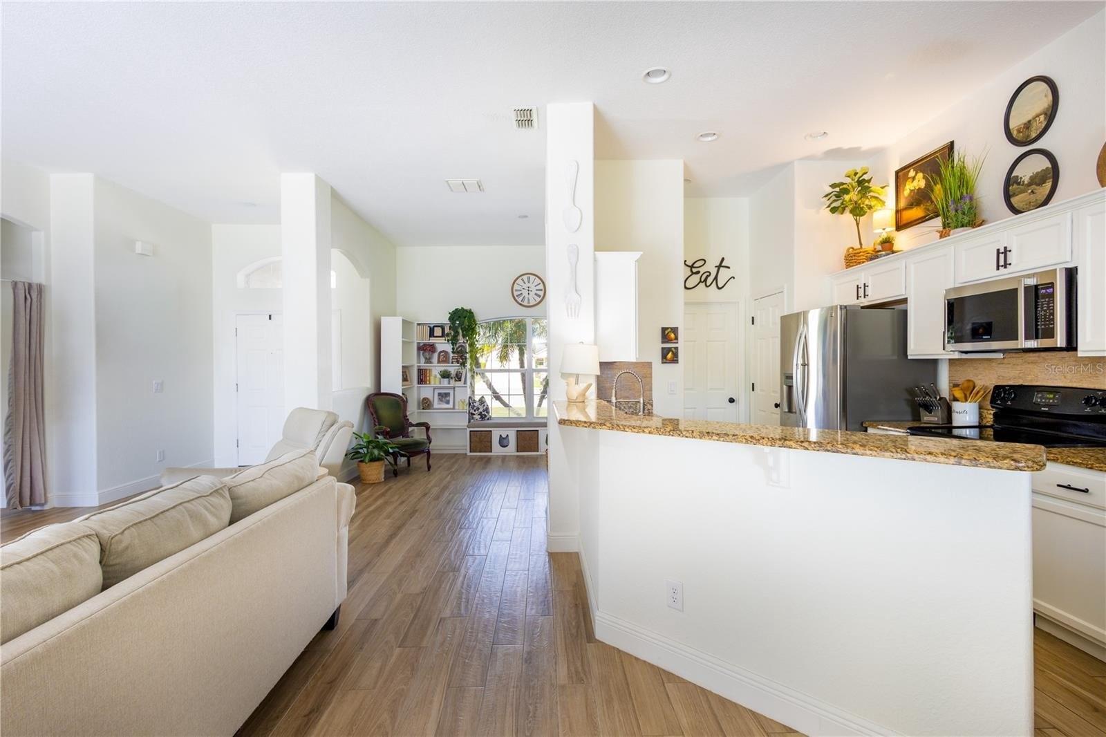Beautiful Lakefront Home located on a Cul-de-Sac in the Gated community of Springlake Village. Inside, you’ll find a spacious open floor plan with vaulted ceilings, a great room, dining room, separate eat-in kitchen, and extended screened lanai perfect for entertaining. The kitchen overlooks the great room and features wood-grain tile flooring throughout, with the exception of the Primary Retreat, which has beautiful 3/4" engineered hardwood floors.
