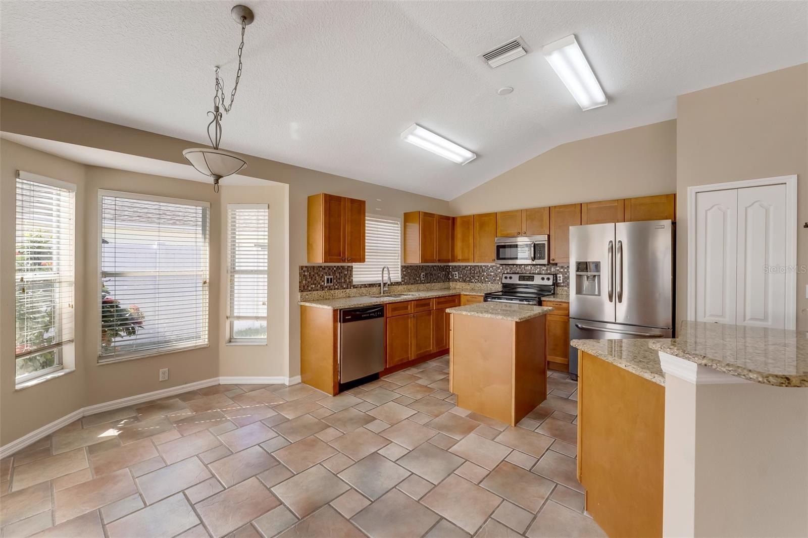 Enjoy quality time in the spacious living room or gather for meals in the kitchen and dining area that overlook your private screened-in pool — perfect for barbecues, pool parties, or a relaxing swim after school.