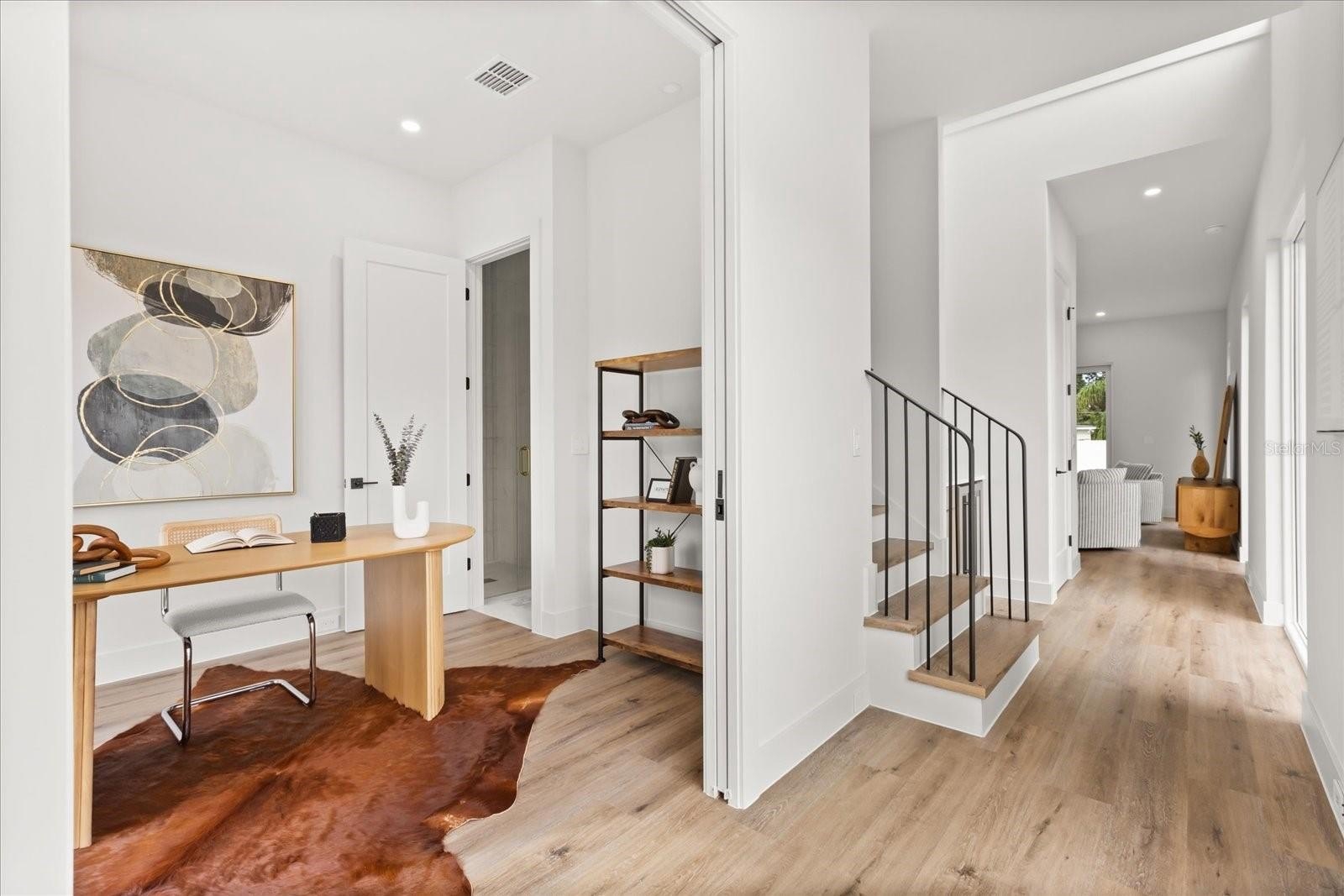 Tucked just off the entry, a stylish office and full bath add flexibility for guests or working from home. Upstairs, a spacious loft and family room provide room to unwind, while the luxurious primary suite feels like a private retreat with a spa-style bath featuring dual vanities, soaking tub, and an oversized wet room shower. Two additional bedrooms share a beautifully designed Jack and Jill bath.