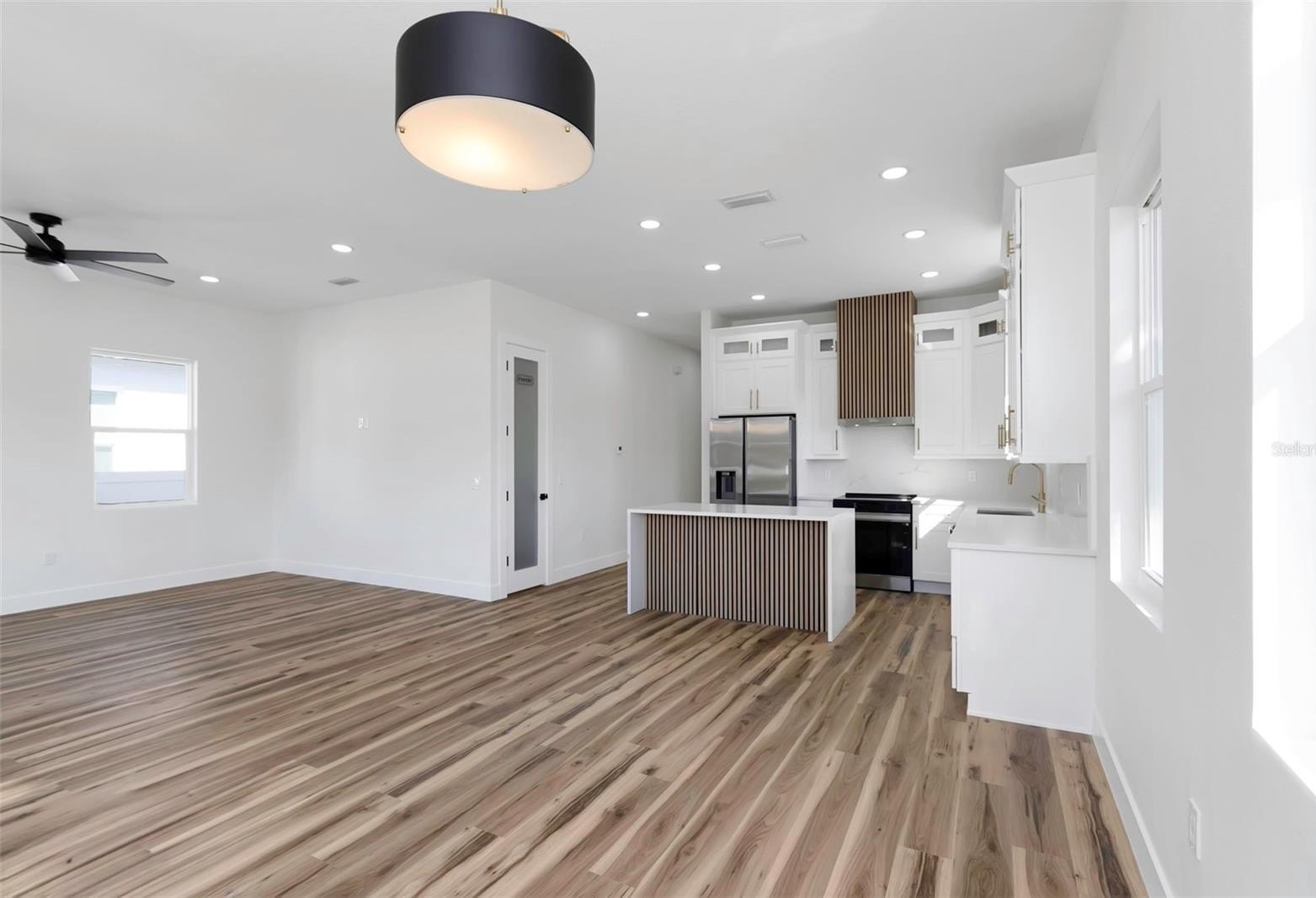 Excellent price for new construction!! PACKED WITH POTENTIAL! Take a look at a few virtually staged photos. This Cozy modern home is Built 2025!! AND YES…No FLOOD insurance required & NO HOA. This home has a spacious front yard framed by a stylish metal fence & walkway leading you to a contemporary style home featuring modern touches of lighting, custom roof lines above the foyer entry, tiled front porch, vinyl fence & landscaping provide plenty of curb appeal. As you enter through a stylish glass door you will discover an open bright floor plan featuring beautiful luxury vinyl wood style floors, a modern kitchen with oversized island and waterfall stone countertop, stainless steel matching appliances, a closet pantry for additional storage, recess lighting, & custom vent hood. Imagine the gatherings & meals that can be prepared here. The open living room has high 10-foot ceilings with oversized fan. Plenty of natural light enters the home through all the impact windows. Enjoy a private back porch and fenced in yard the perfect place to relax and unwind. The rooms including the separate office have power & cable outlets on the walls ready for the T.V s to be hung. Additionally, the master suite has an oversized walk-in closet as well as additional built-in closet, peaceful view to the side yard and an on-suite bathroom with tiled double shower, glass doors and double sink vanity. This home also has an upgraded smart electrical panel accessible through your app. Located a stone throw from Downtown St Pete offering many patio restaurants, shopping, Marina, Dali Museum, Rowdies soccer, St Pete Pier, USF college, Mahaffey Theater and more!!So much to do, so much to see…Don’t miss out on the St. Pete / Florida lifestyle. See all the pics to pick what to do first.